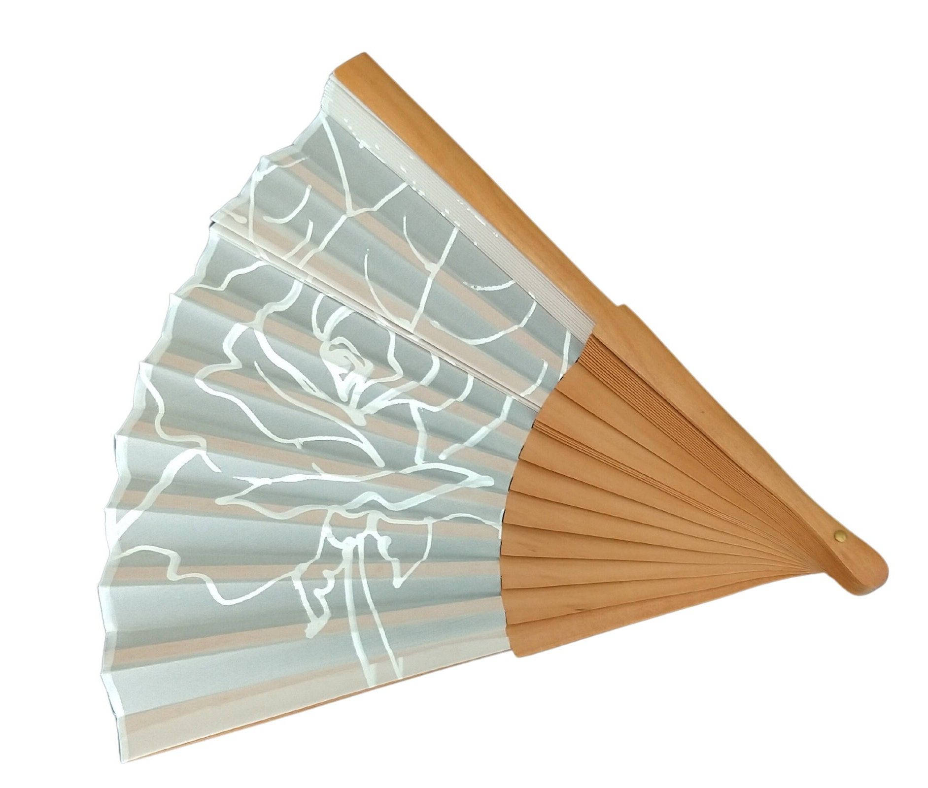 Este abanico de novia de seda blanca con rosas es uno de nuestra nueva colección de abanicos de seda % natural para bodas de verano o regalo de dama de honor, totalmente pintado a mano por mí en mi taller de Barcelona con alta calidad y diseños modernos y utilizando madera de peral, una de las más bonitas para abanico.