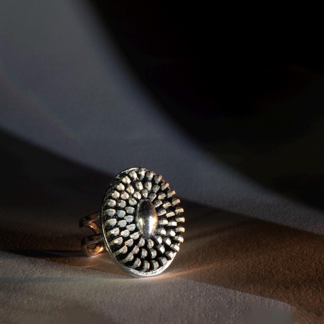 Anillo oval hecho con cremalleras y acero .