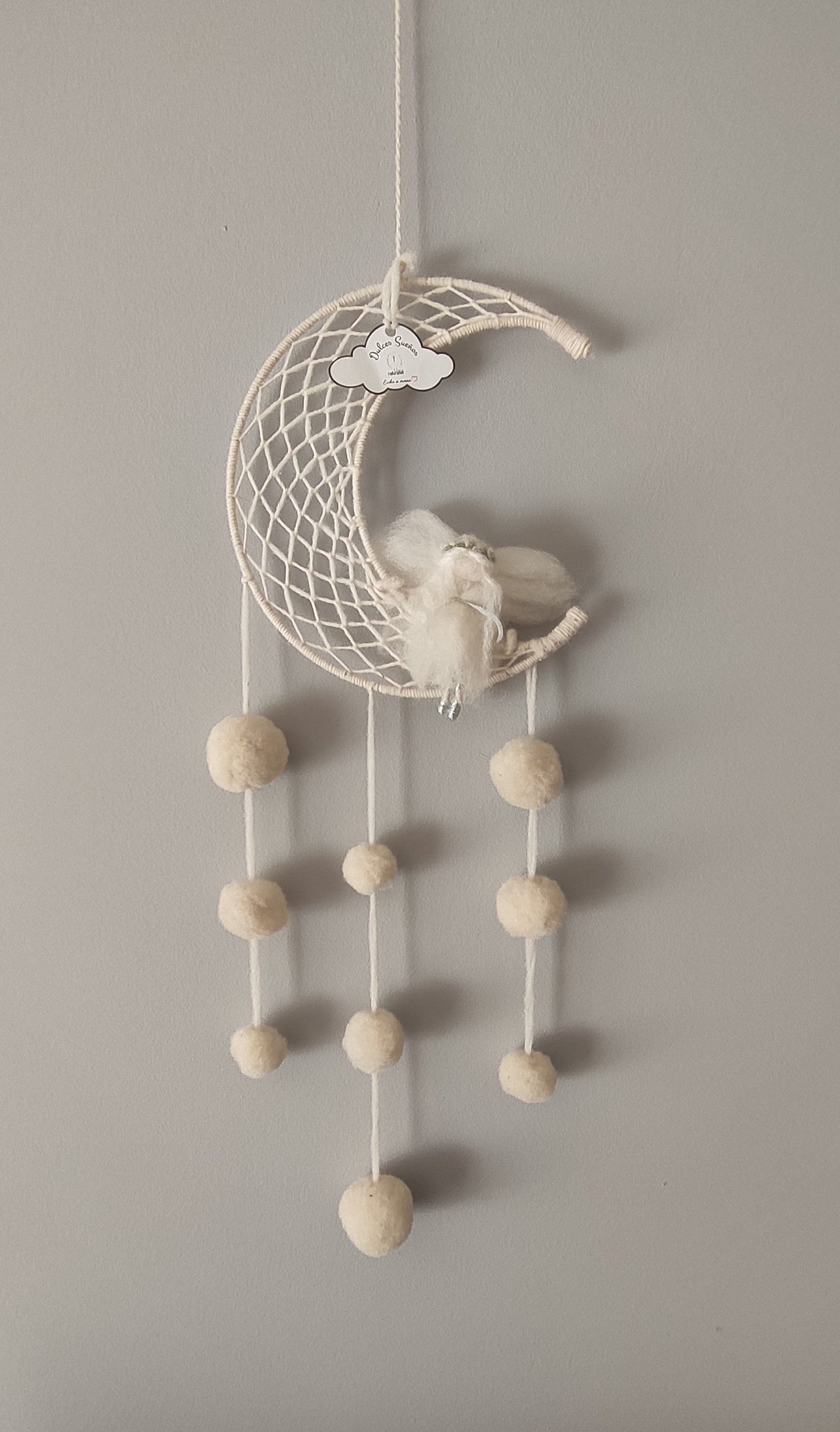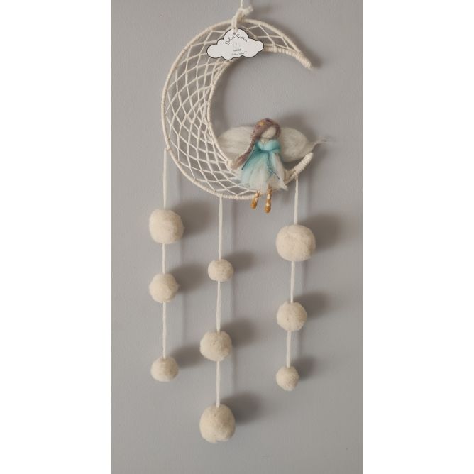El Hada de los sueño . esta hecha en lana virgen blanca , con detalles en la vestimenta y el cabello con lana teñida con tintes vegetales