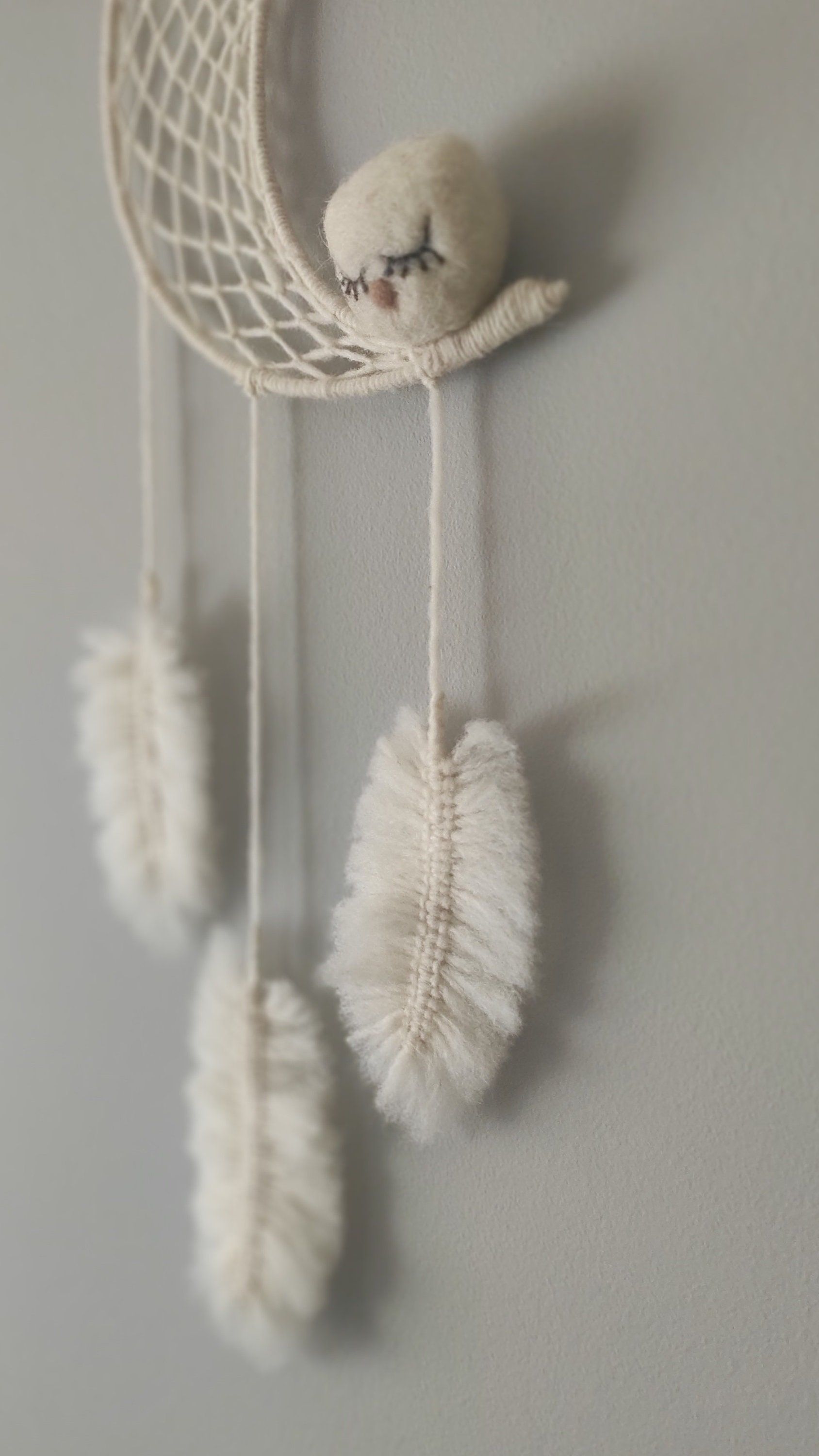 Puedes colgarlo en el dormitorio para proteger el descanso, los buenos sueños pasan a través del atrapasueños y los malos se enredan en la red y perecen con la primera luz del amanecer.