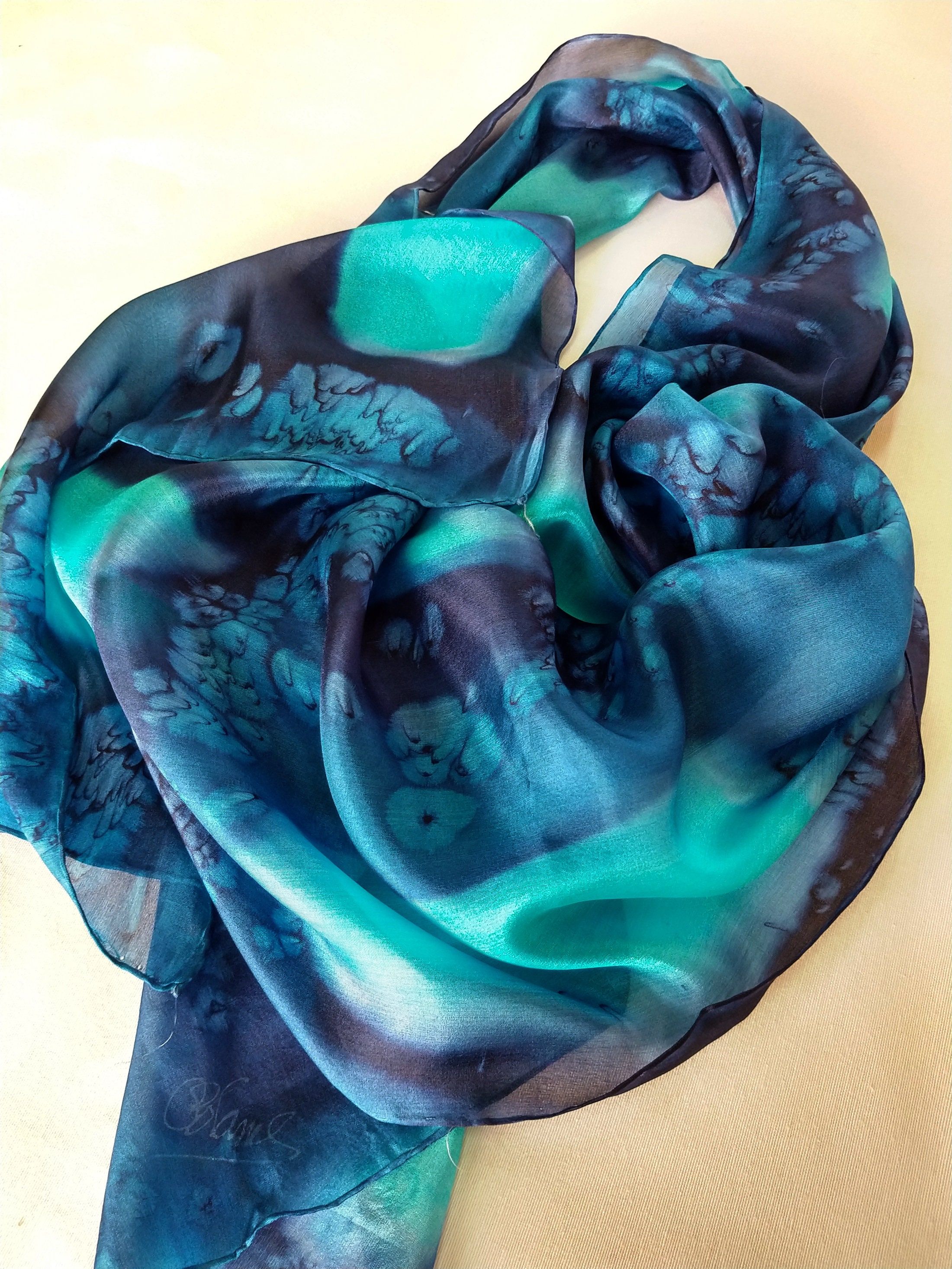 Bufanda de seda azul pintada a mano para hombre: accesorio de moda lujoso y único