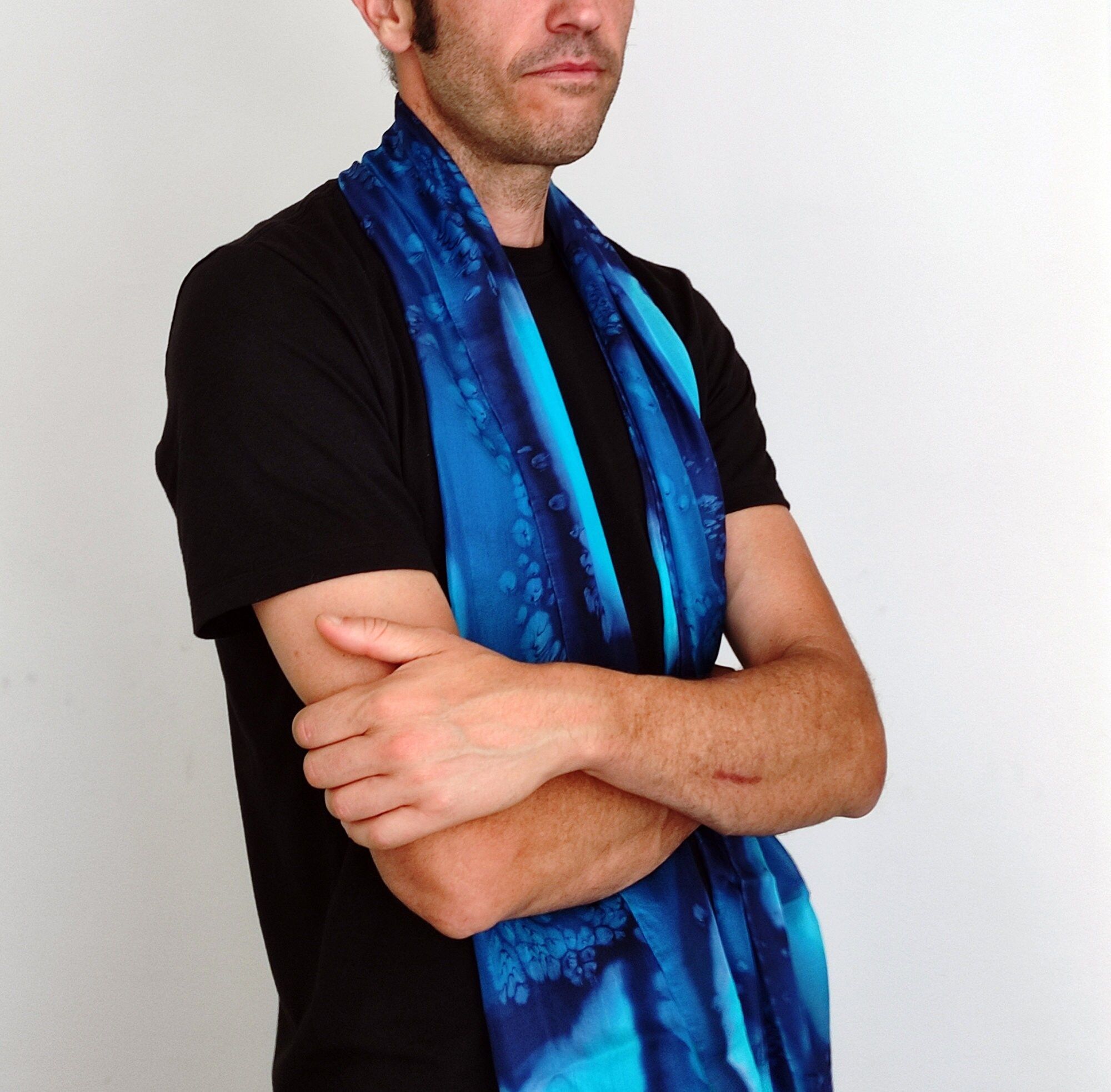 Bufanda de Seda Azul Pintada a Mano para Hombre - Calidad Premium y Elegancia Natural