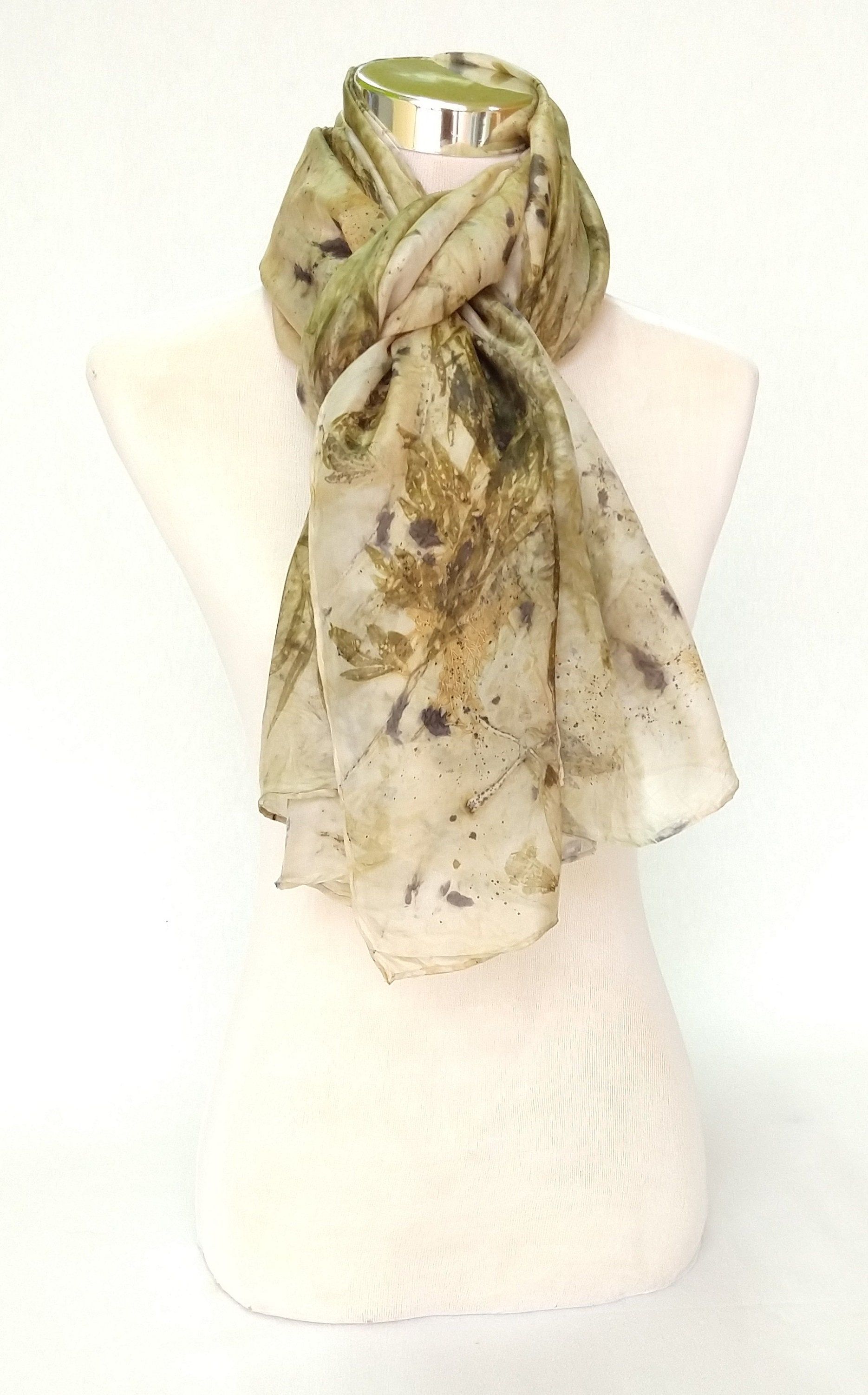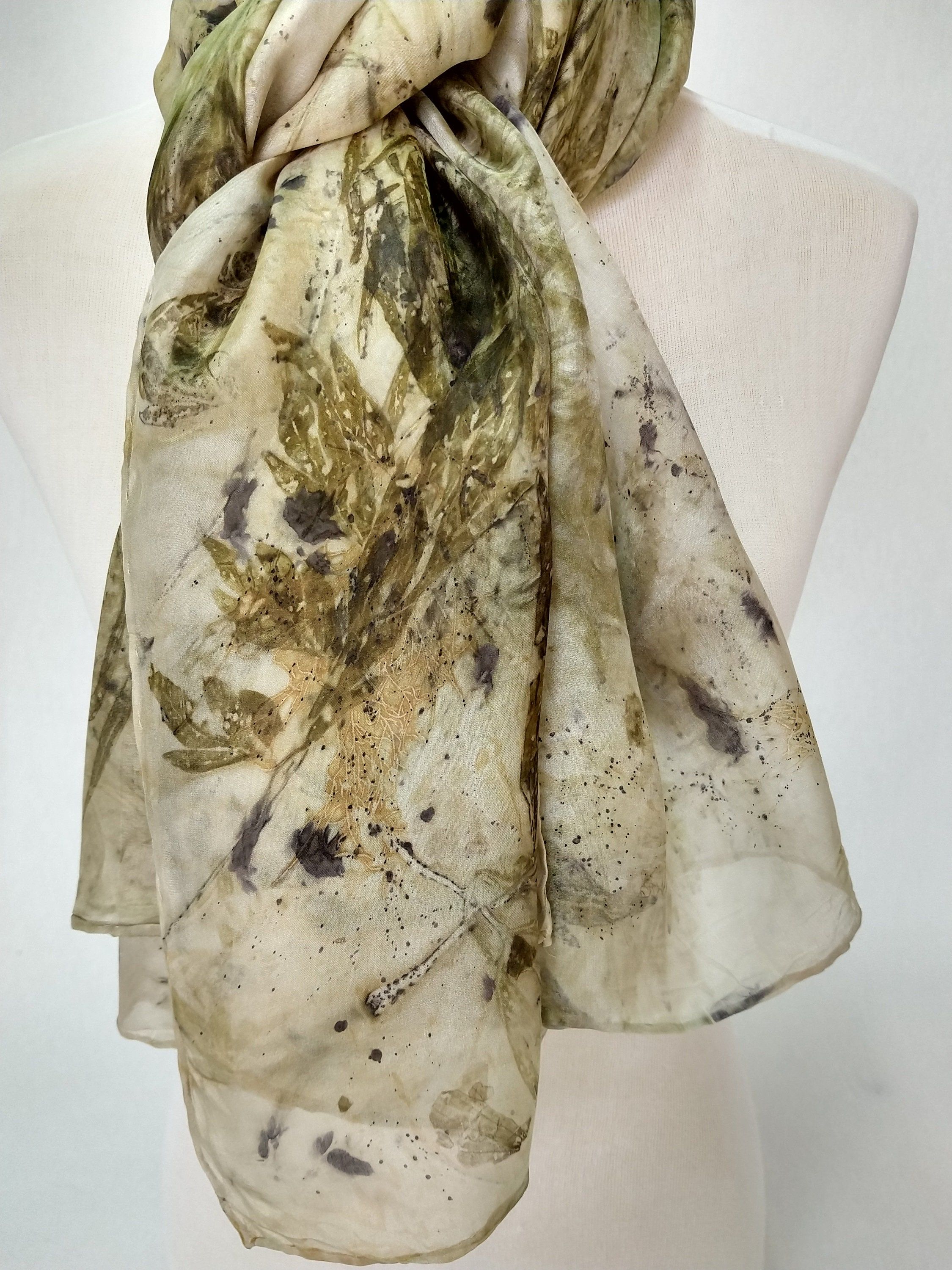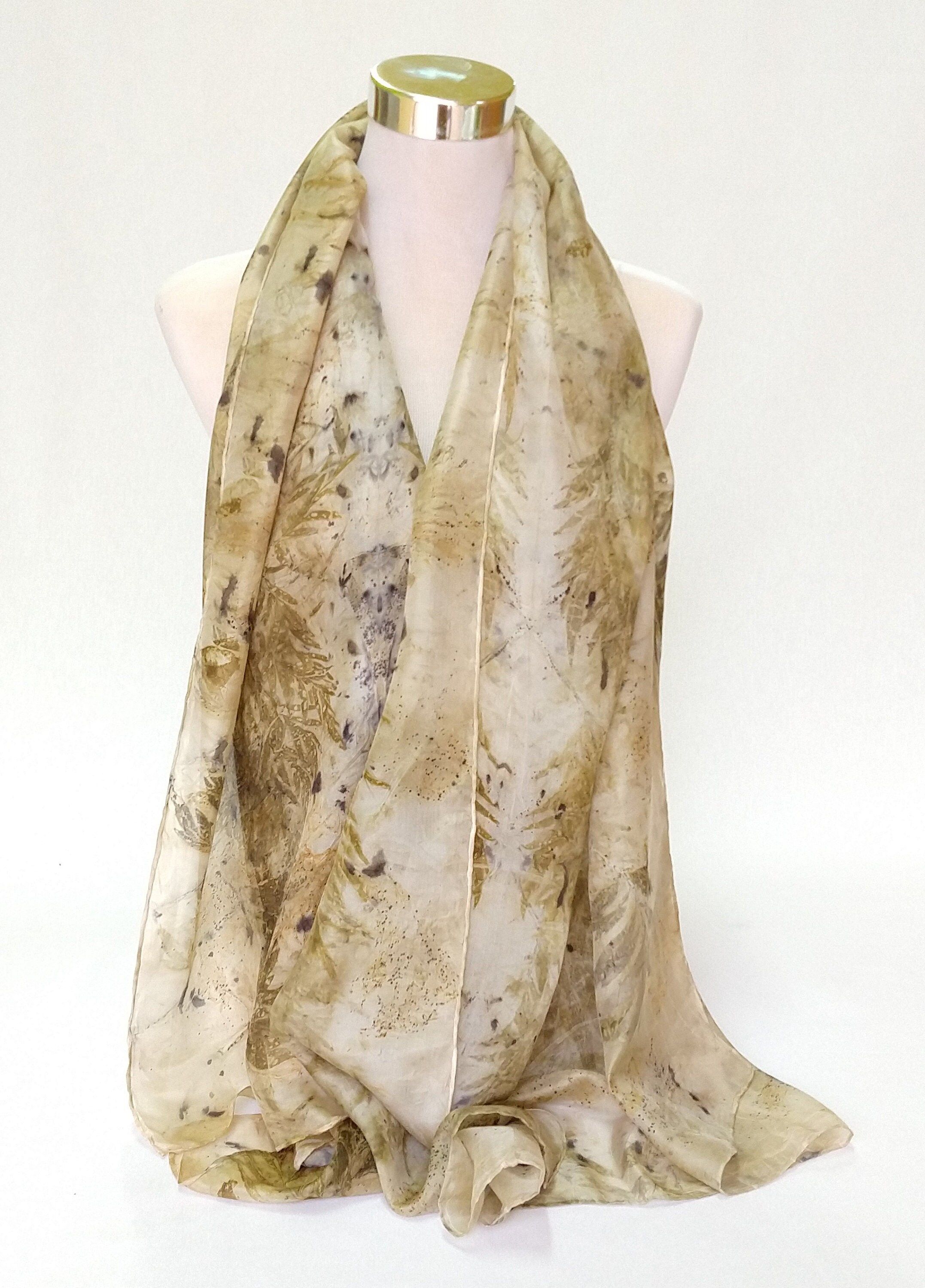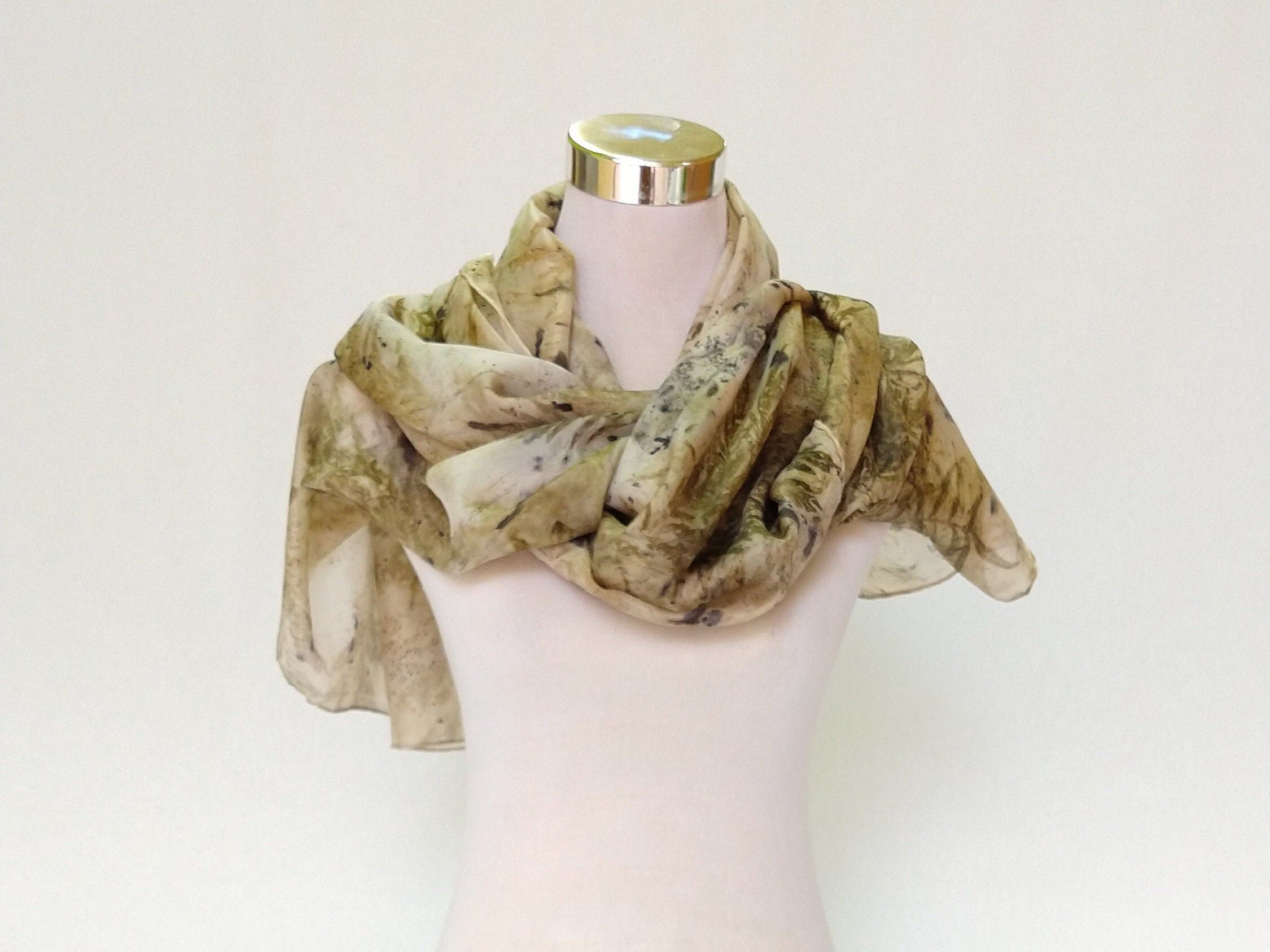 Bufanda de seda floral hecha a mano, chal de seda grande hecho con hojas de árboles, regalo para mujeres amantes de la botánica y la naturaleza, 72x36 pulgadas