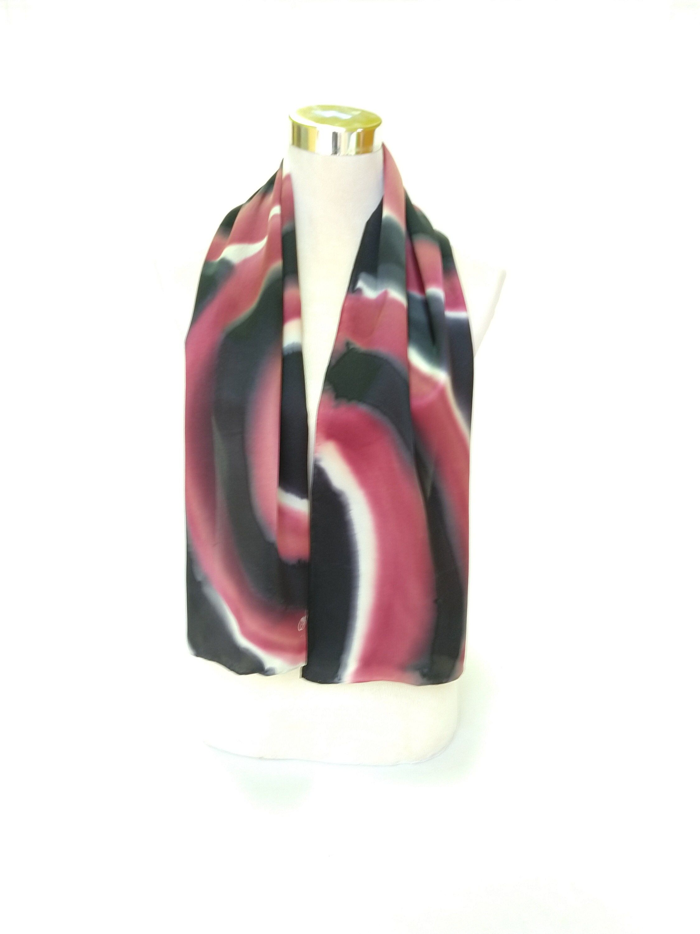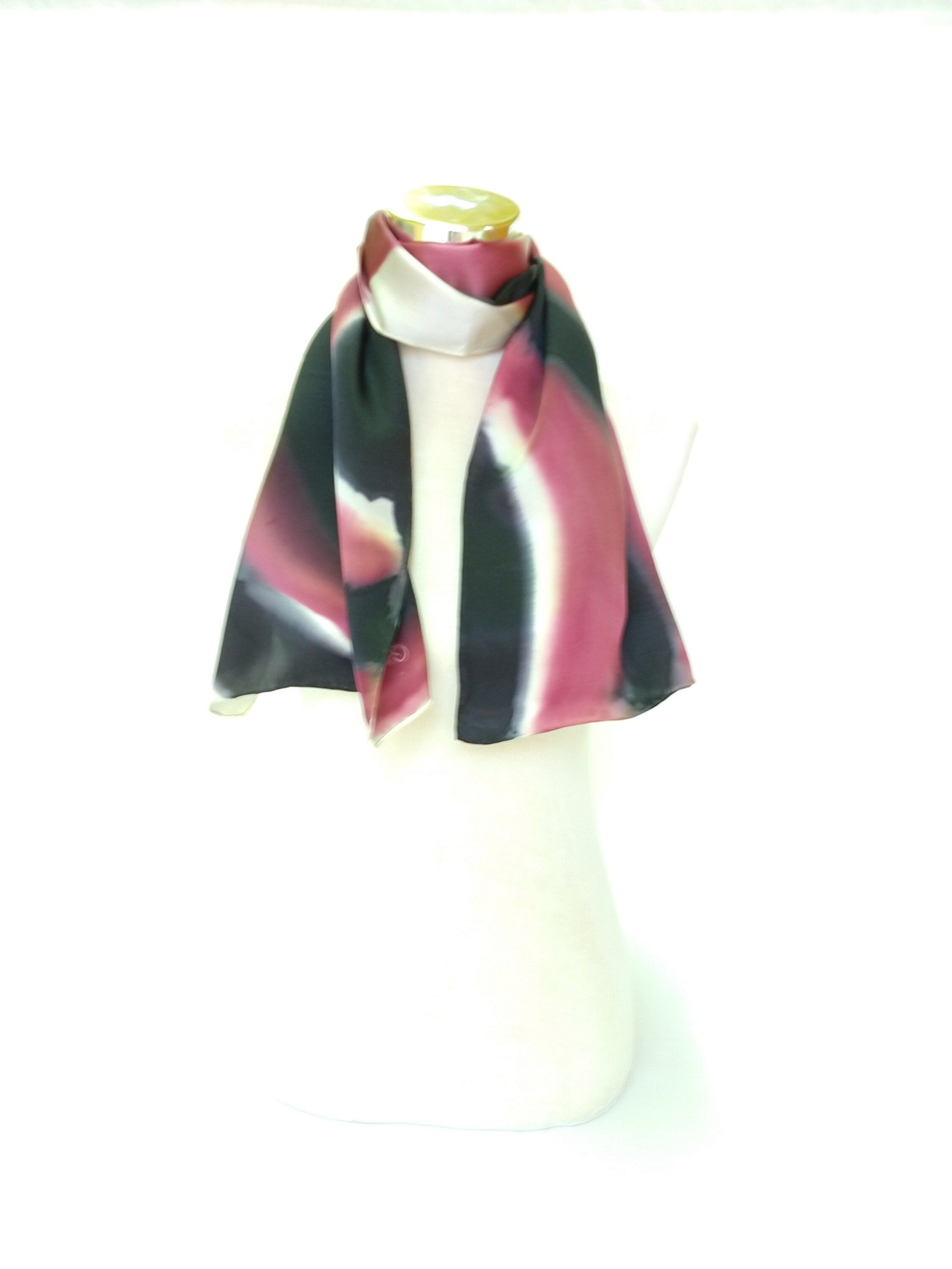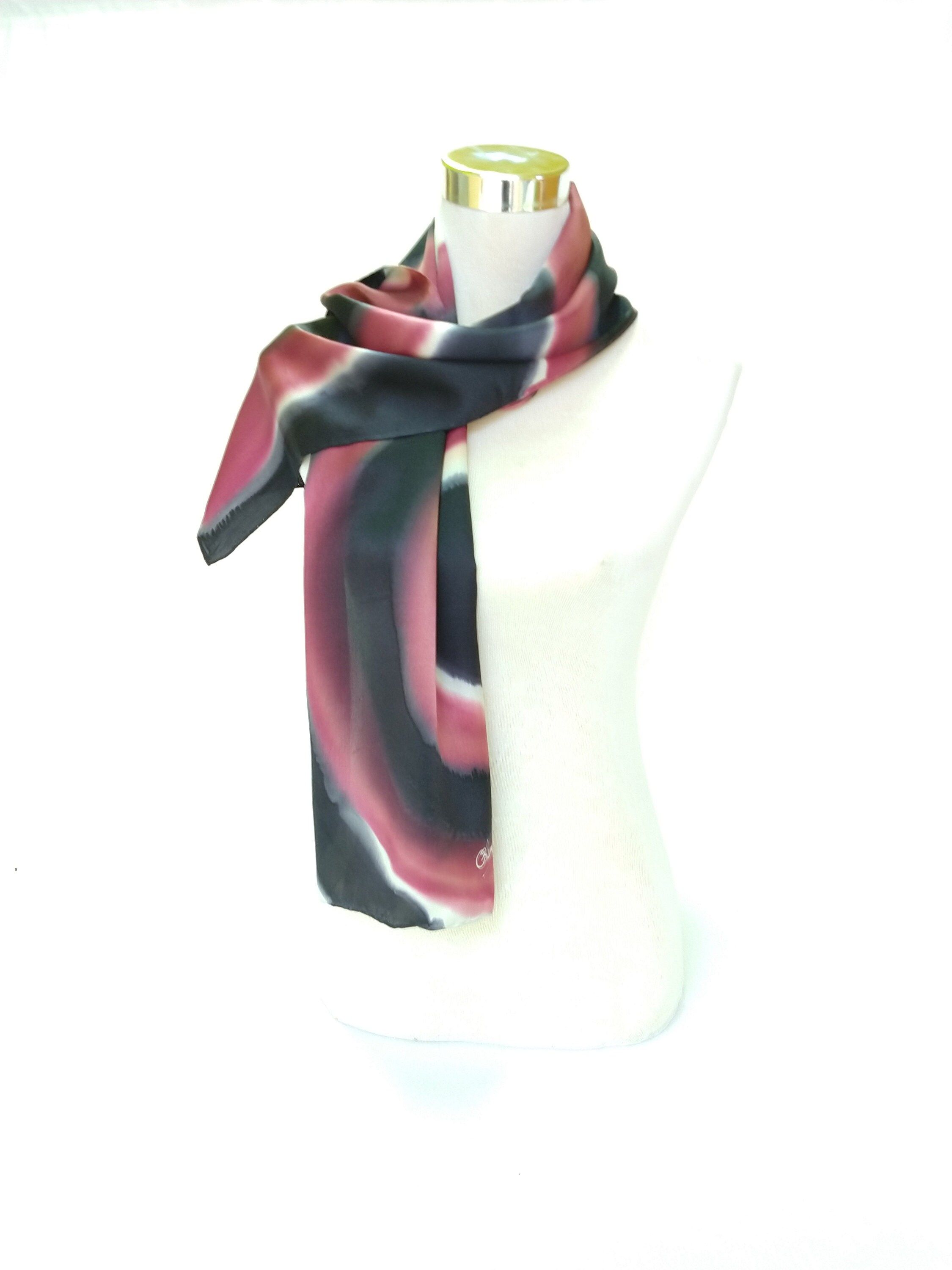 Bufanda de seda negra y burdeos pintada a mano, chal de satén para mujer, bufanda abstracta para regalo de mejor amiga, 12 x 52 pulgadas, hecha a pedido