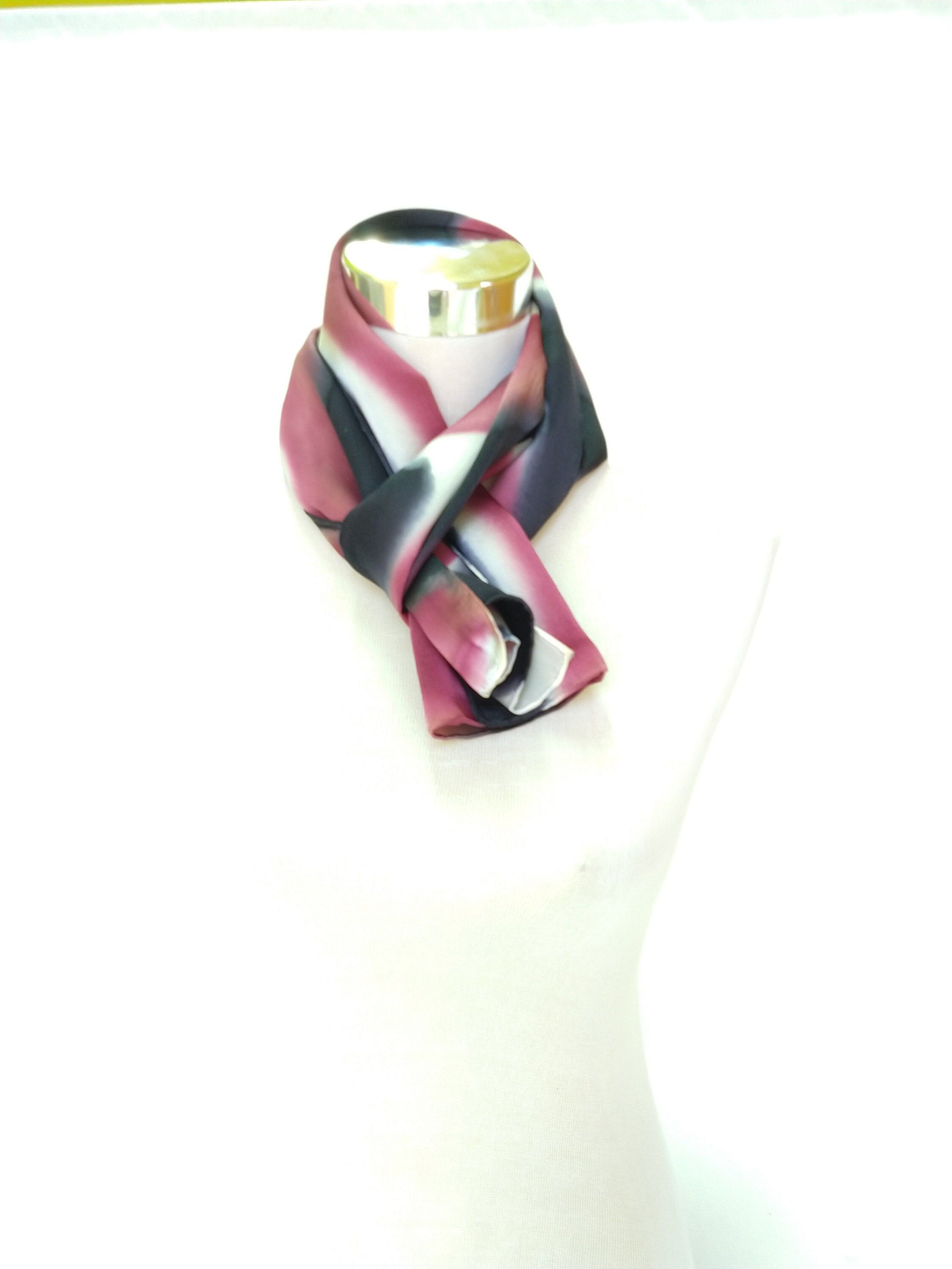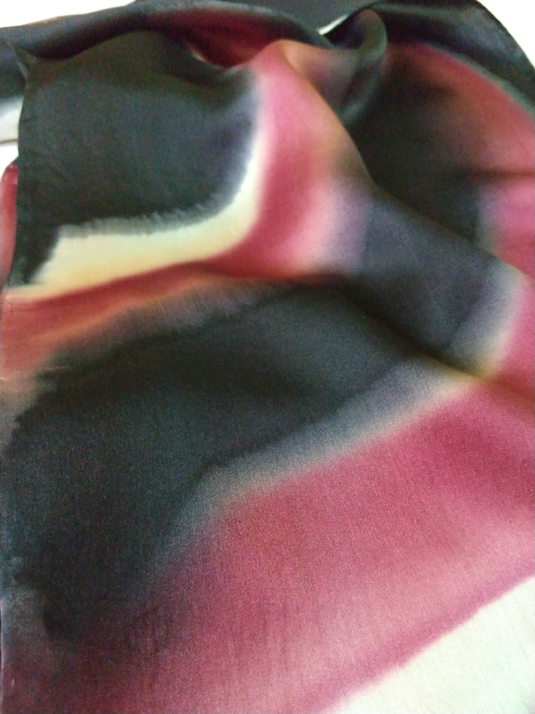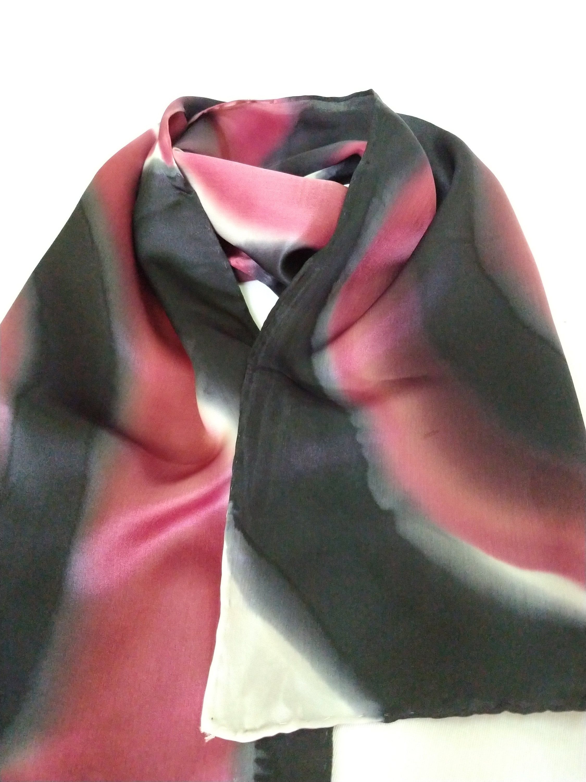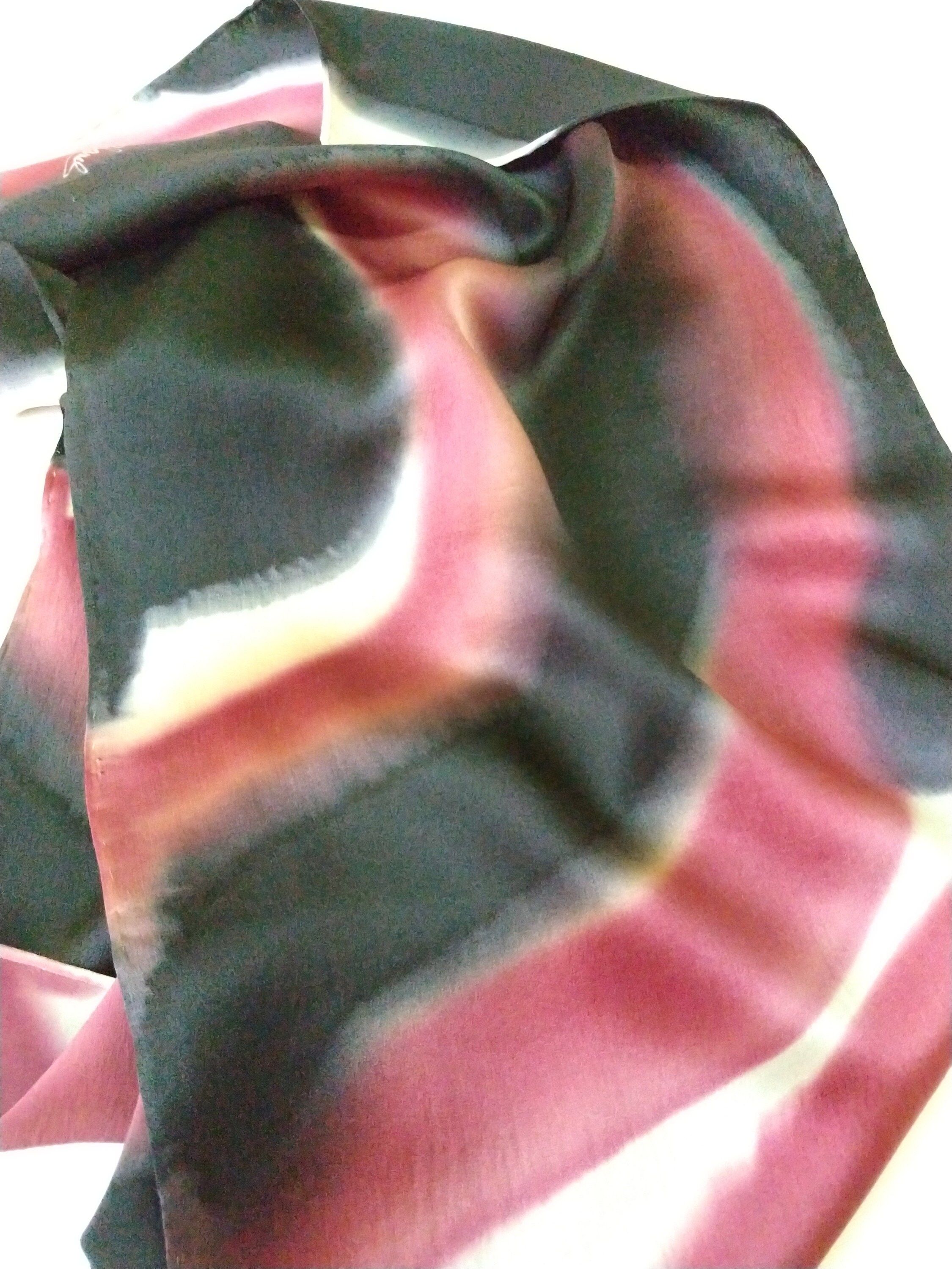 Bufanda de seda negra y burdeos pintada a mano, chal de satén para mujer, bufanda abstracta para regalo de mejor amiga, 12 x 52 pulgadas, hecha a pedido