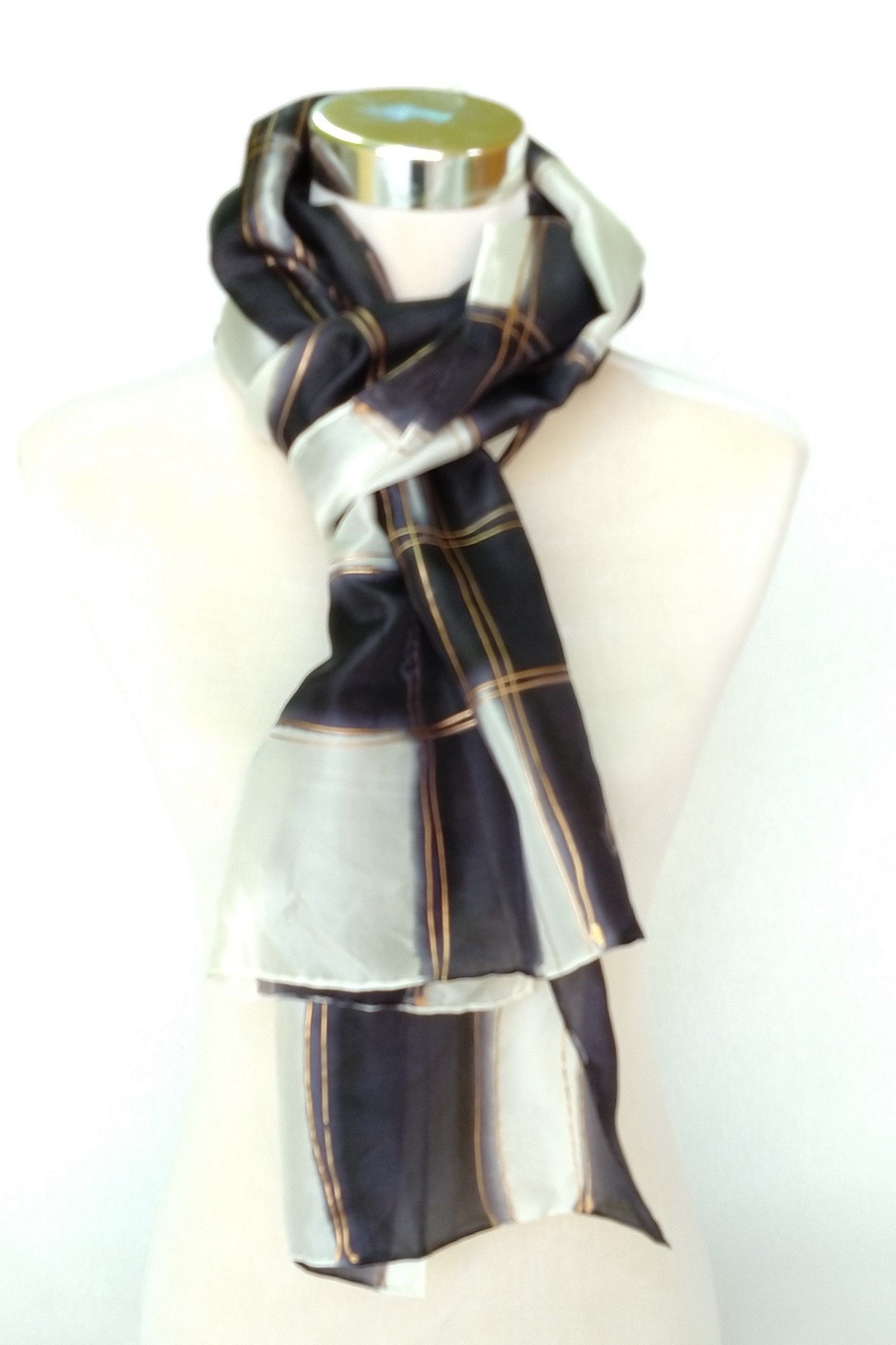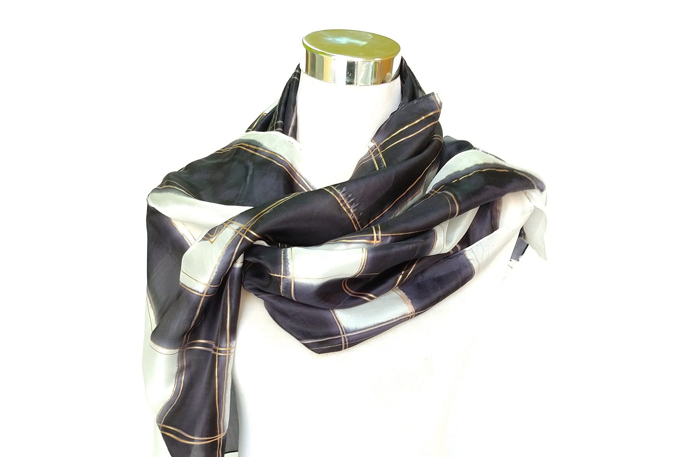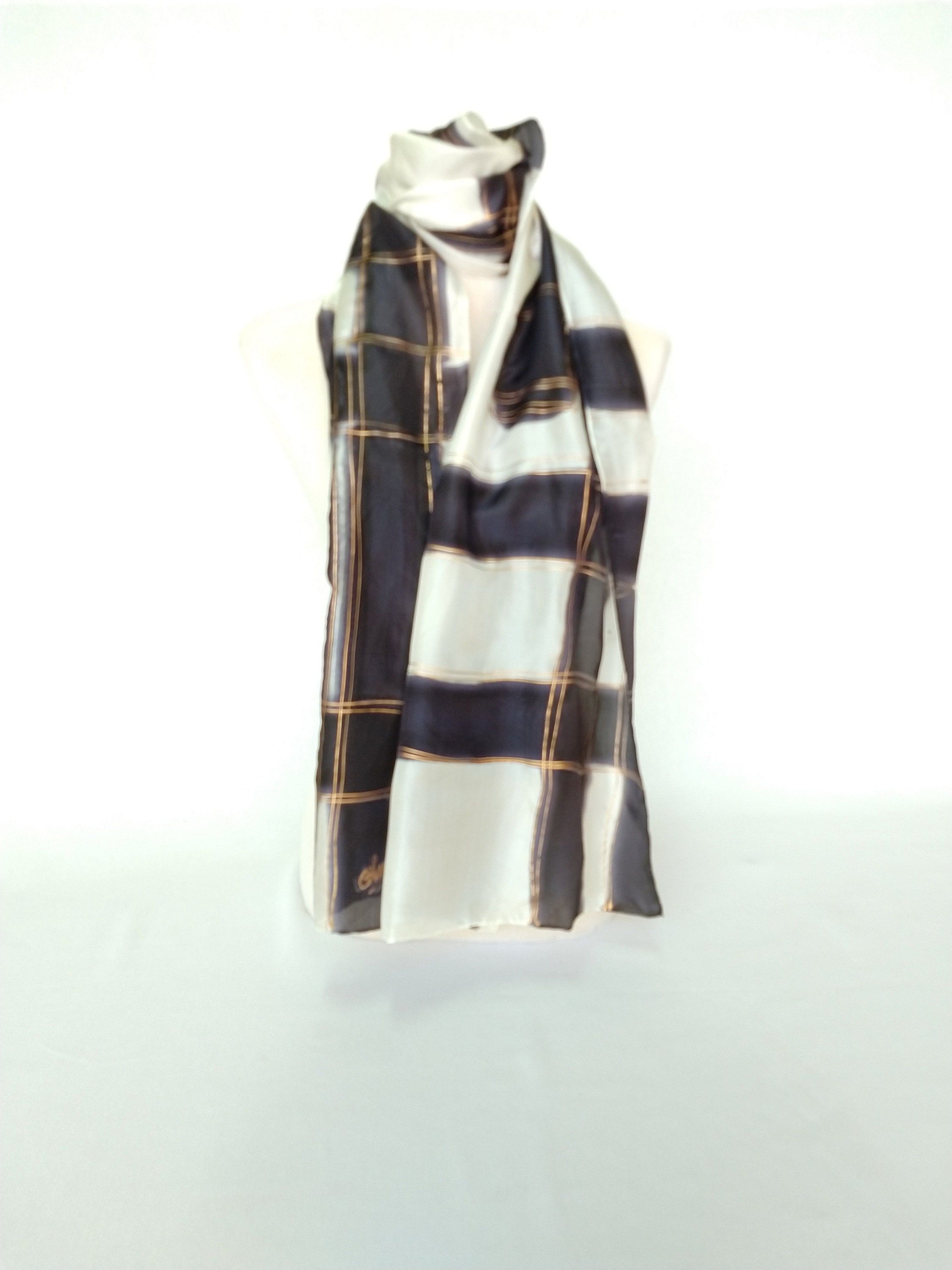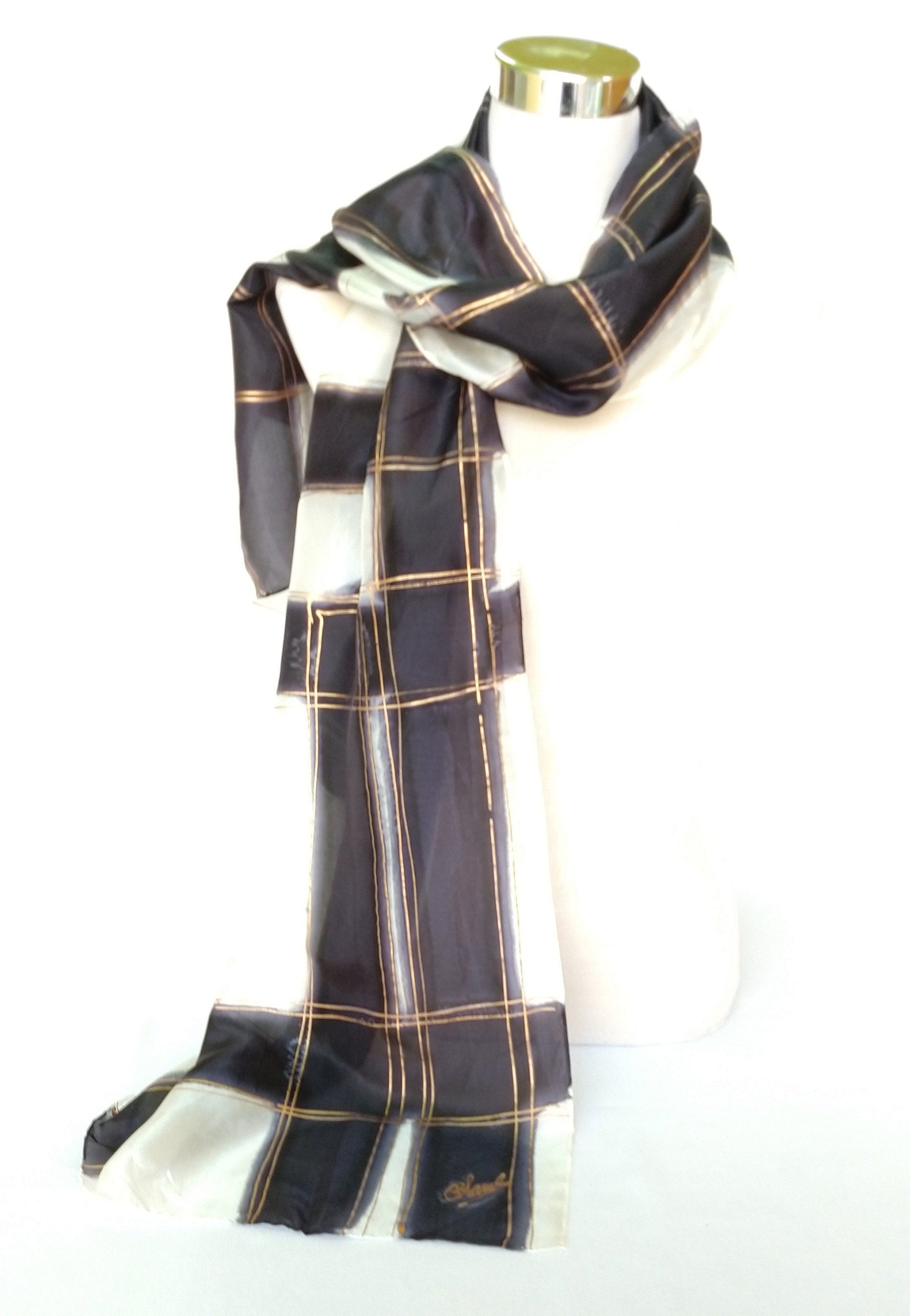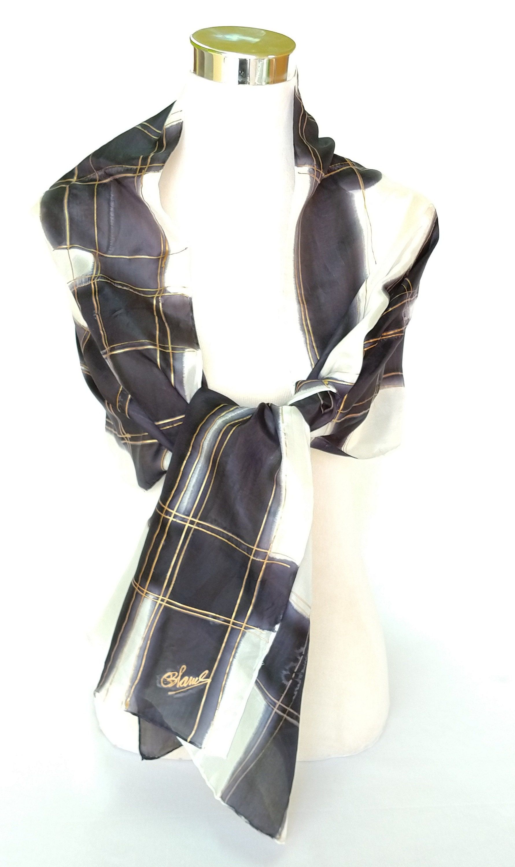 Bufanda de seda pintada a mano en blanco y negro, chal de boda largo de lujo para mujer, regalo para mujer jefa, 18 x 72 pulgadas