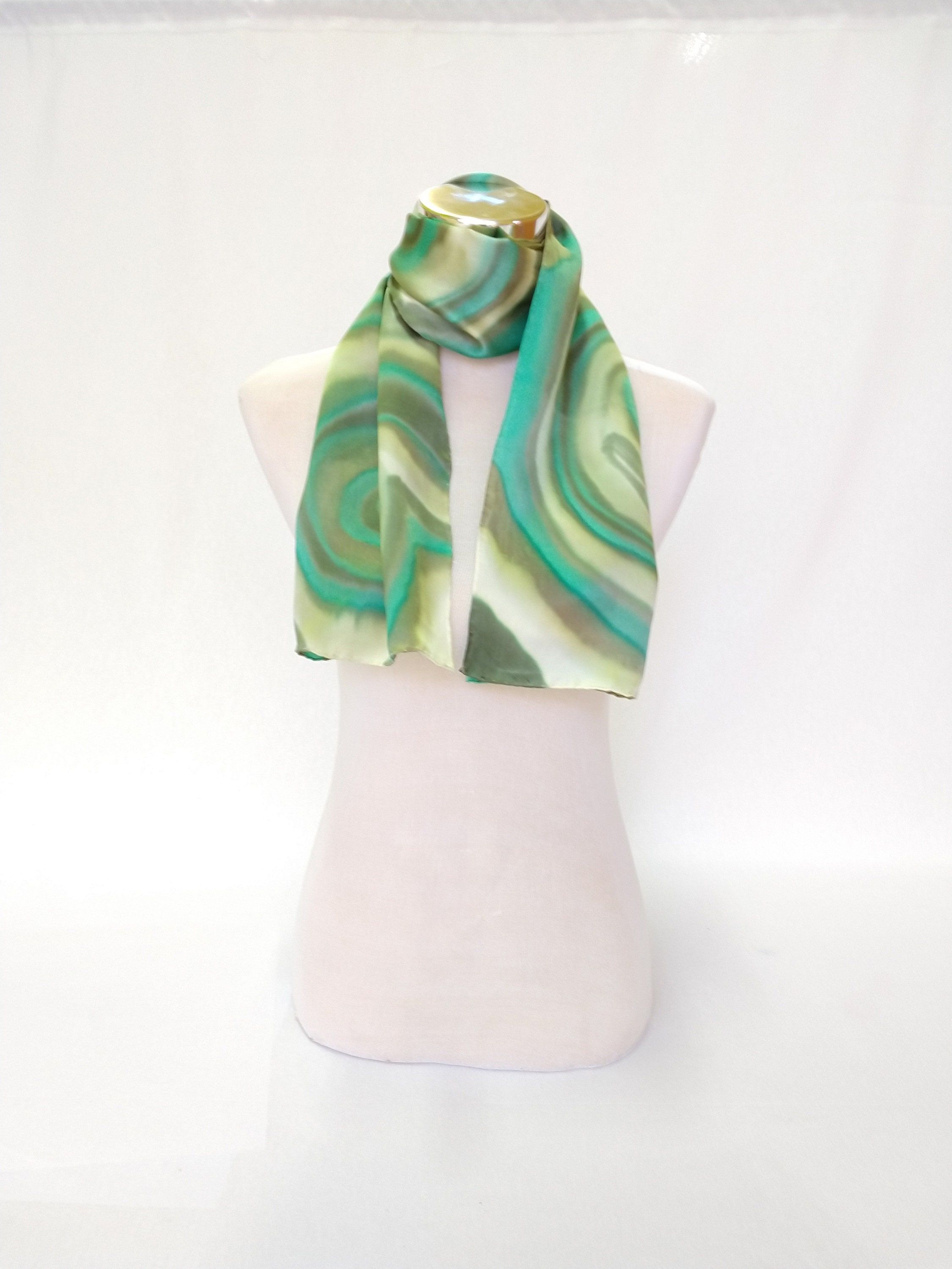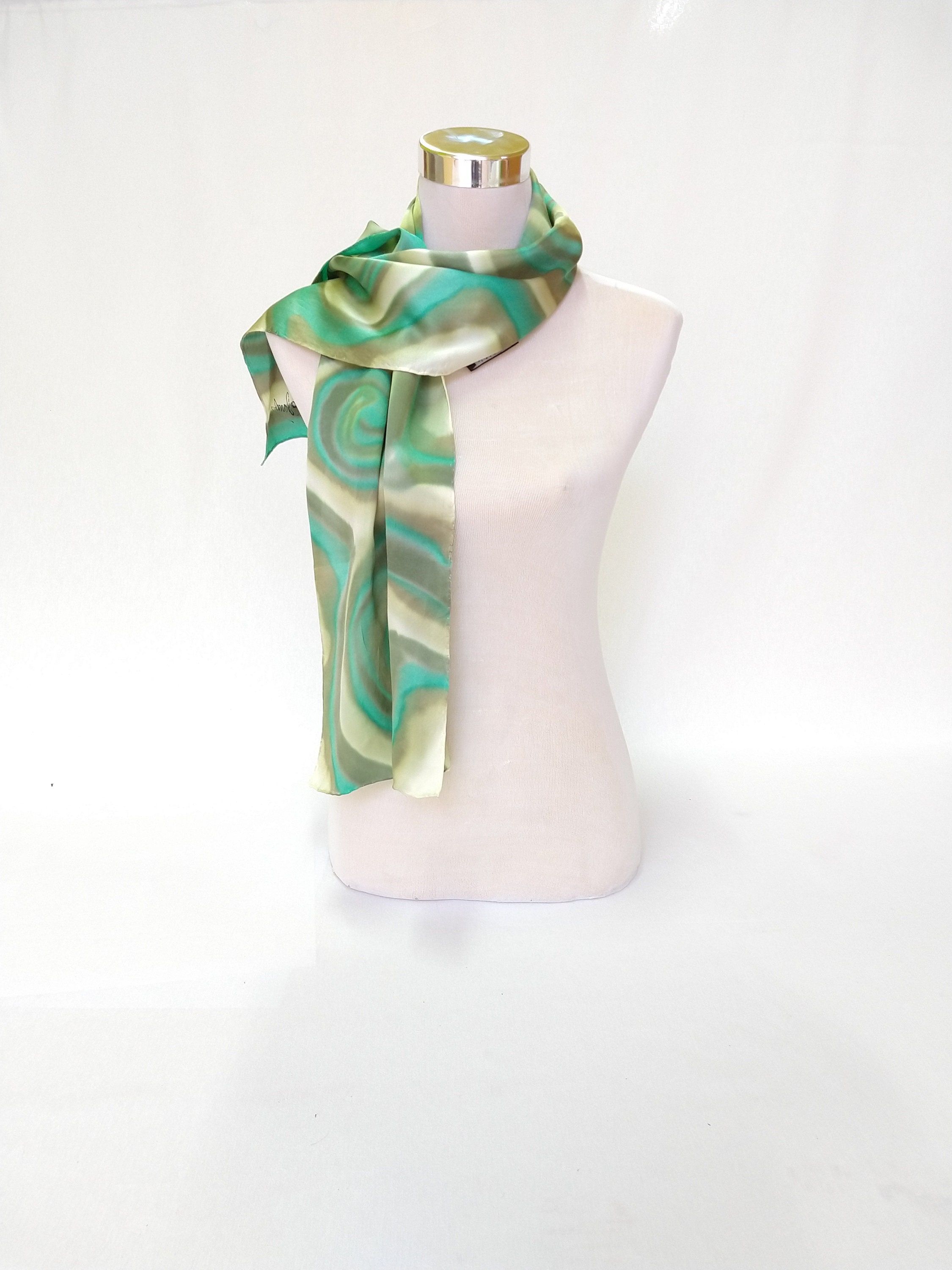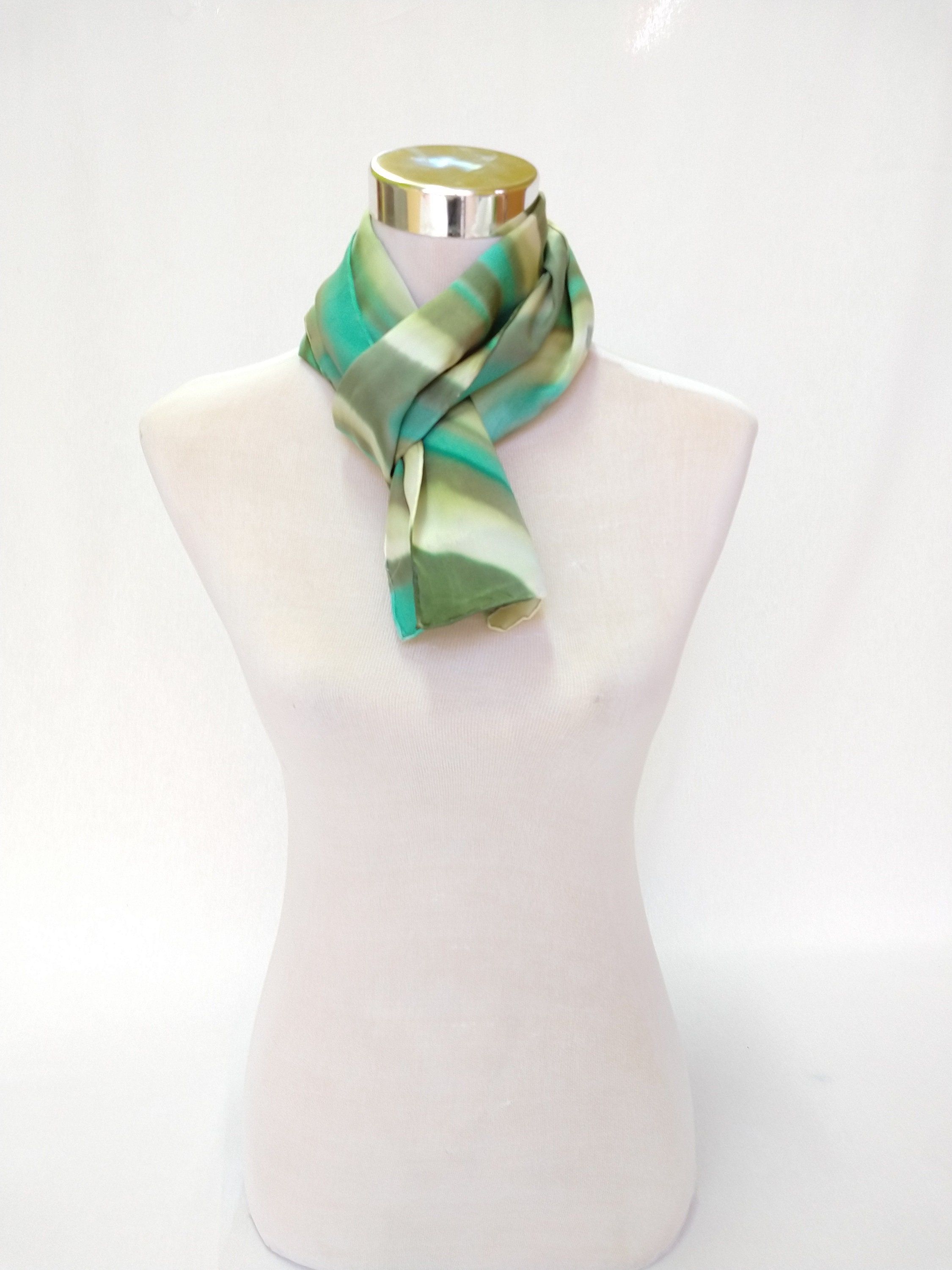 Bufanda de seda satinada verde pintada a mano, chal de moda para mujer, regalo de hija a mamá, 12 x 52 pulgadas