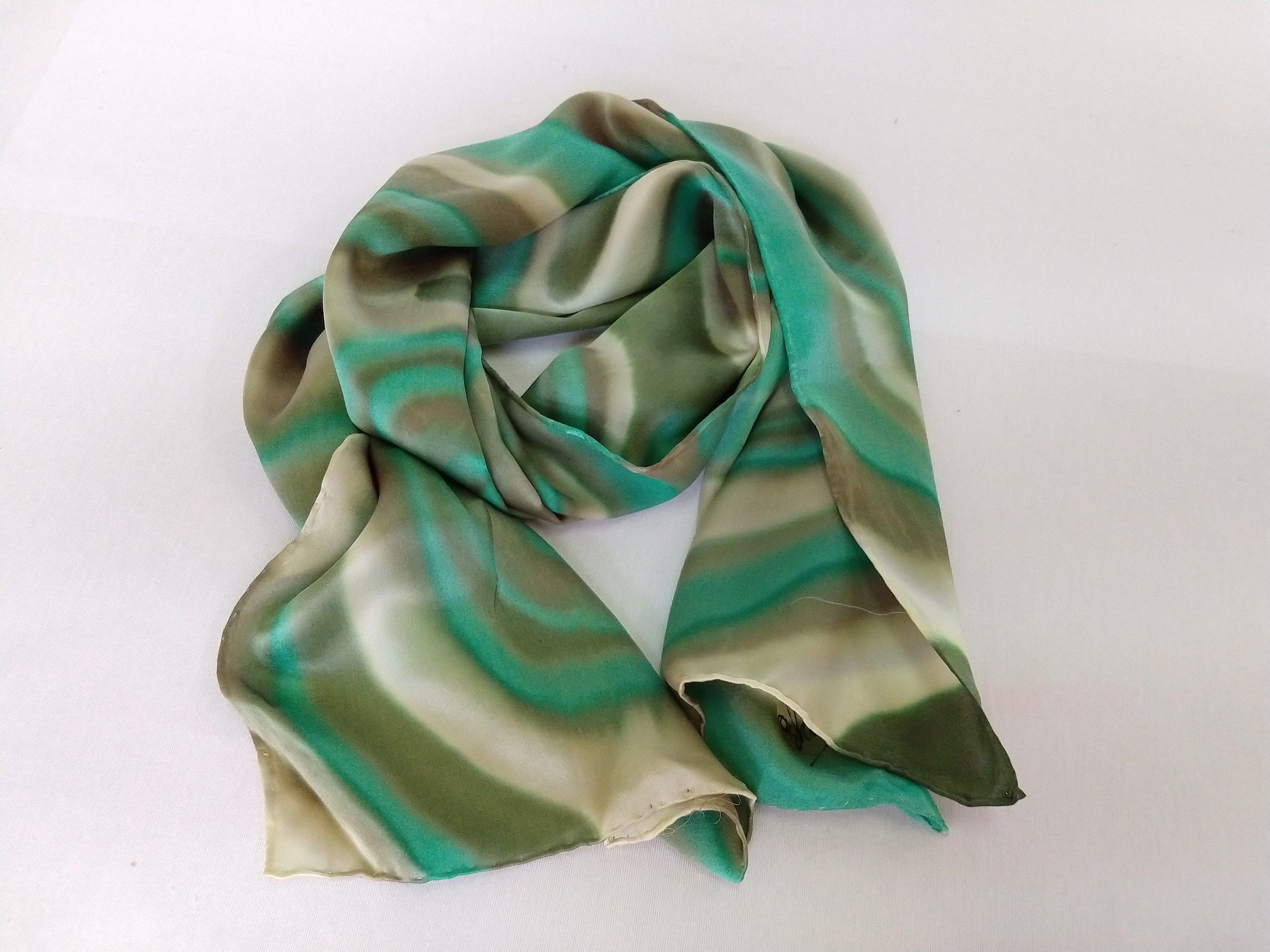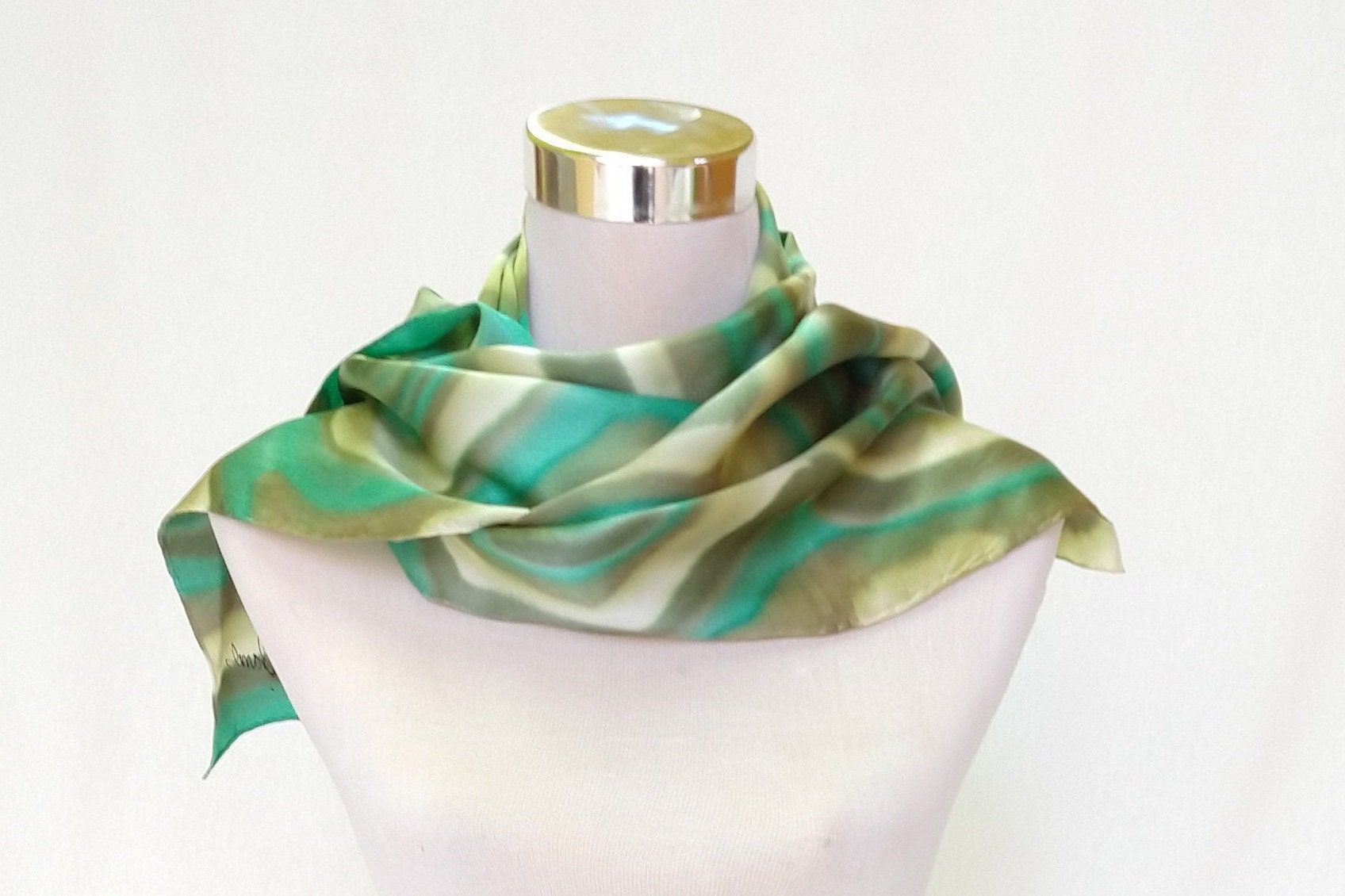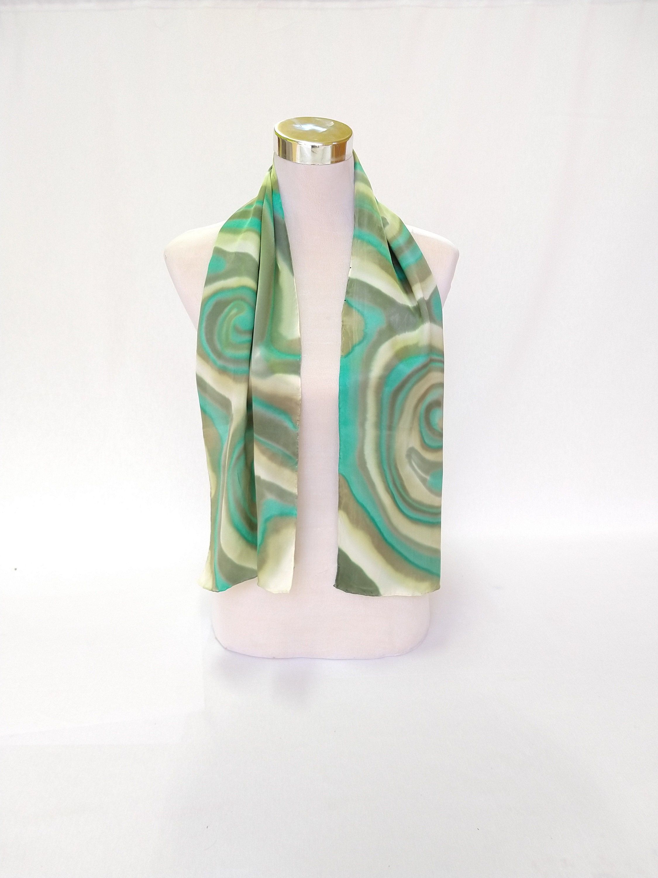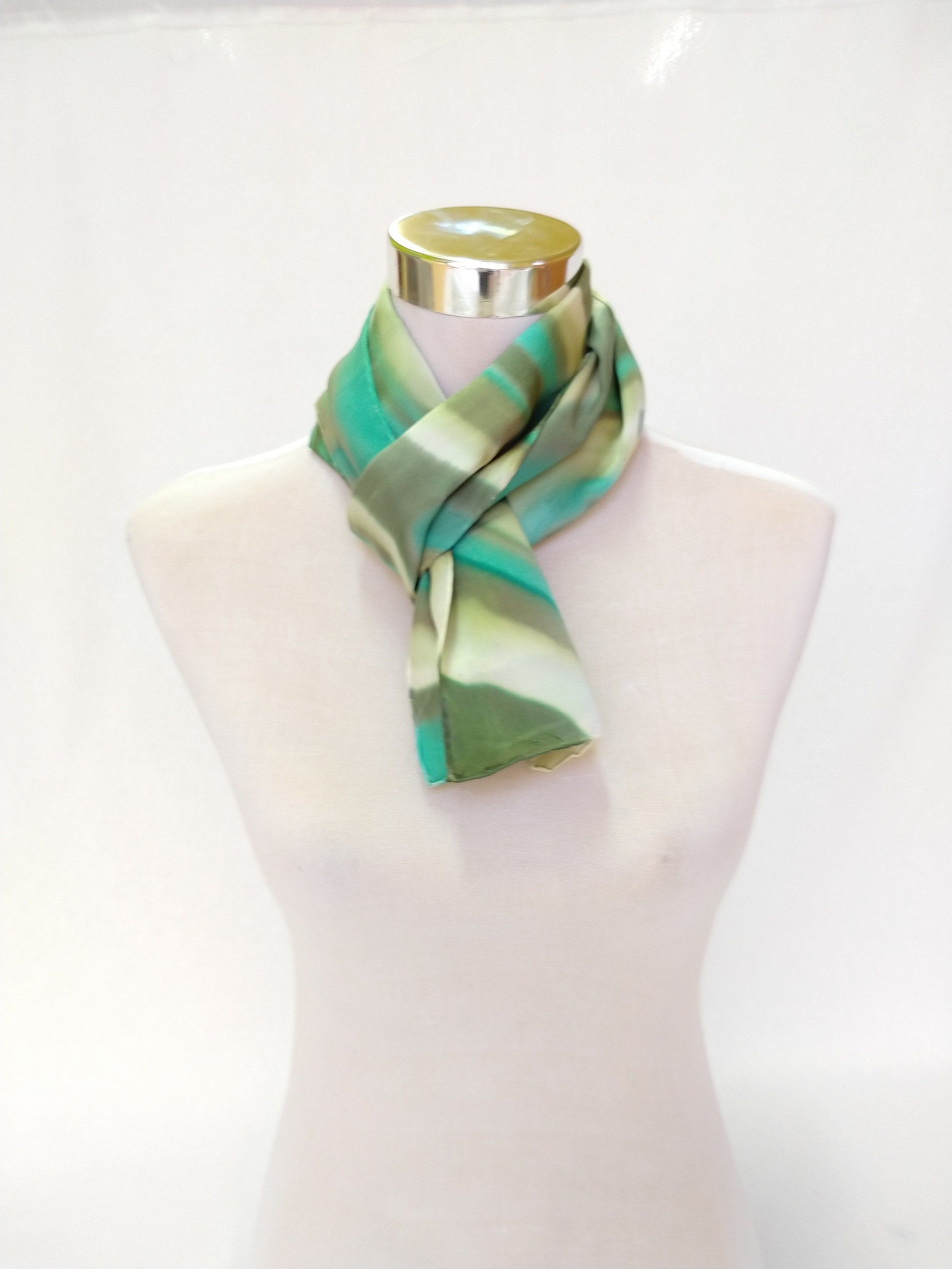 Bufanda de seda satinada verde pintada a mano, chal de moda para mujer, regalo de hija a mamá, 12 x 52 pulgadas