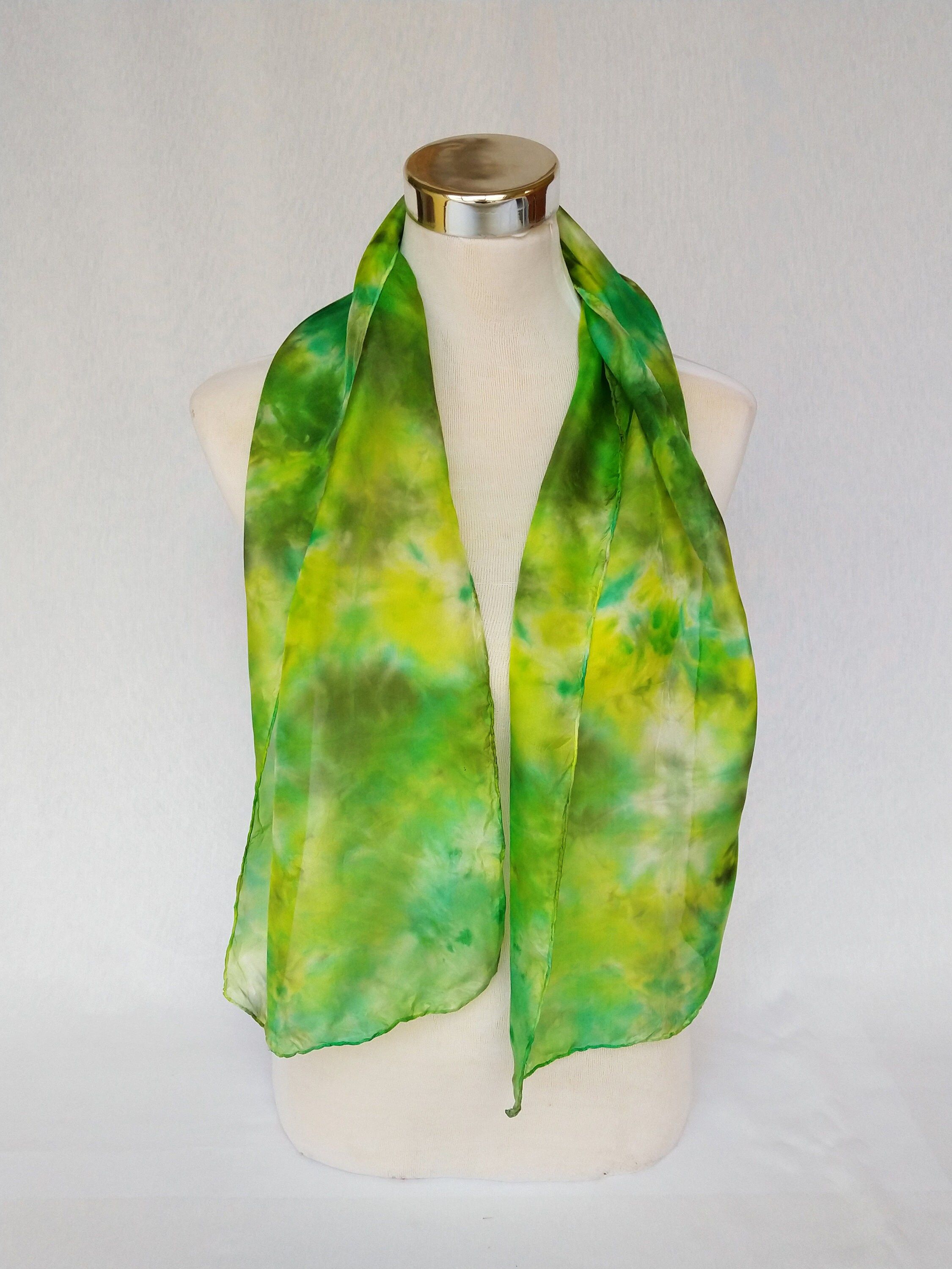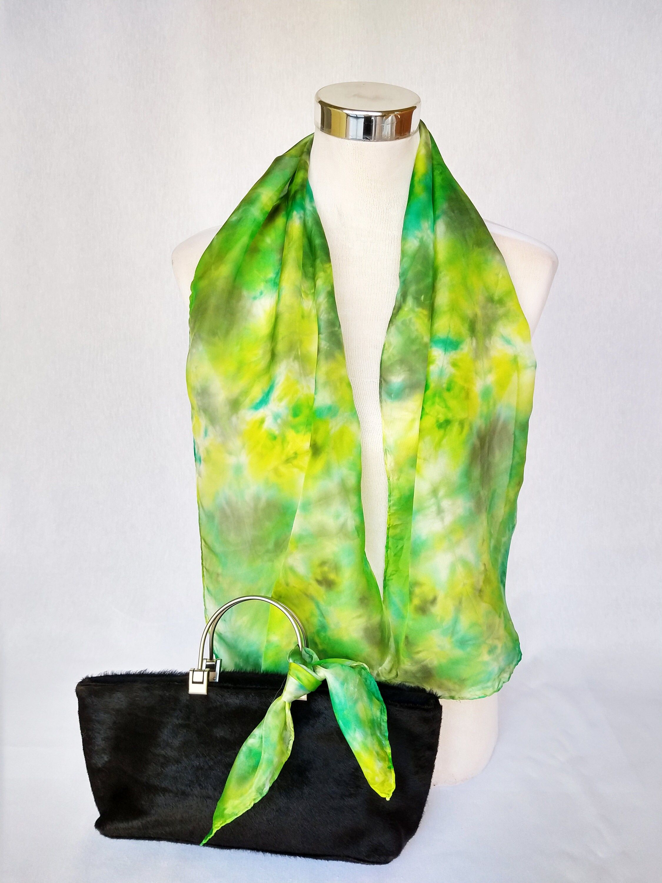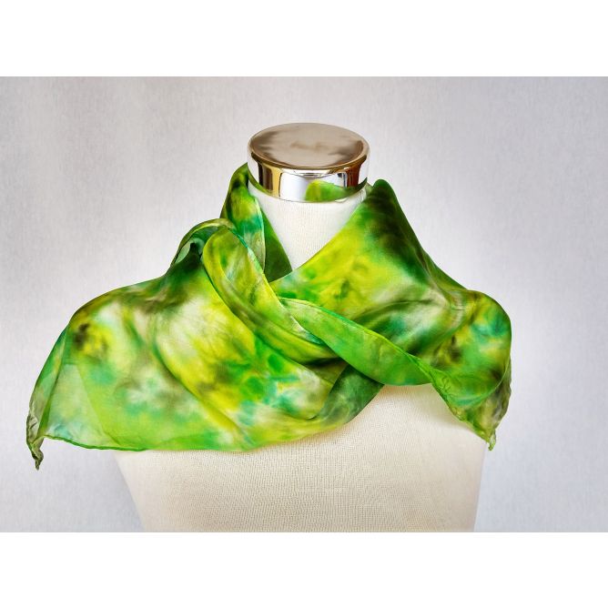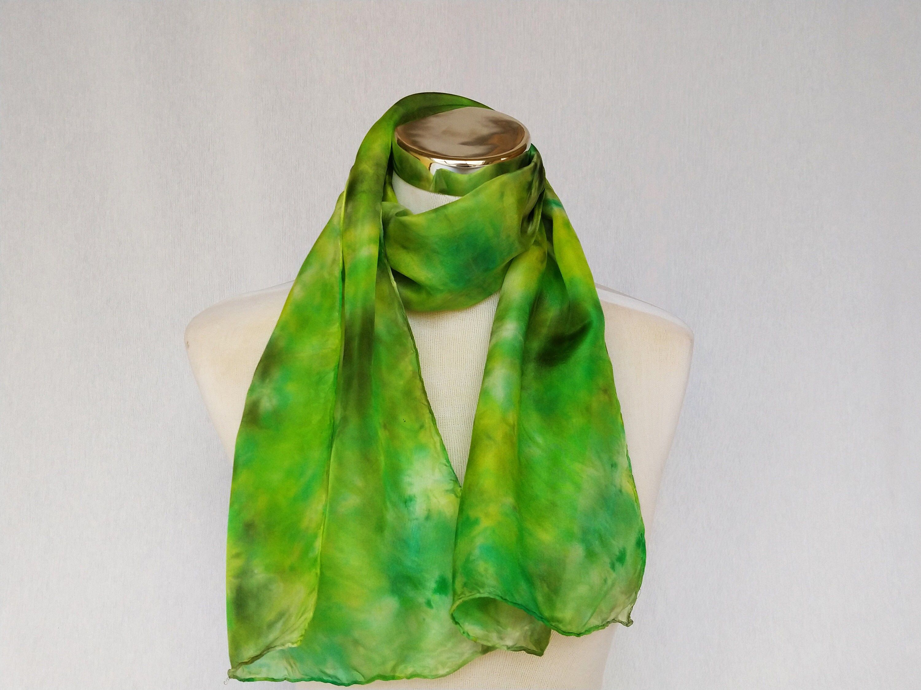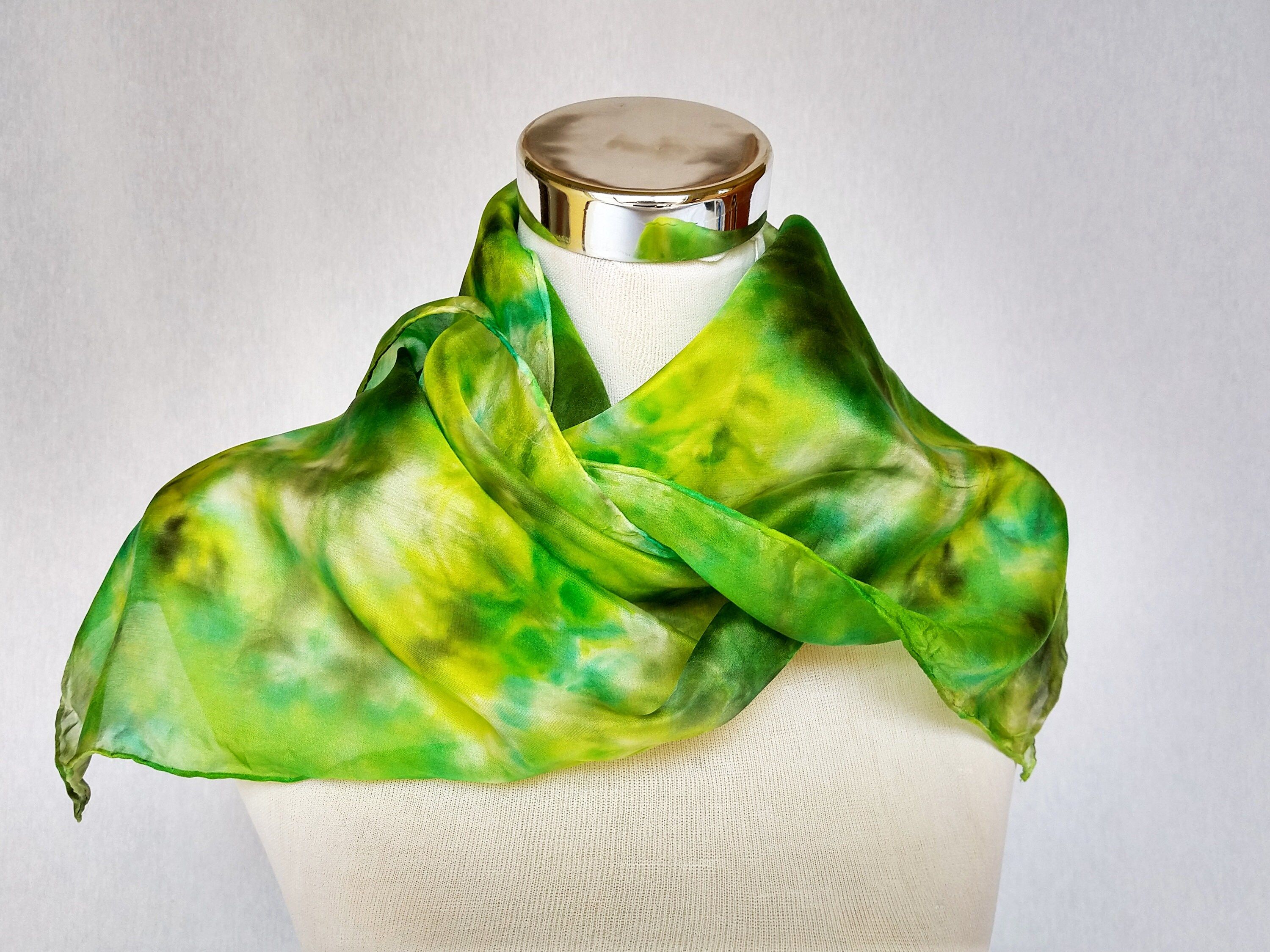 Bufanda de seda verde limón fresca y brillante, pintada a mano, regalo para hija