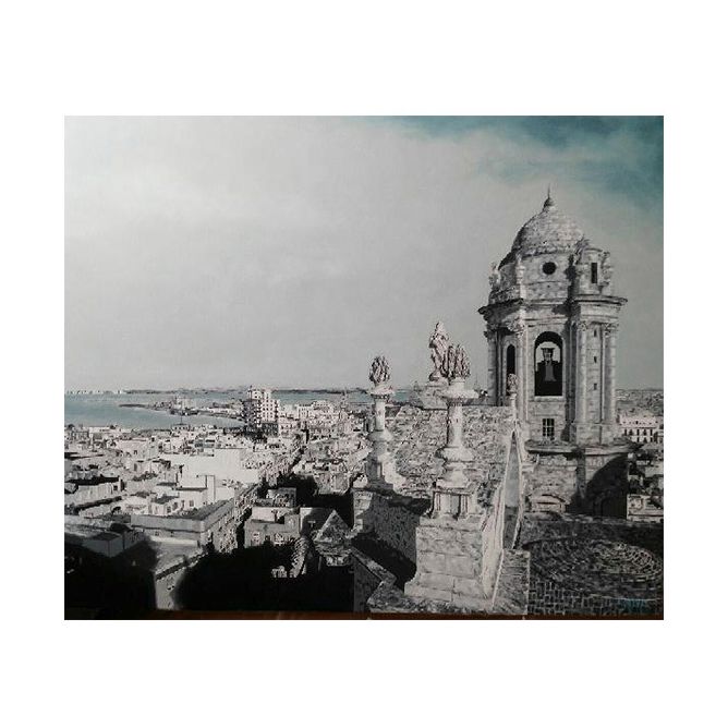Un retrato vibrante y lleno de matices de la ciudad de Cádiz, capturado en óleo sobre tela por el maestro pintor Javier Calvo. Montada en un bastidor de 100x81 cm y acompañada de su certificado de autenticidad, esta obra única no solo embellece cualquier espacio, sino que transmite la esencia luminosa y marinera de la ciudad.