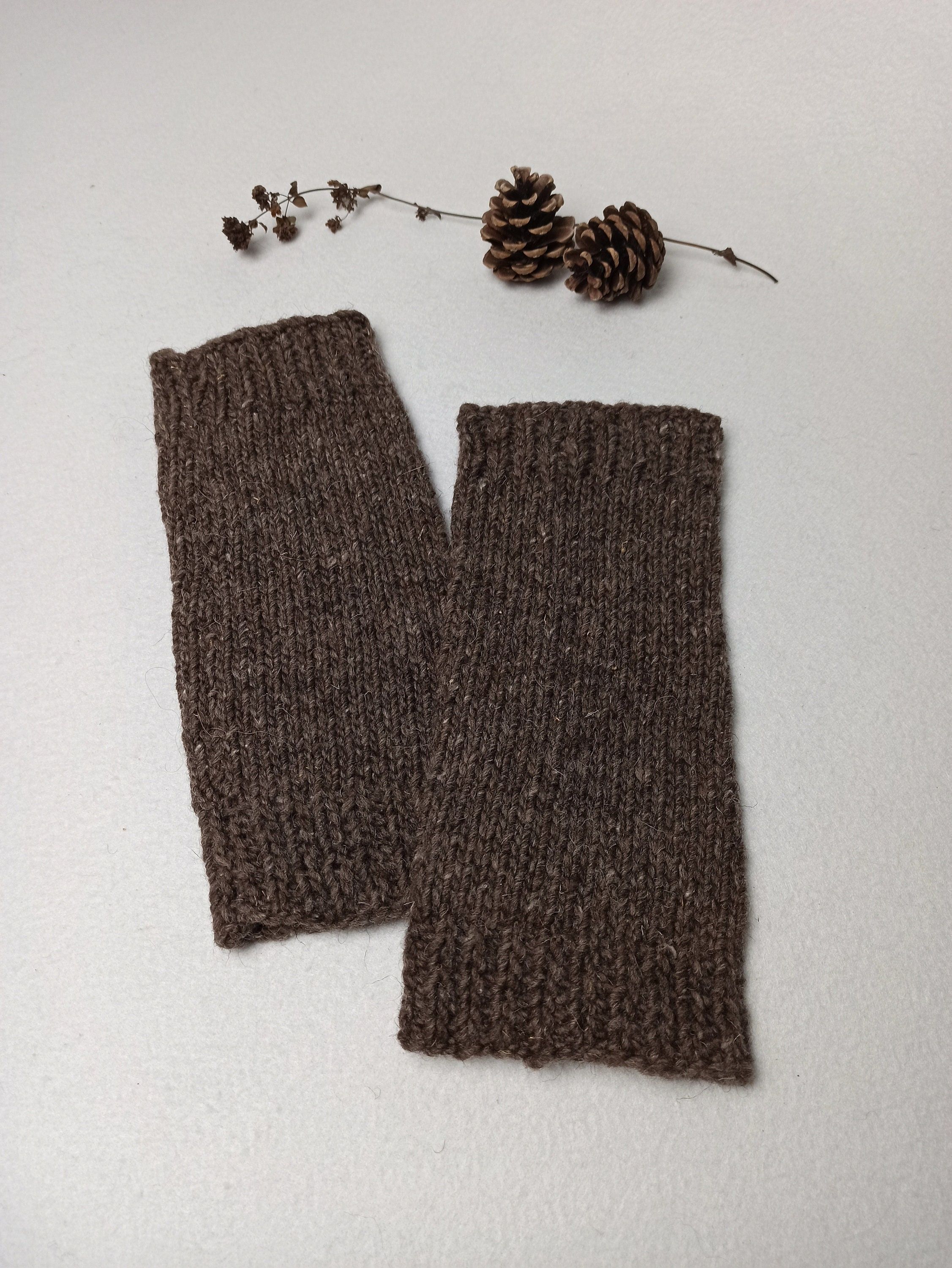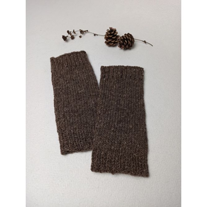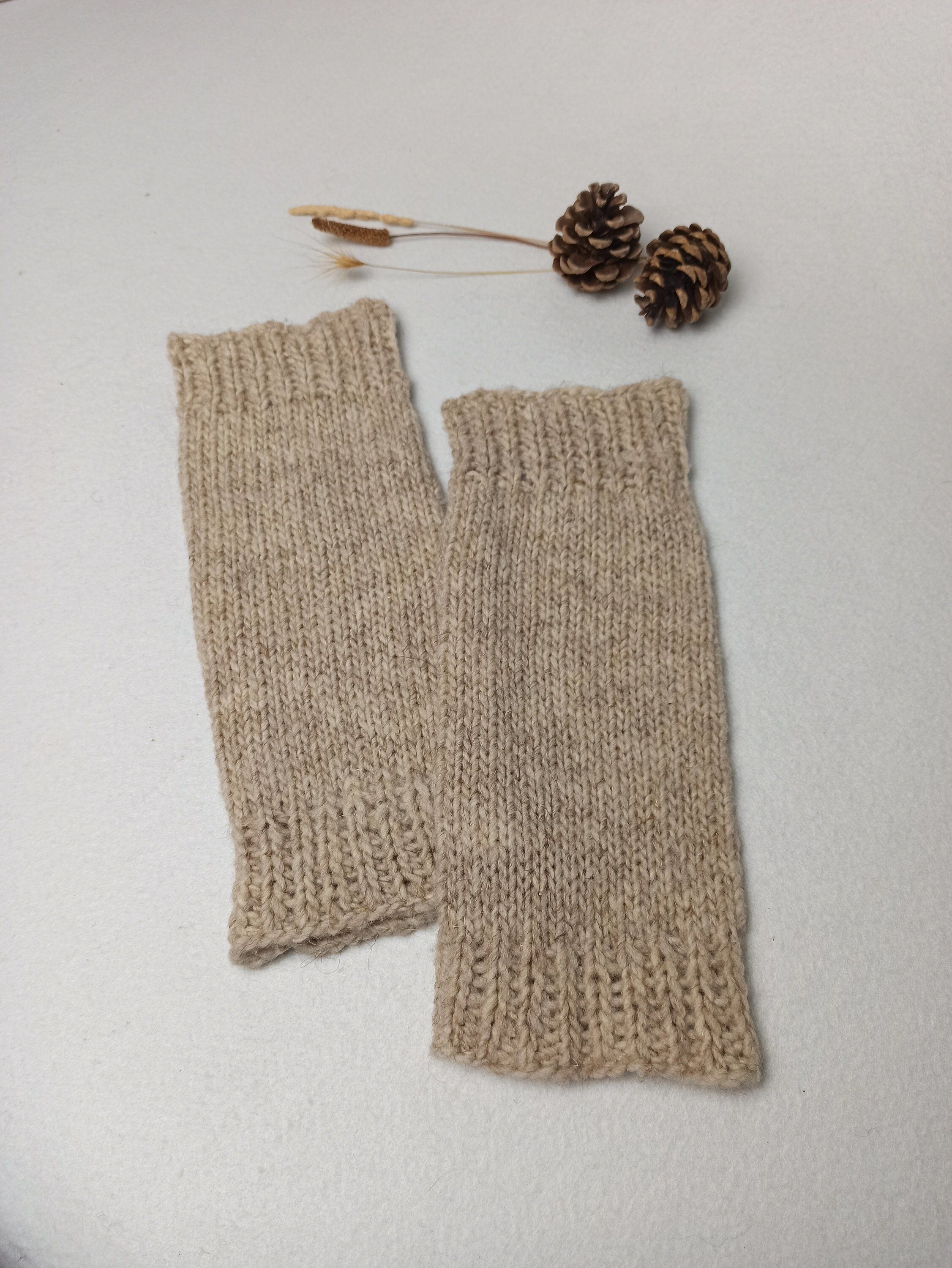 Calentadores tejidos a mano con lana 100% natural de ovejas mallorquinas. Los 2 colores que ofrecemos gris claro y marrón son naturales. Preferentemente lavar a mano. Talla única