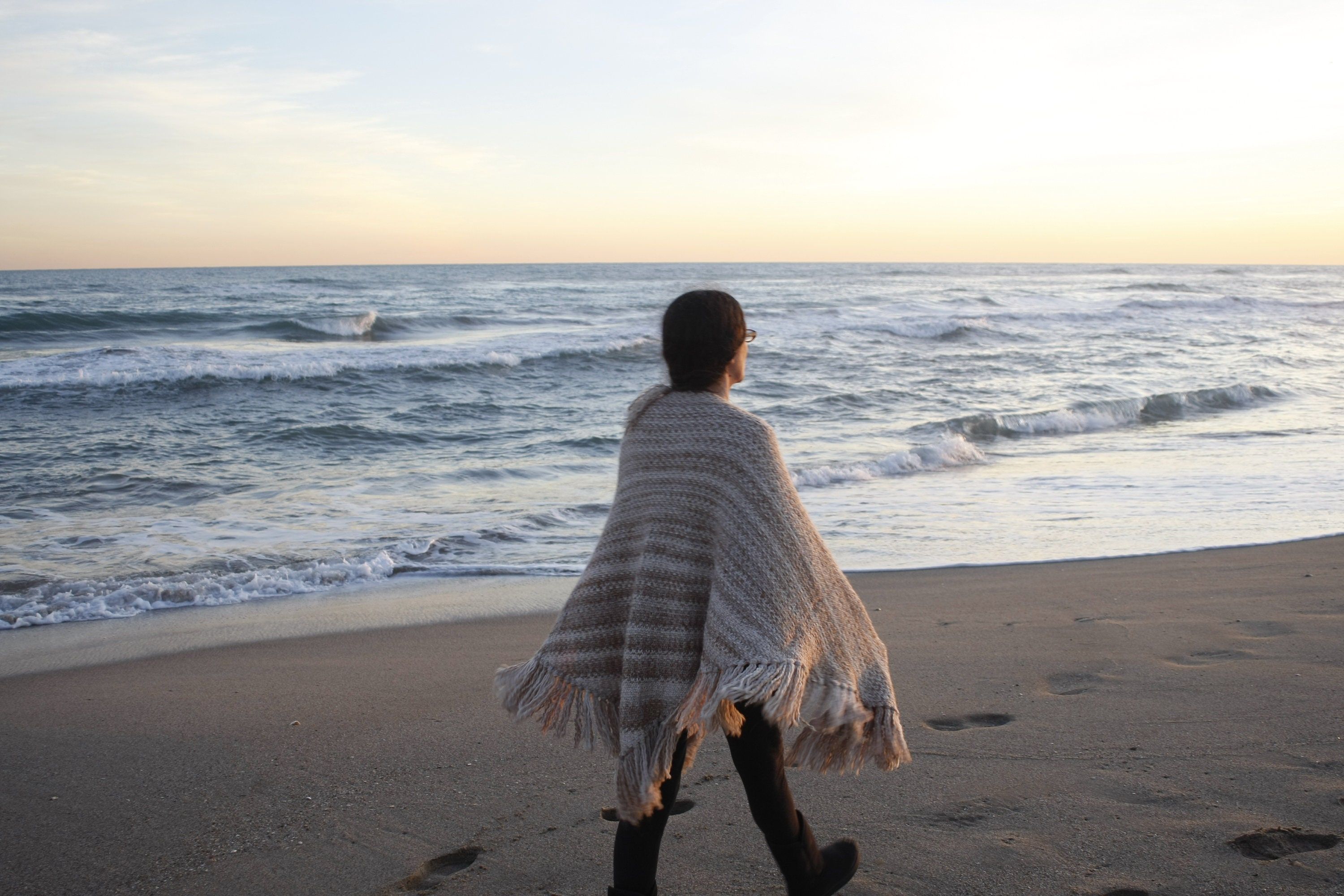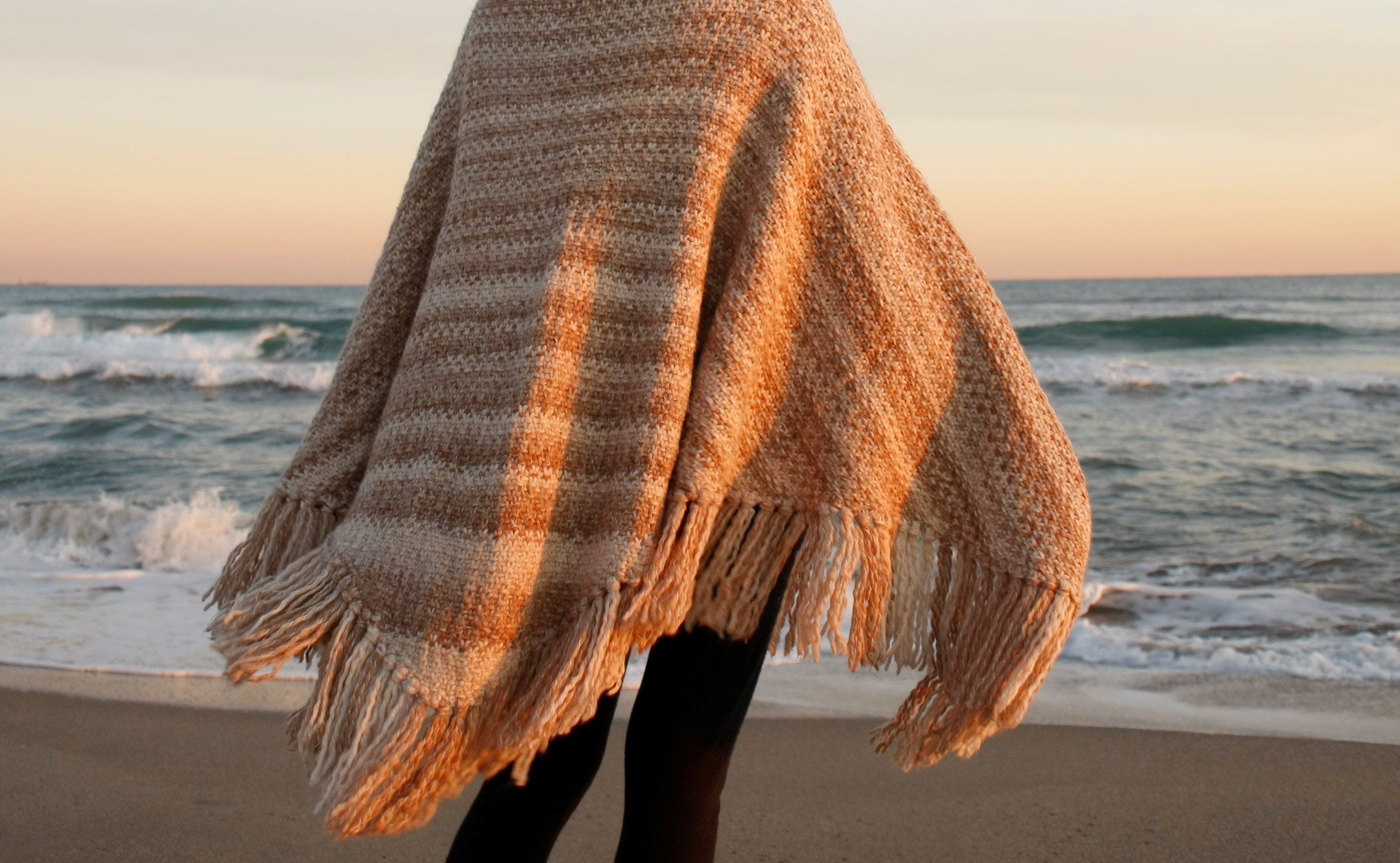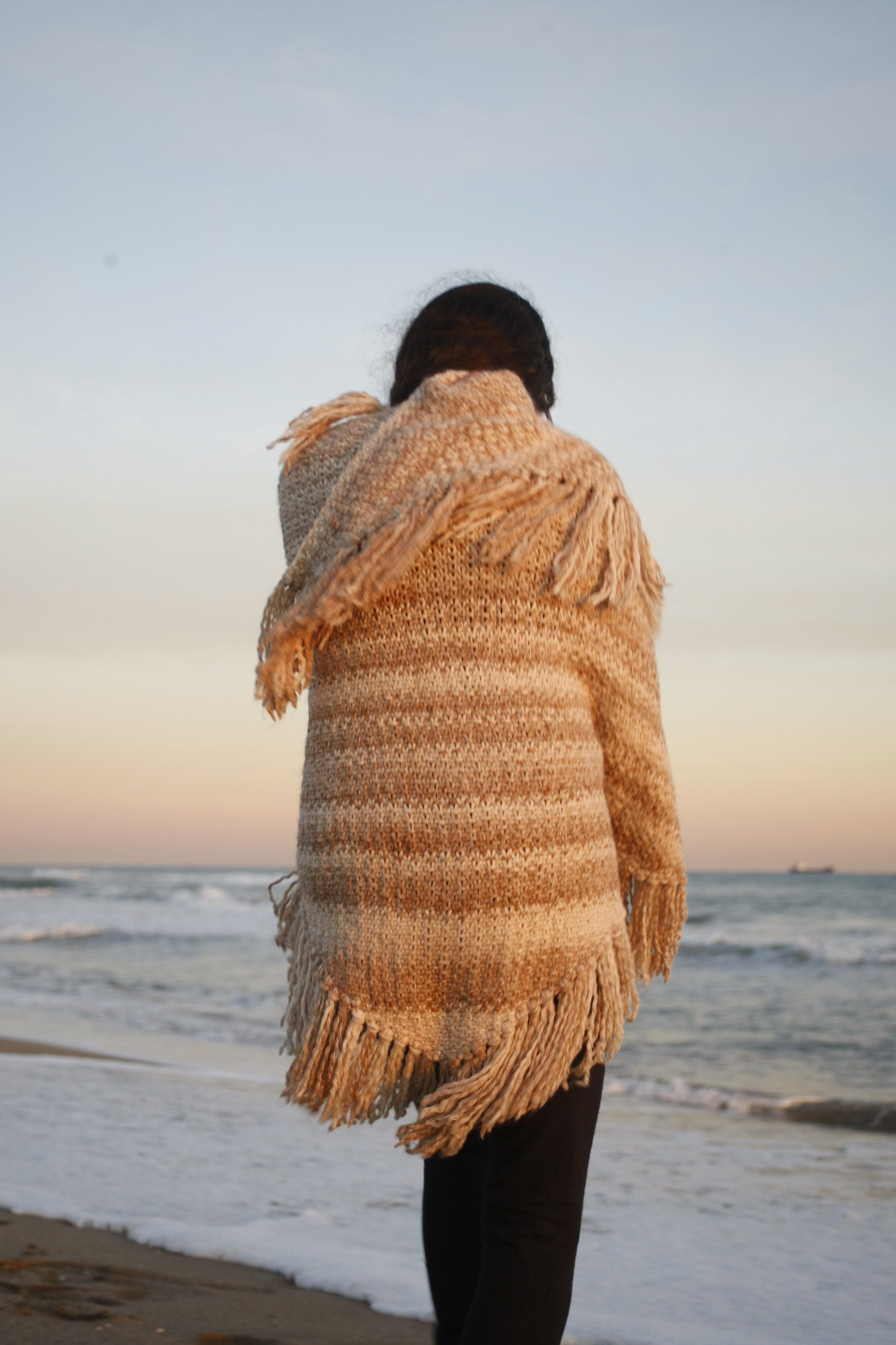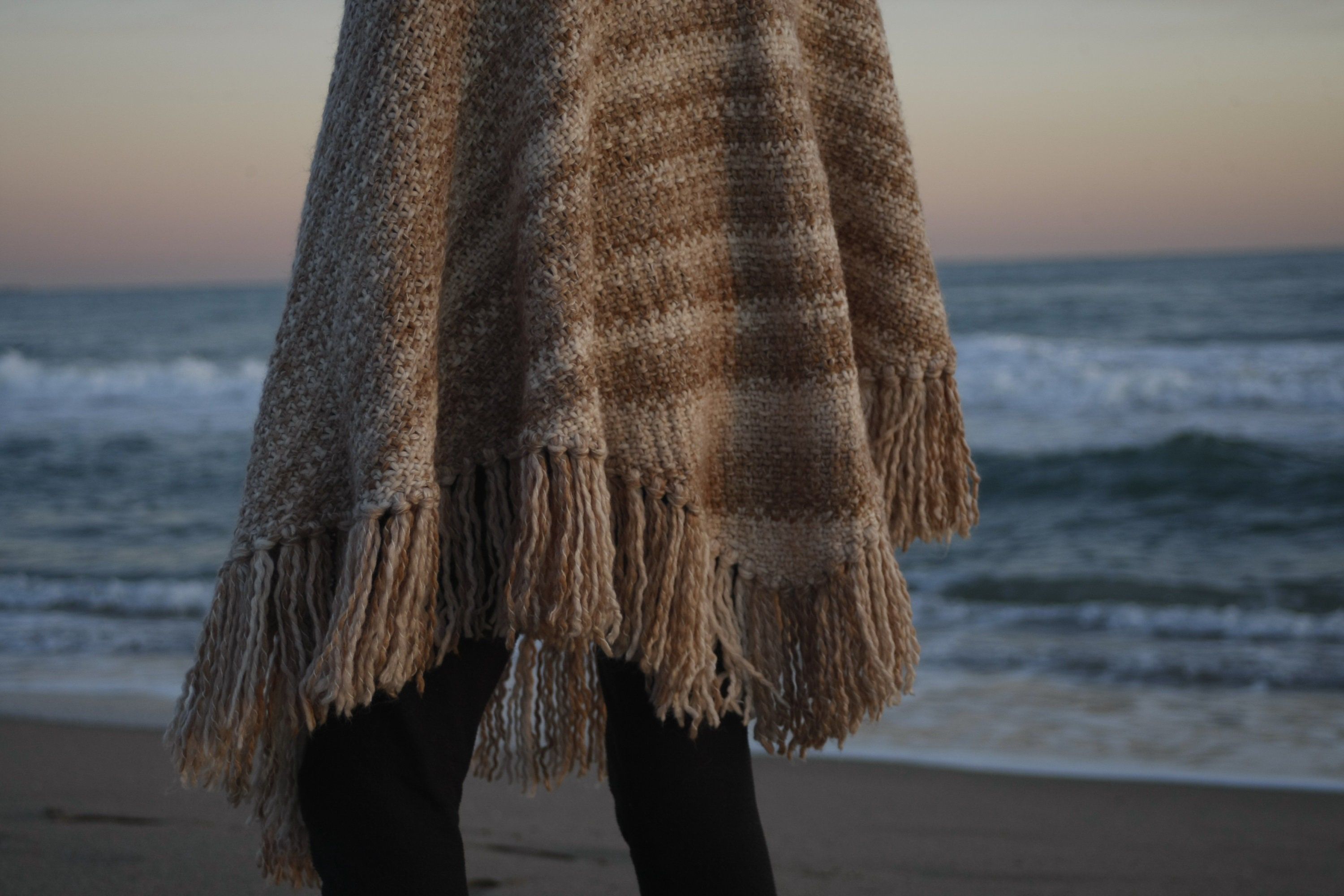 Bellisimo chal envolvente de lana 100% natural en tonalidades de beige en degradee.