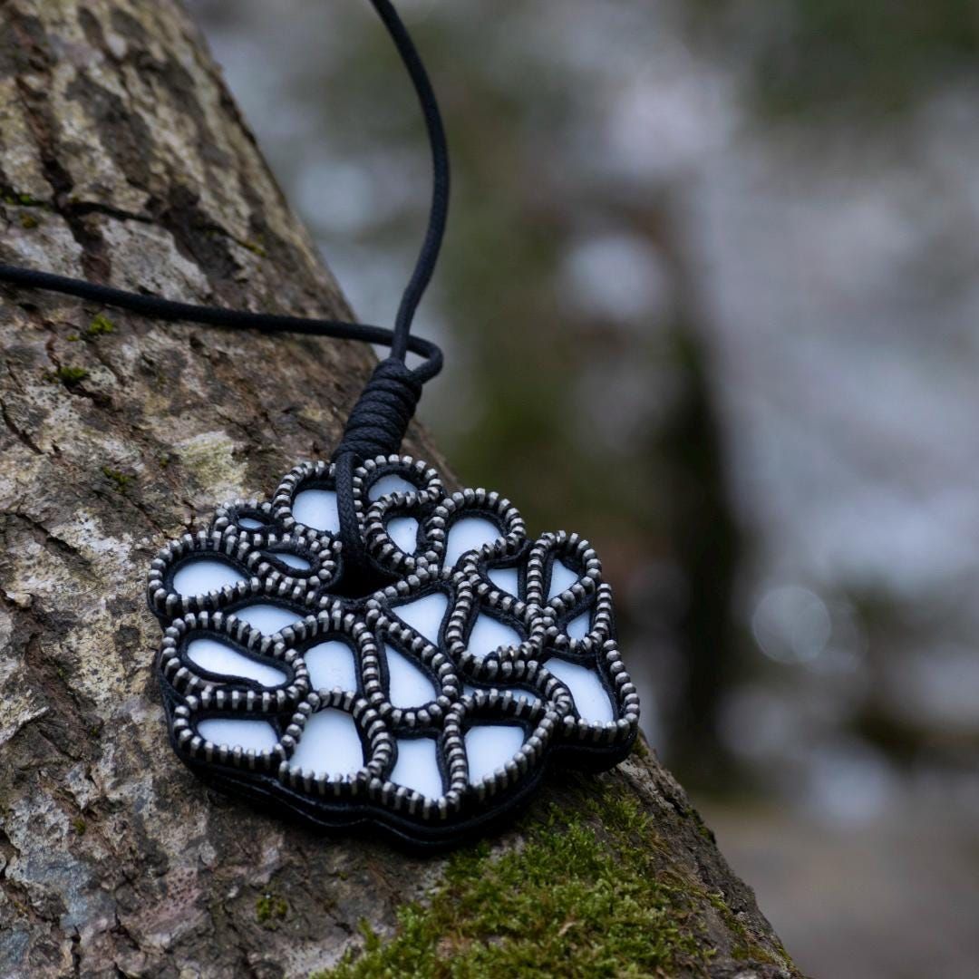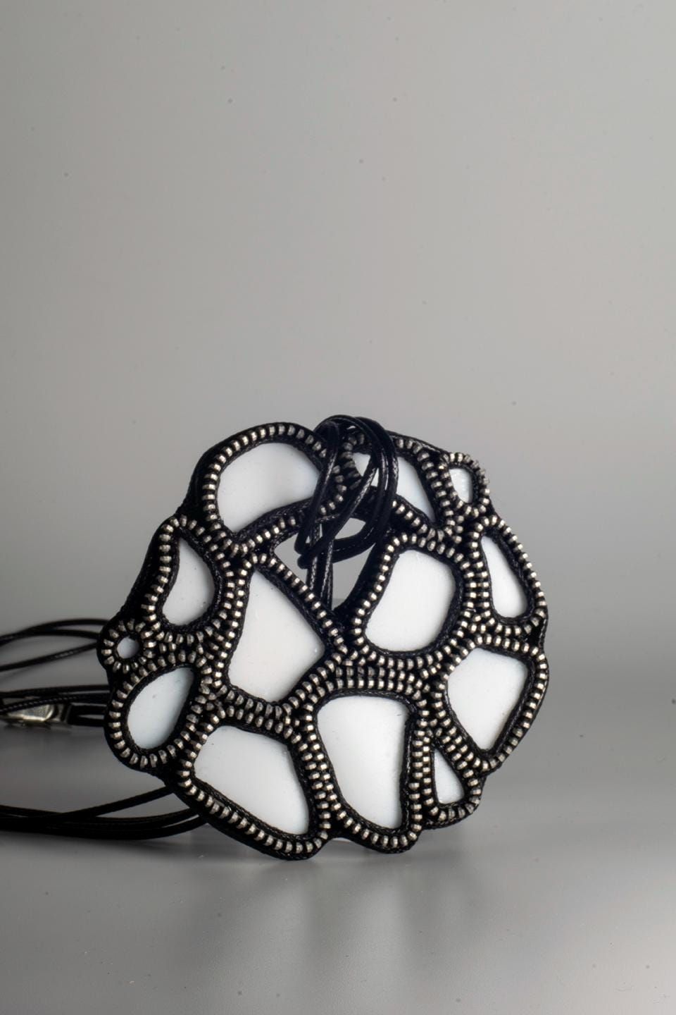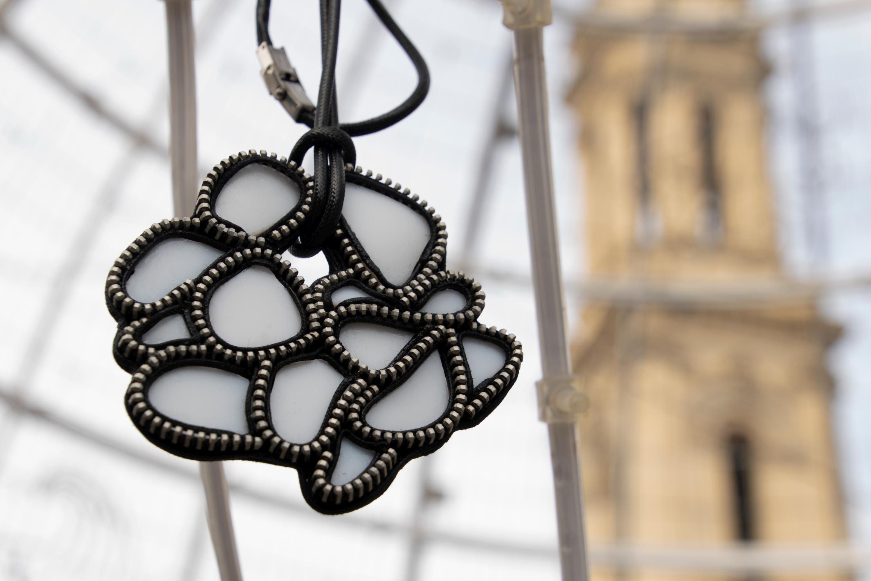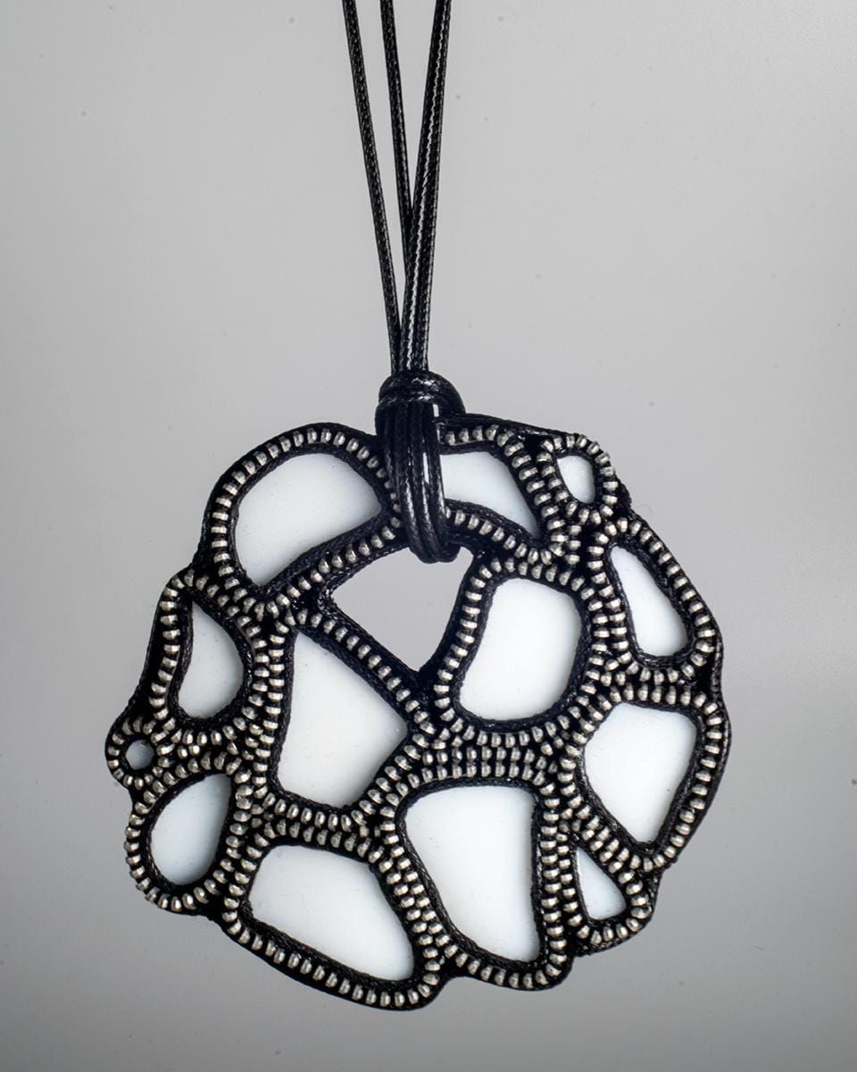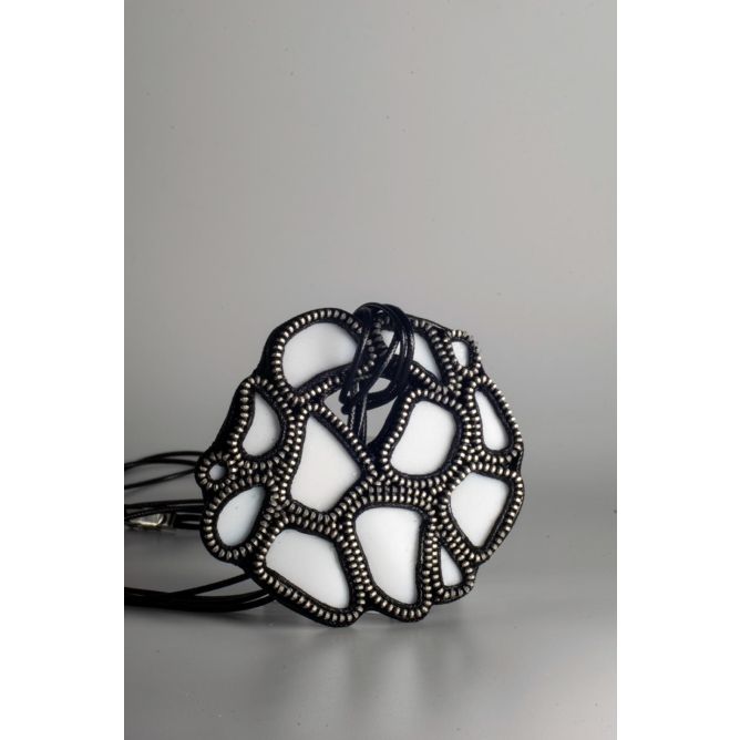 Collar de cremallera con ceramica reciclada, forma circular