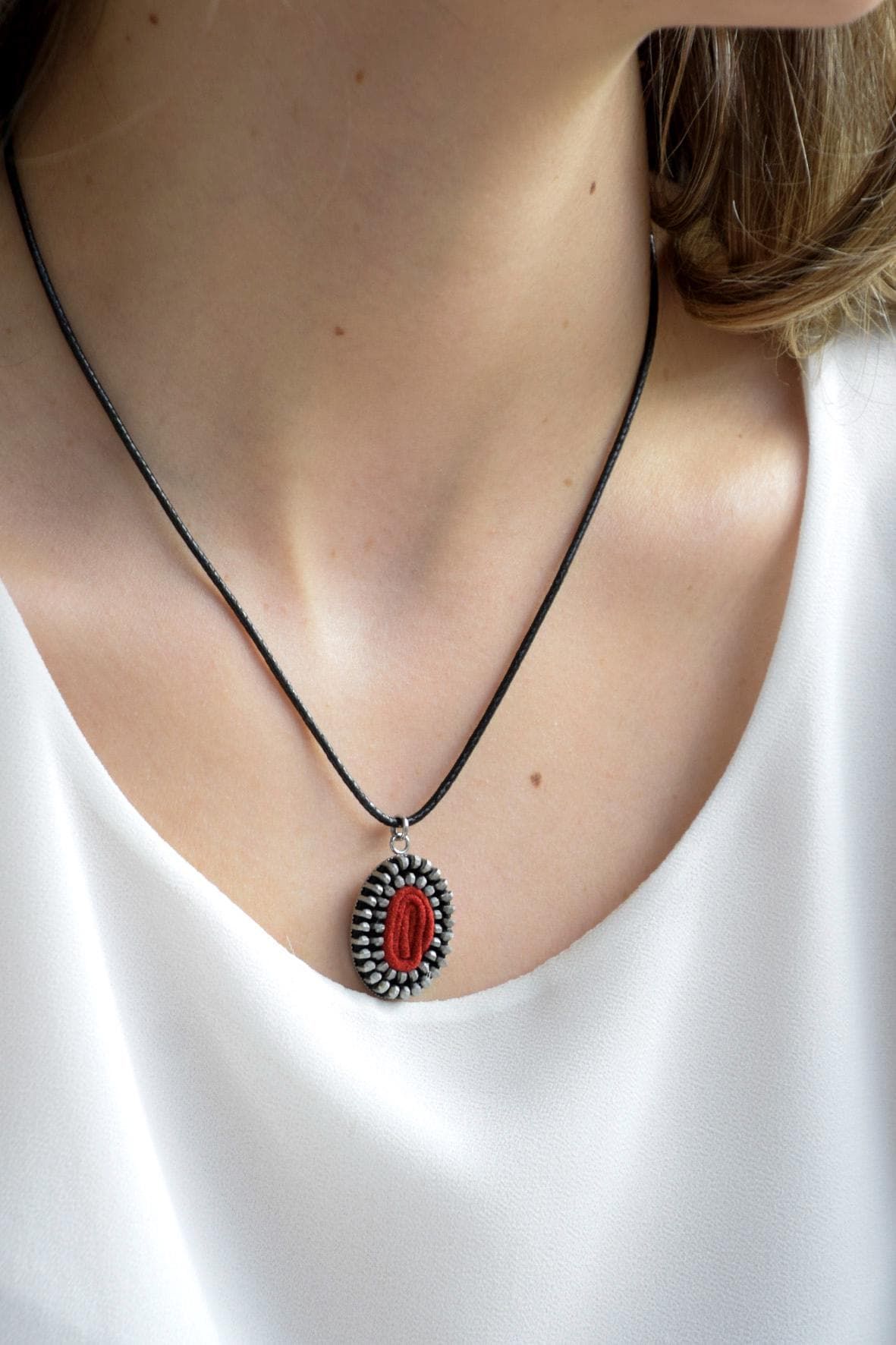 Estás revisando:collar oval de cremallera y piel de serraje rojo dos vueltas