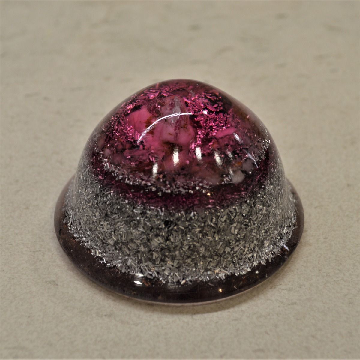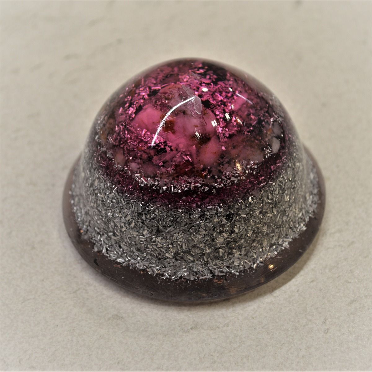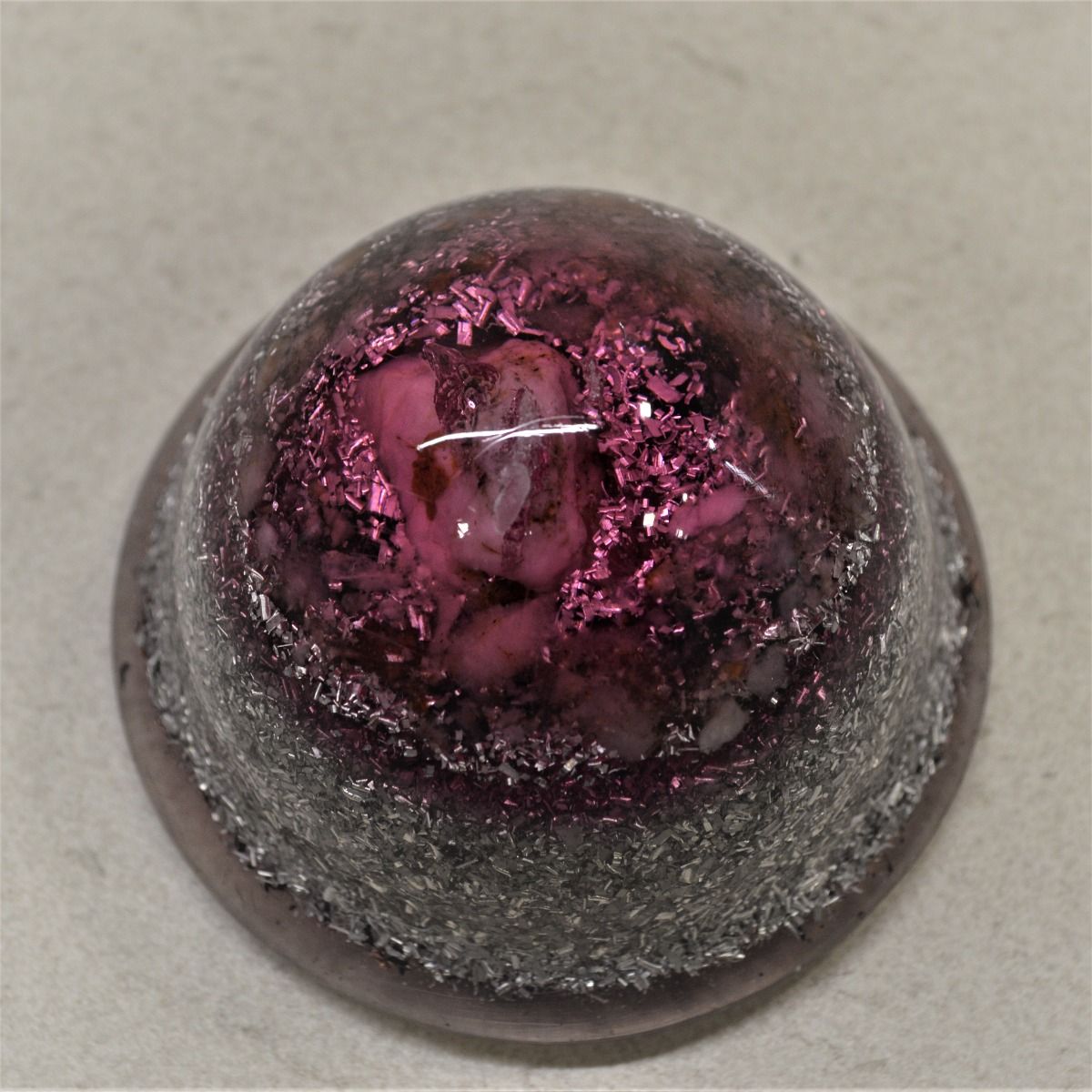 Cono orgonita esférico rosa es un modelo de orgonita compuesto de resina, virutas de metales, cuarzo y shungita. Se trata de un modelo muy potente.
