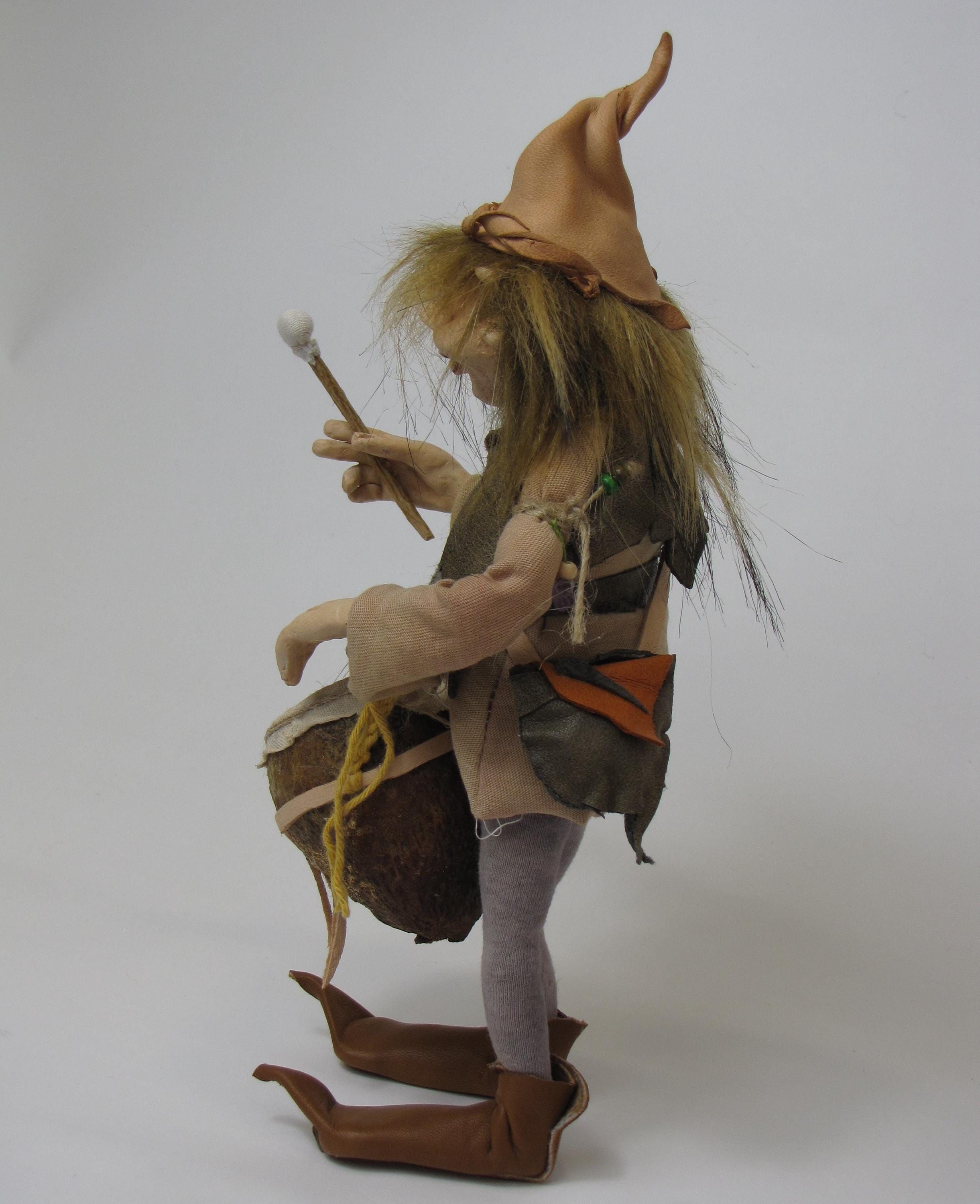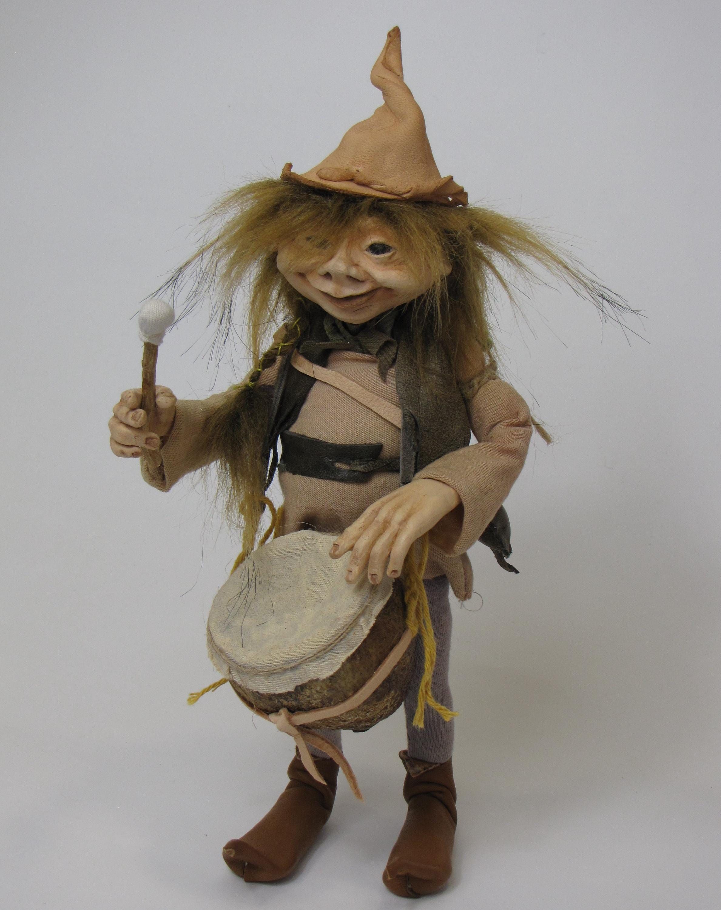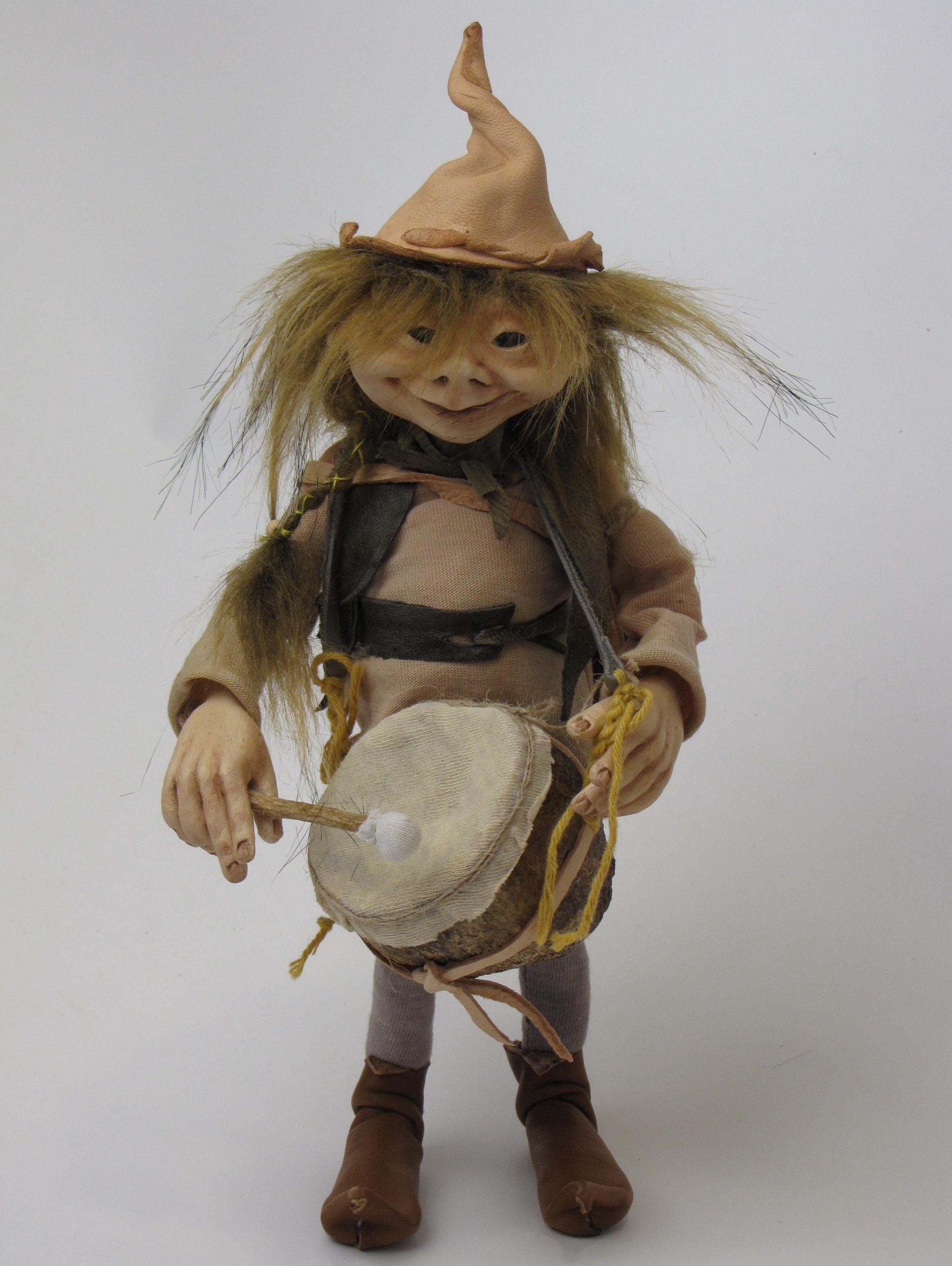 Esta figura esta modelada a mano en papel mache , sus manos y orejas modeladas con arcilla polimerica flexible , lo que le permite tomar los accesorios ,sin riesgo de que se quiebren sus deditos