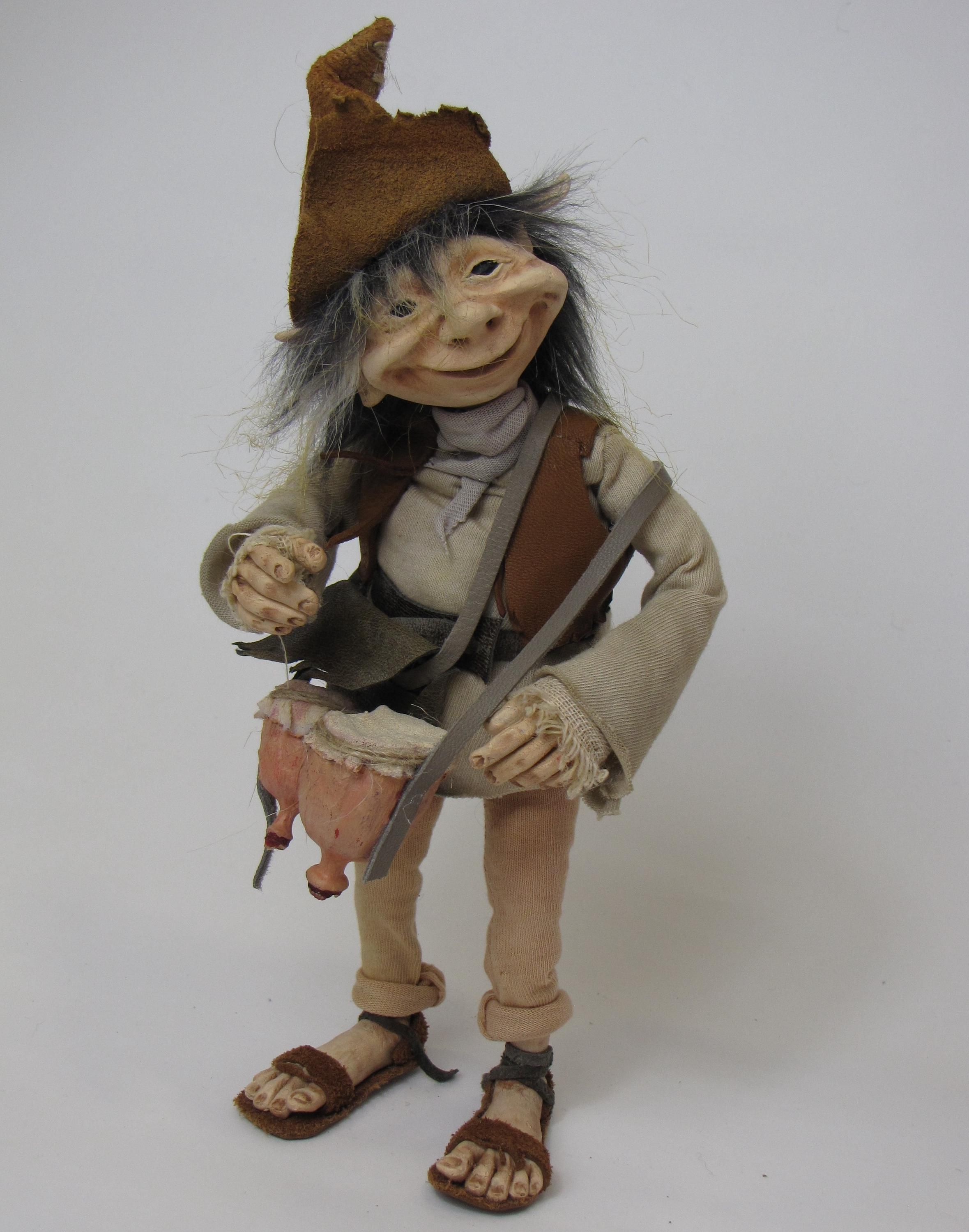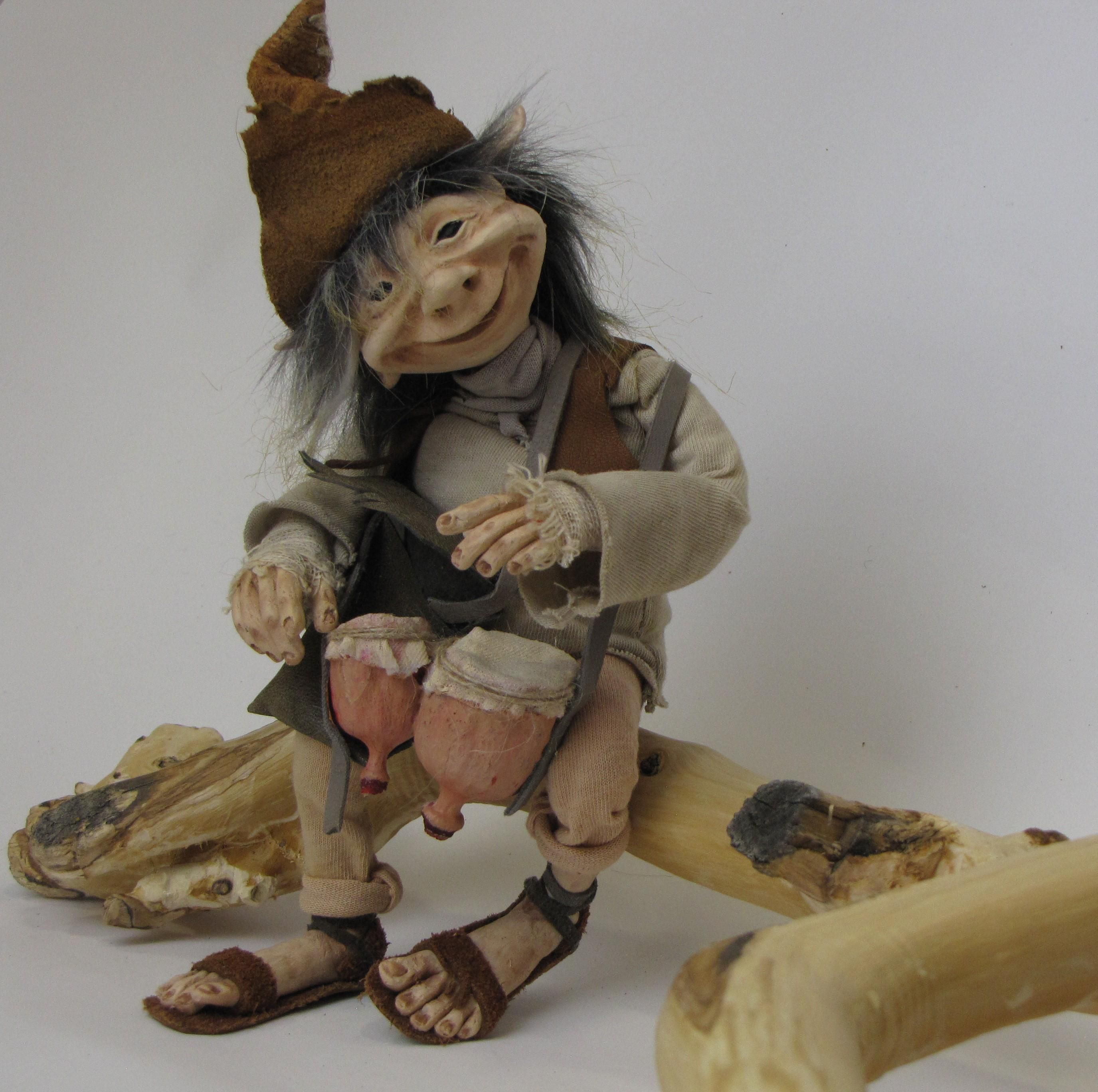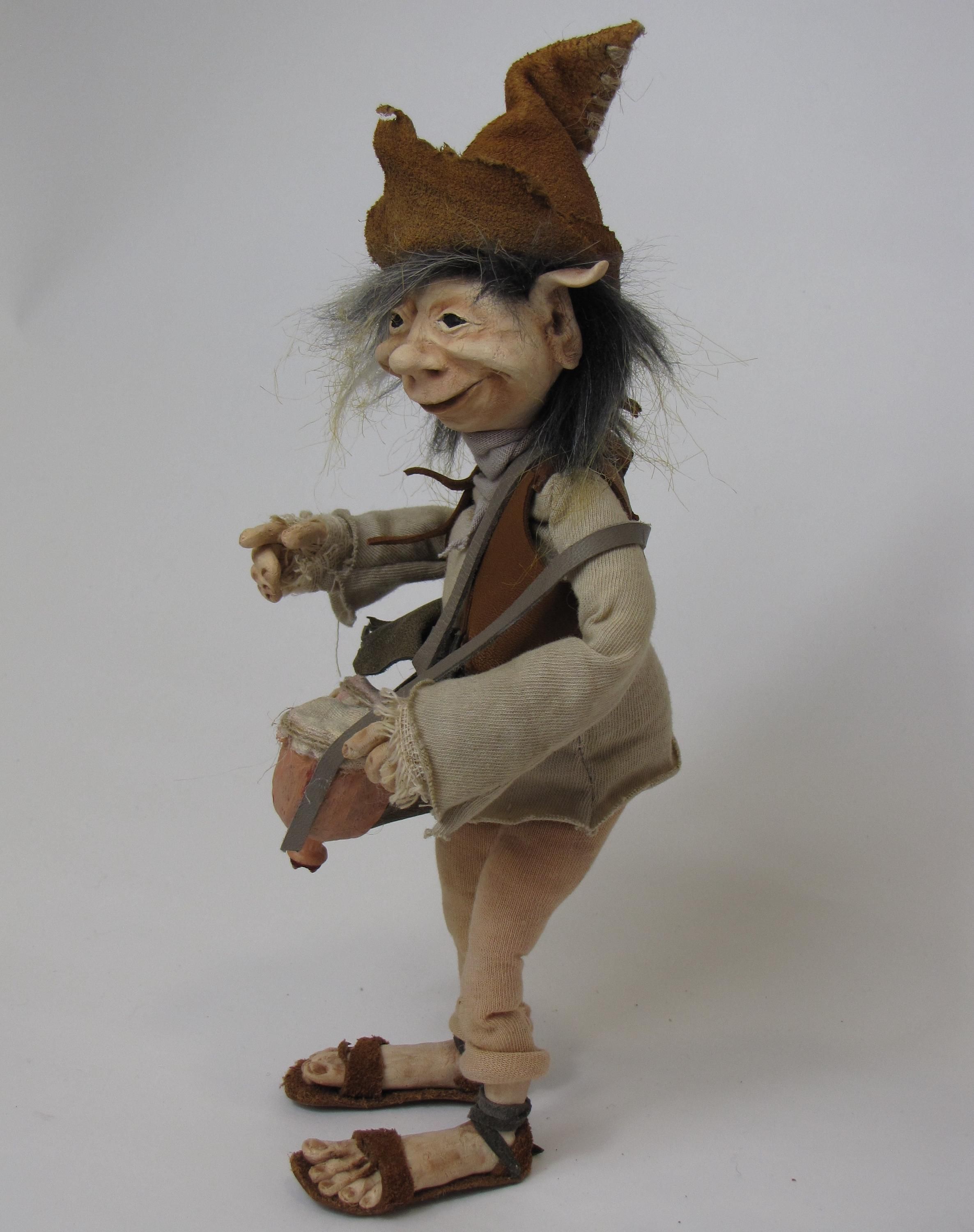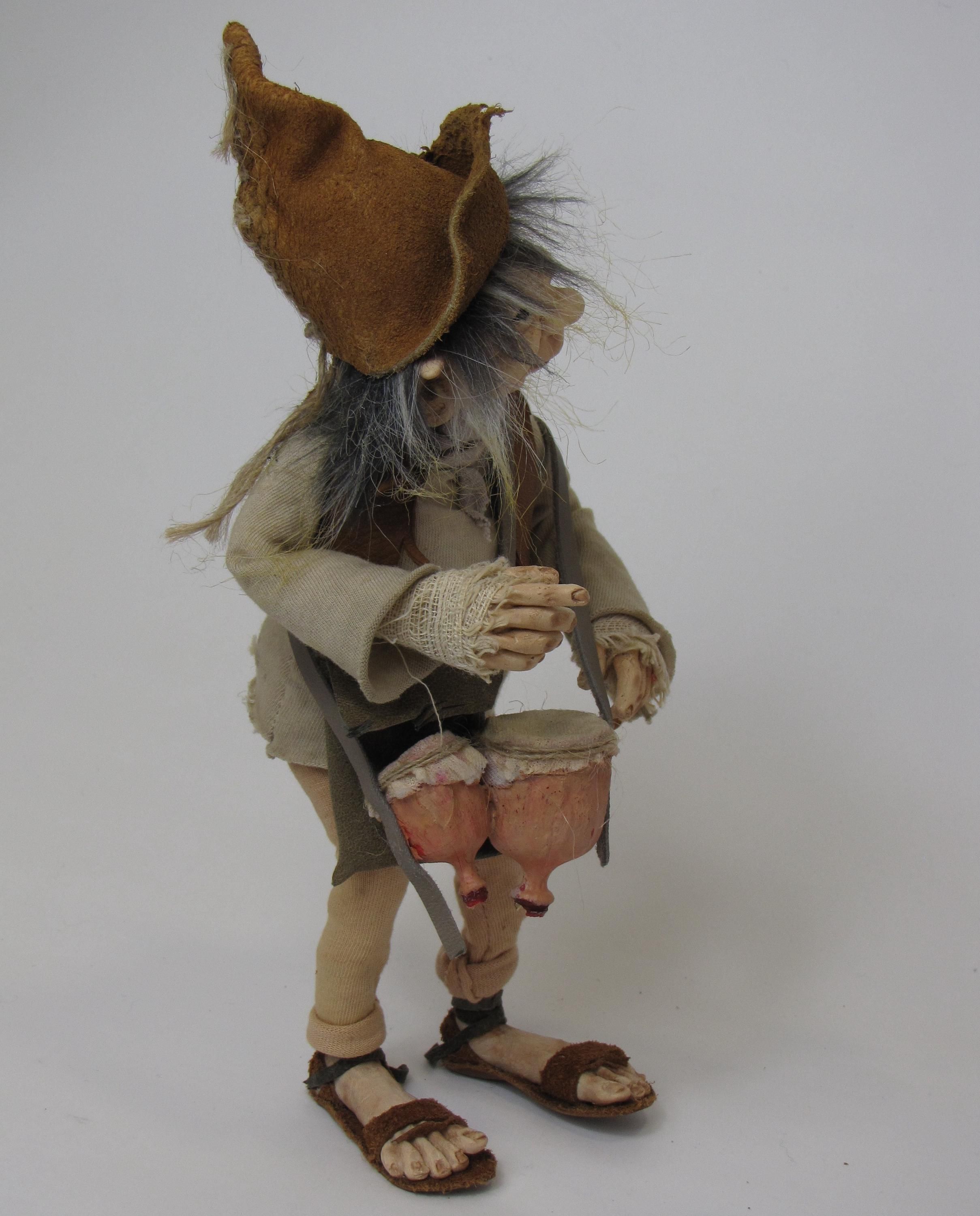Esta figura esta modelada a mano en papel mache , sus manos y orejas modeladas con arcilla polimerica flexible , lo que le permite tomar los accesorios ,sin ries go de que se quiebren sus deditos