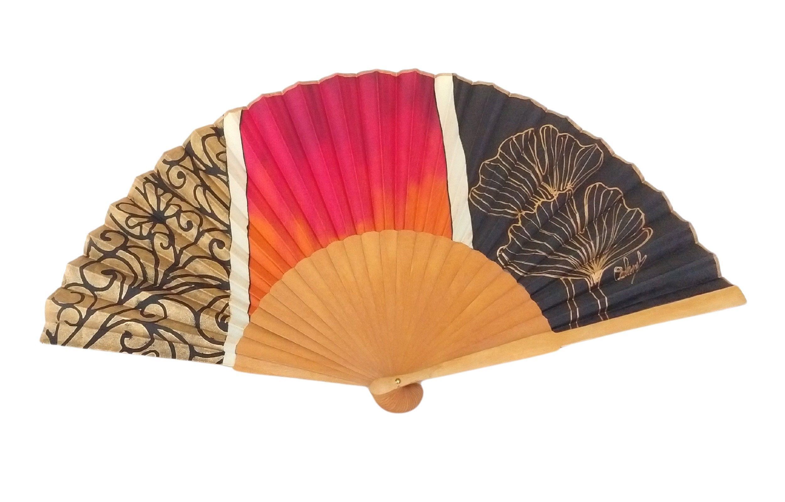 ·Pintado a mano individualmente en seda 100 % natural: no hay dos abanicos iguales, lo que convierte a cada pieza en un auténtico objeto de colección.