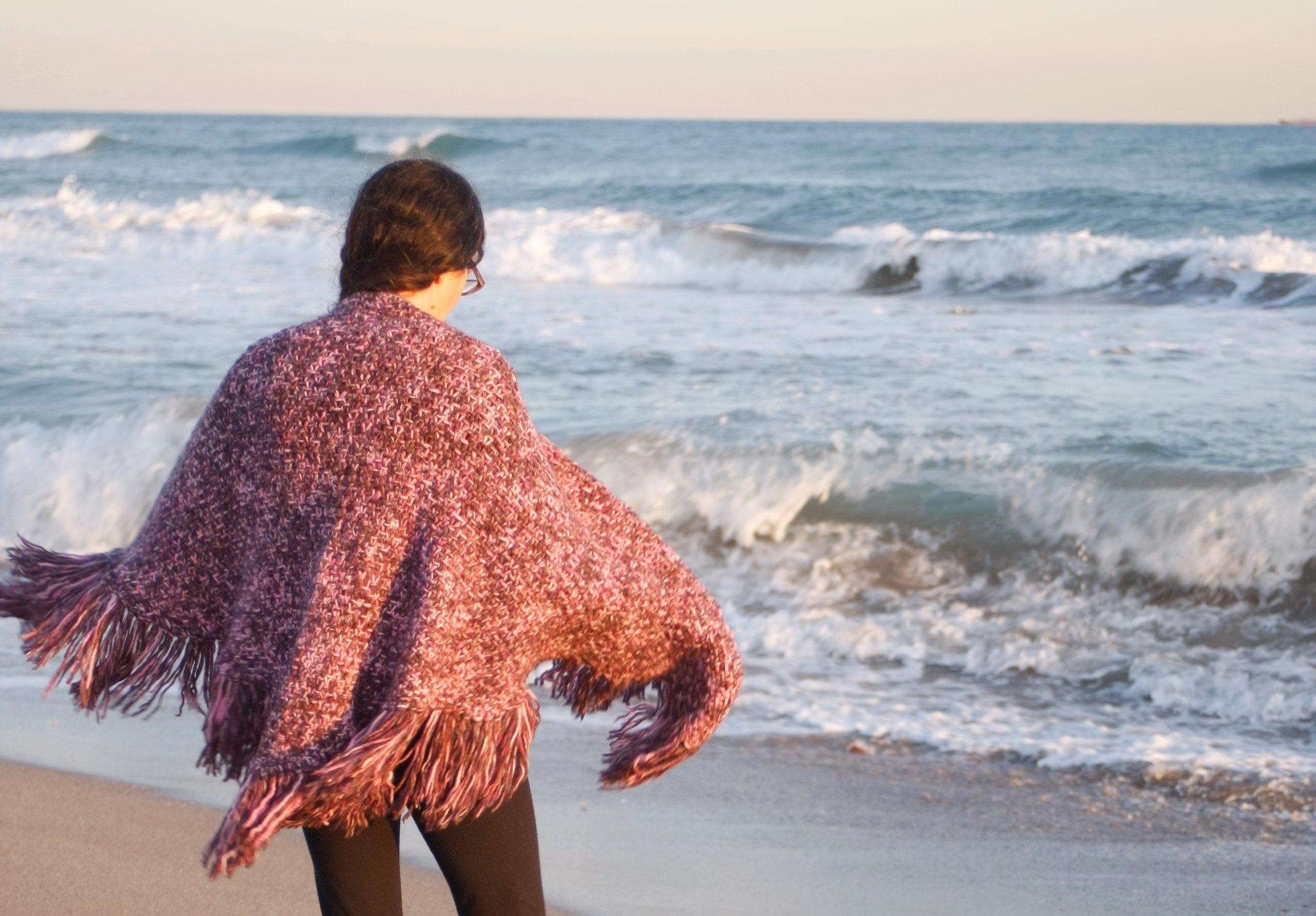 | Materials | Maravilloso chal tejido a mano con lana Merino en tonalidades morado |