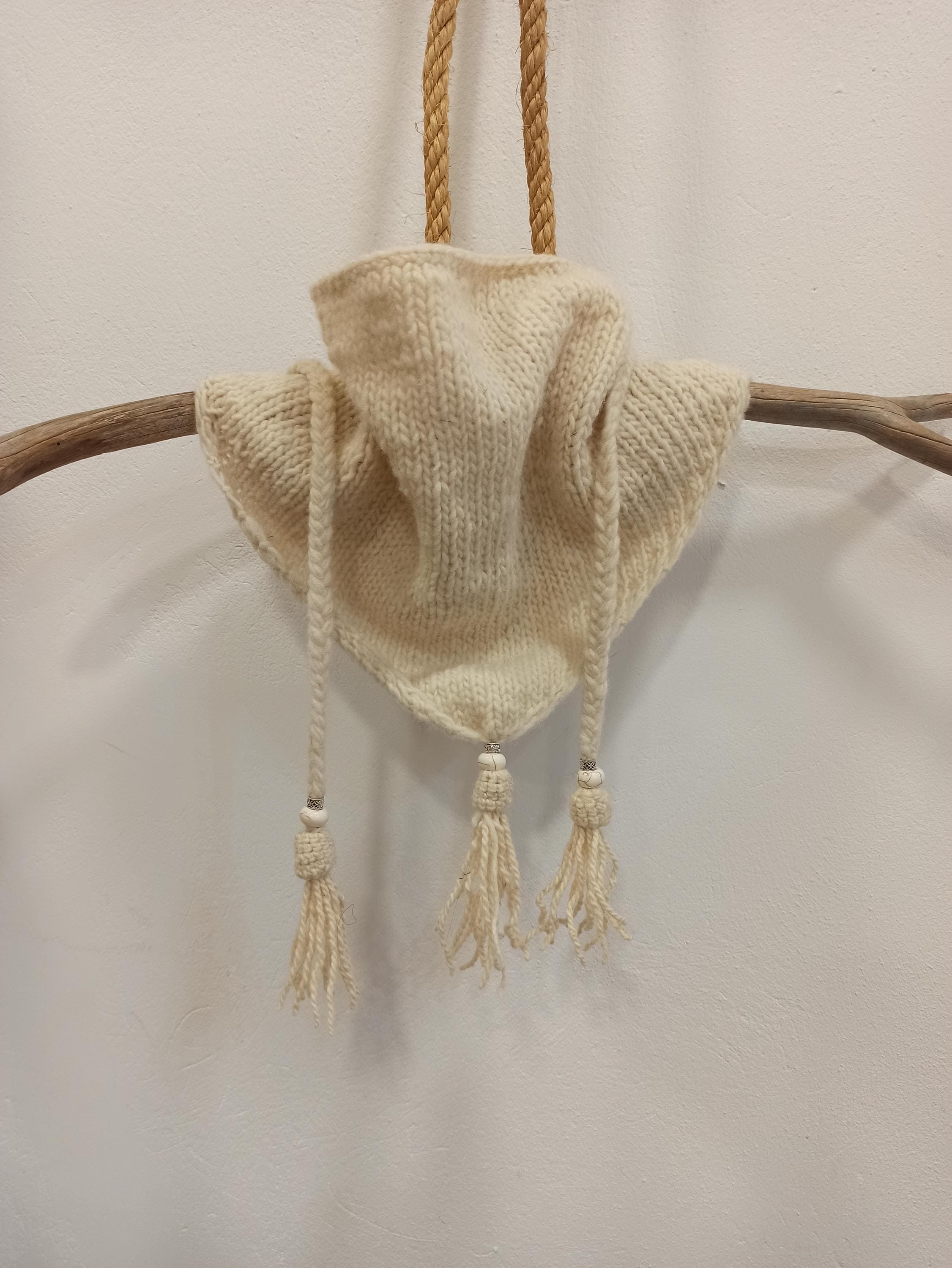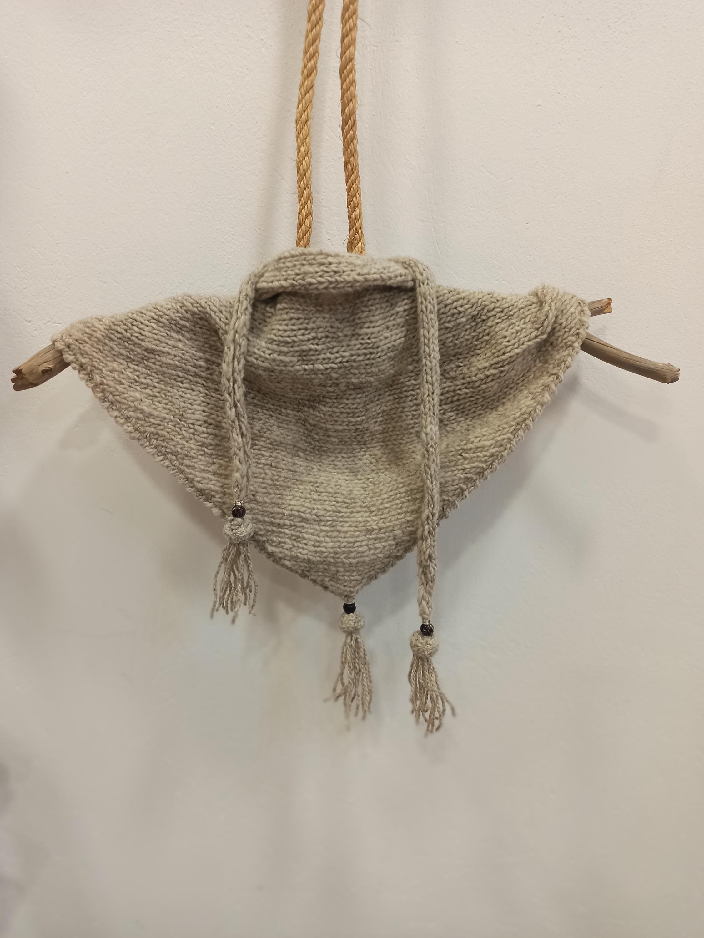 Mini chal de Lana Merino, Pañuelo triangular tejido a mano,bufanda triangular, moda sostenible, moda boho