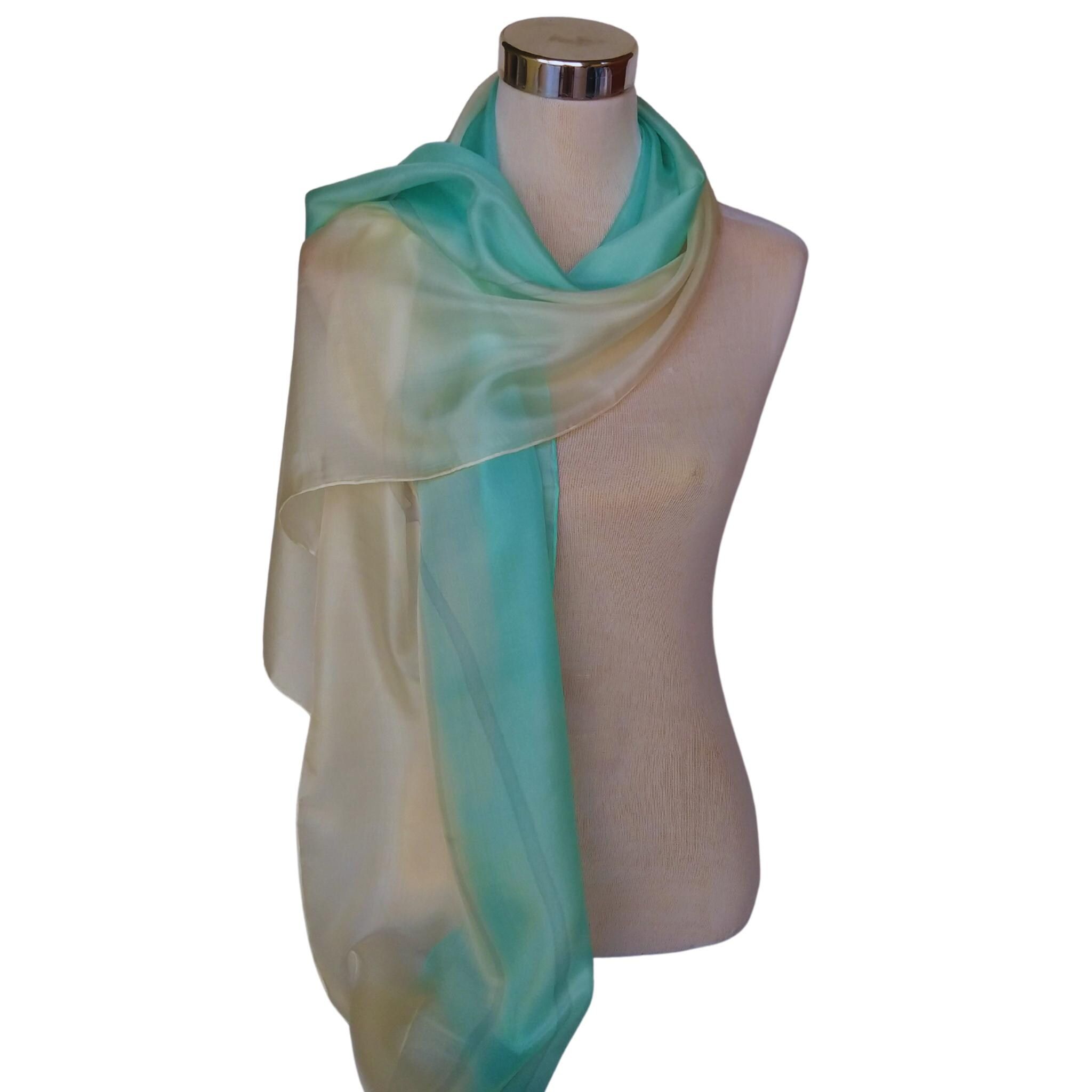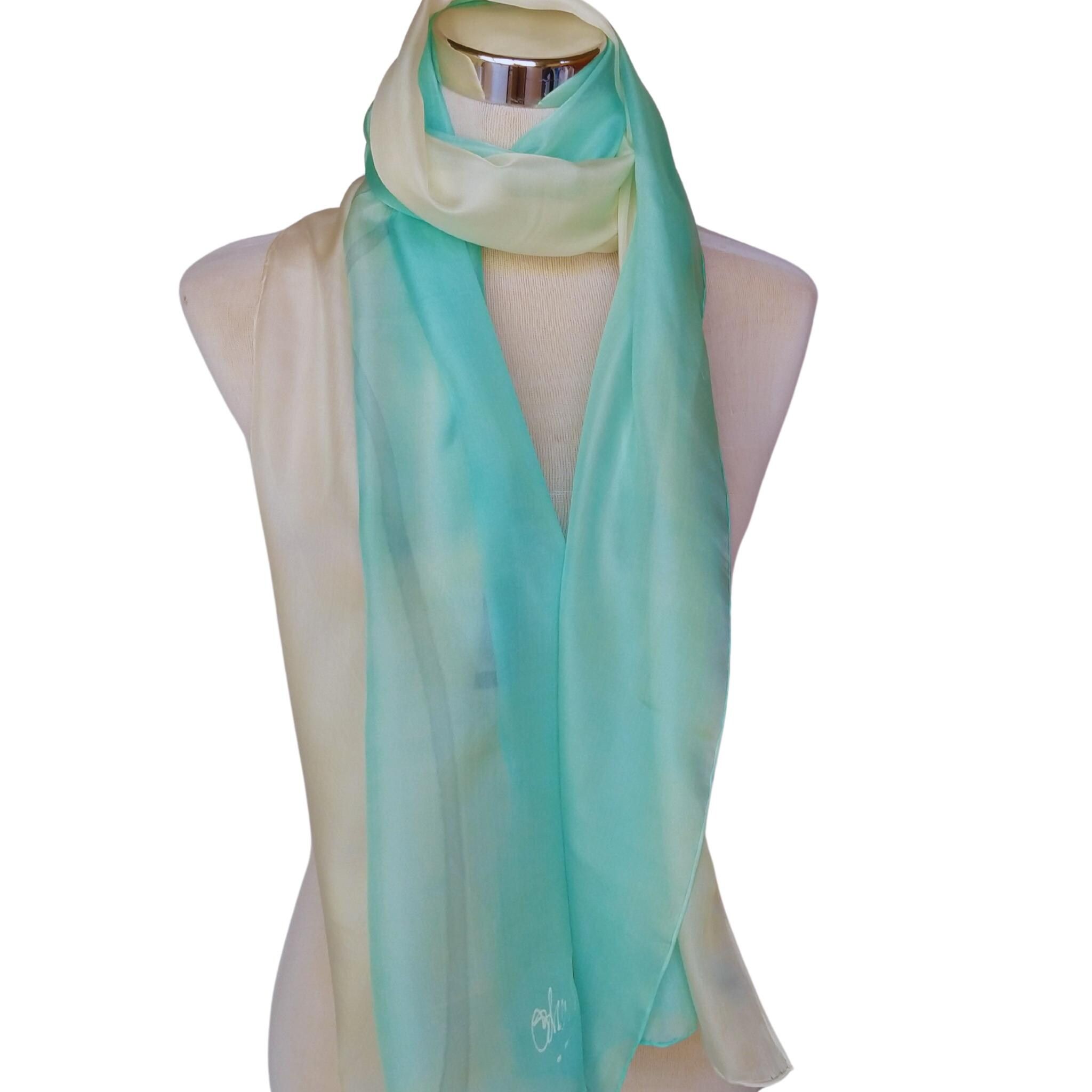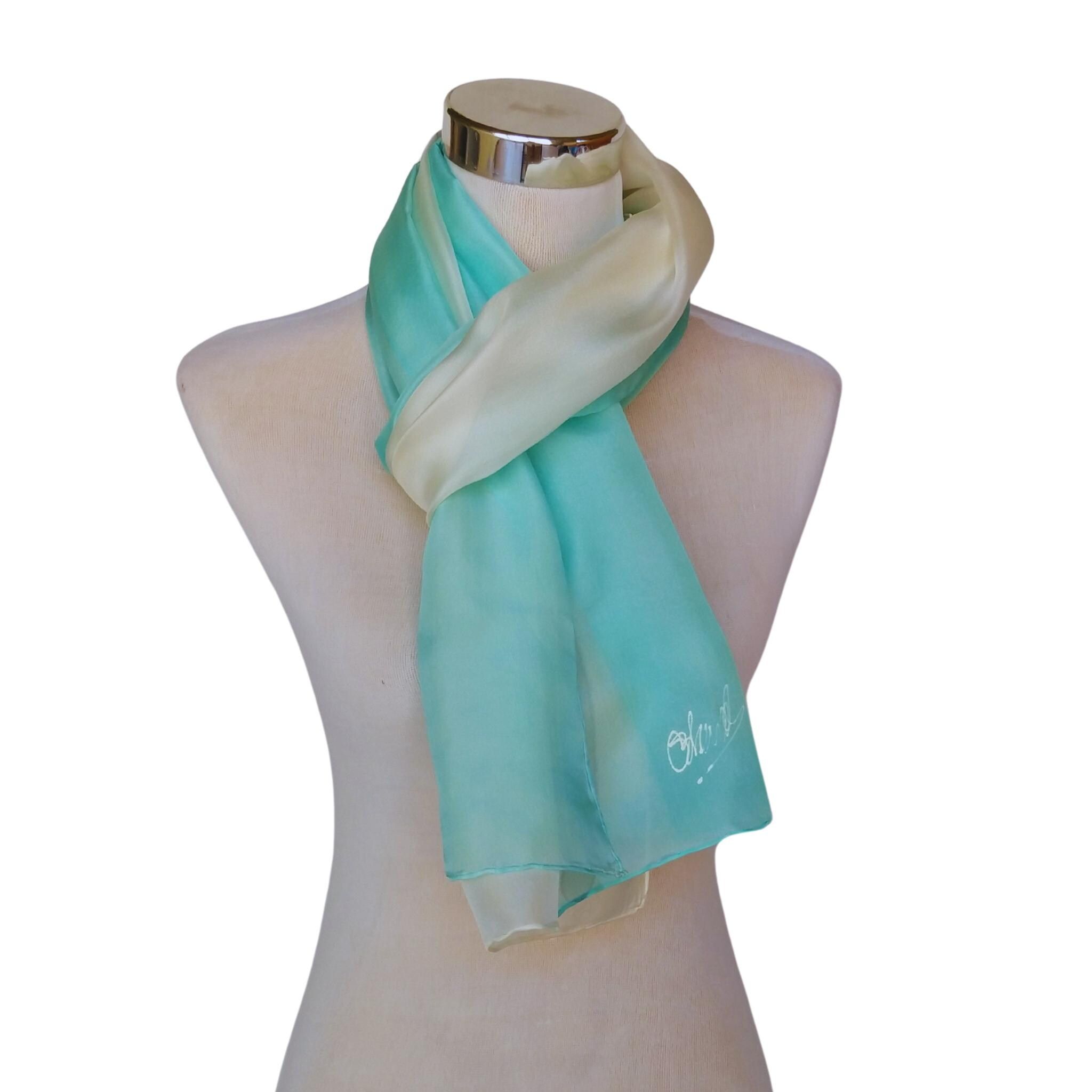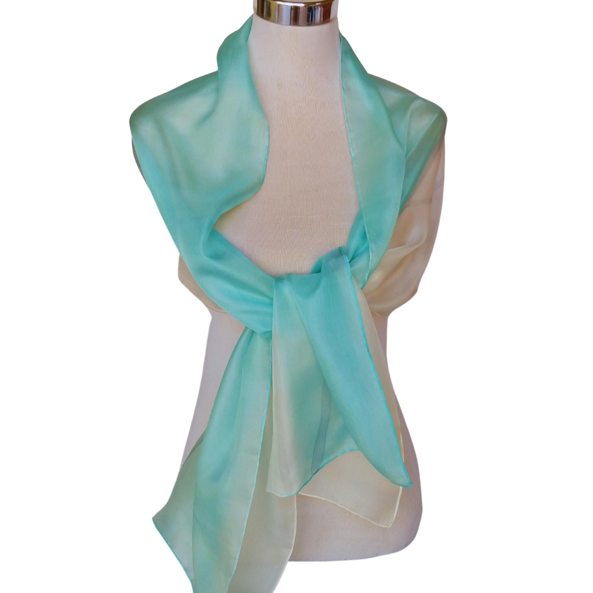 Pañuelo de seda turquesa pintado a mano: elegante chal habotai