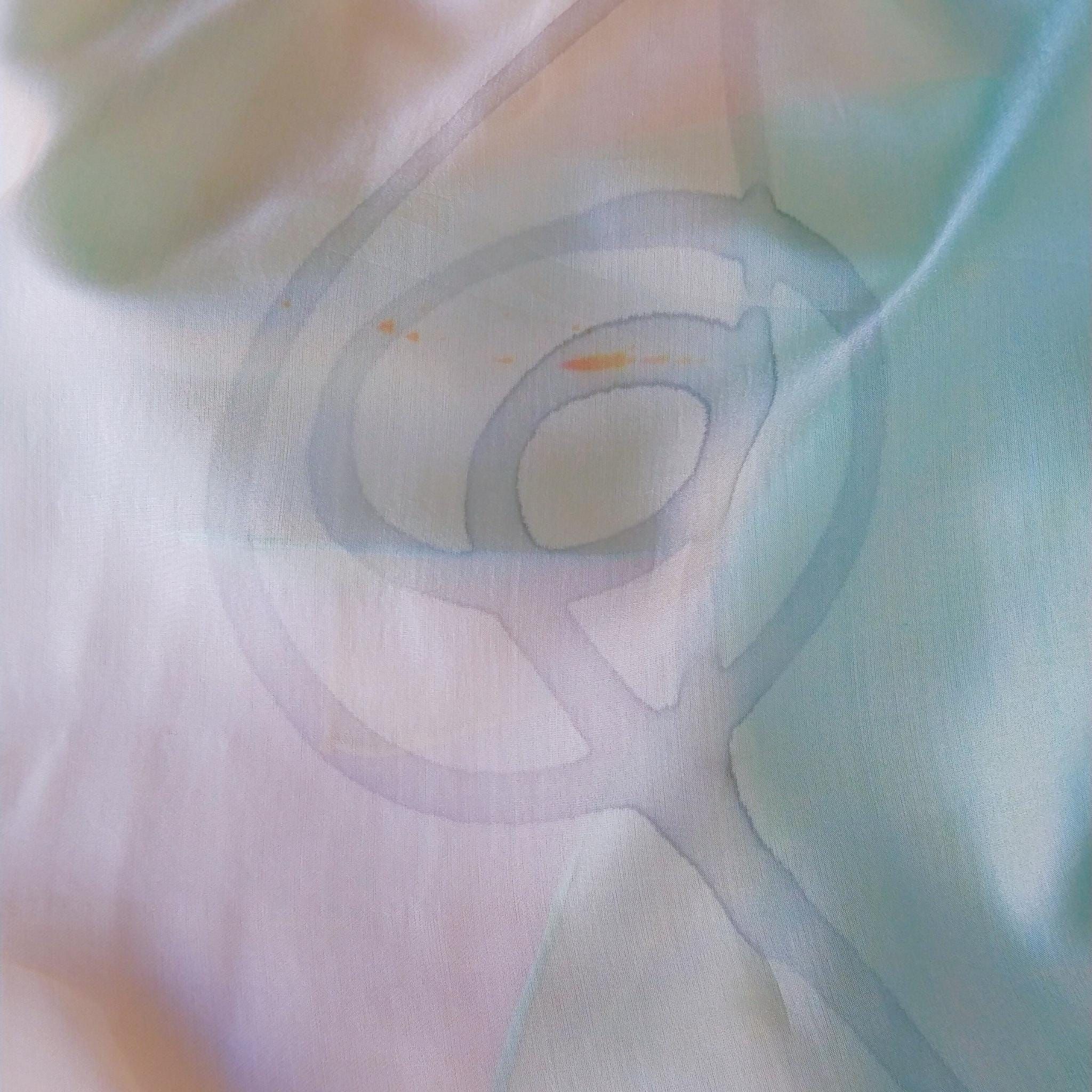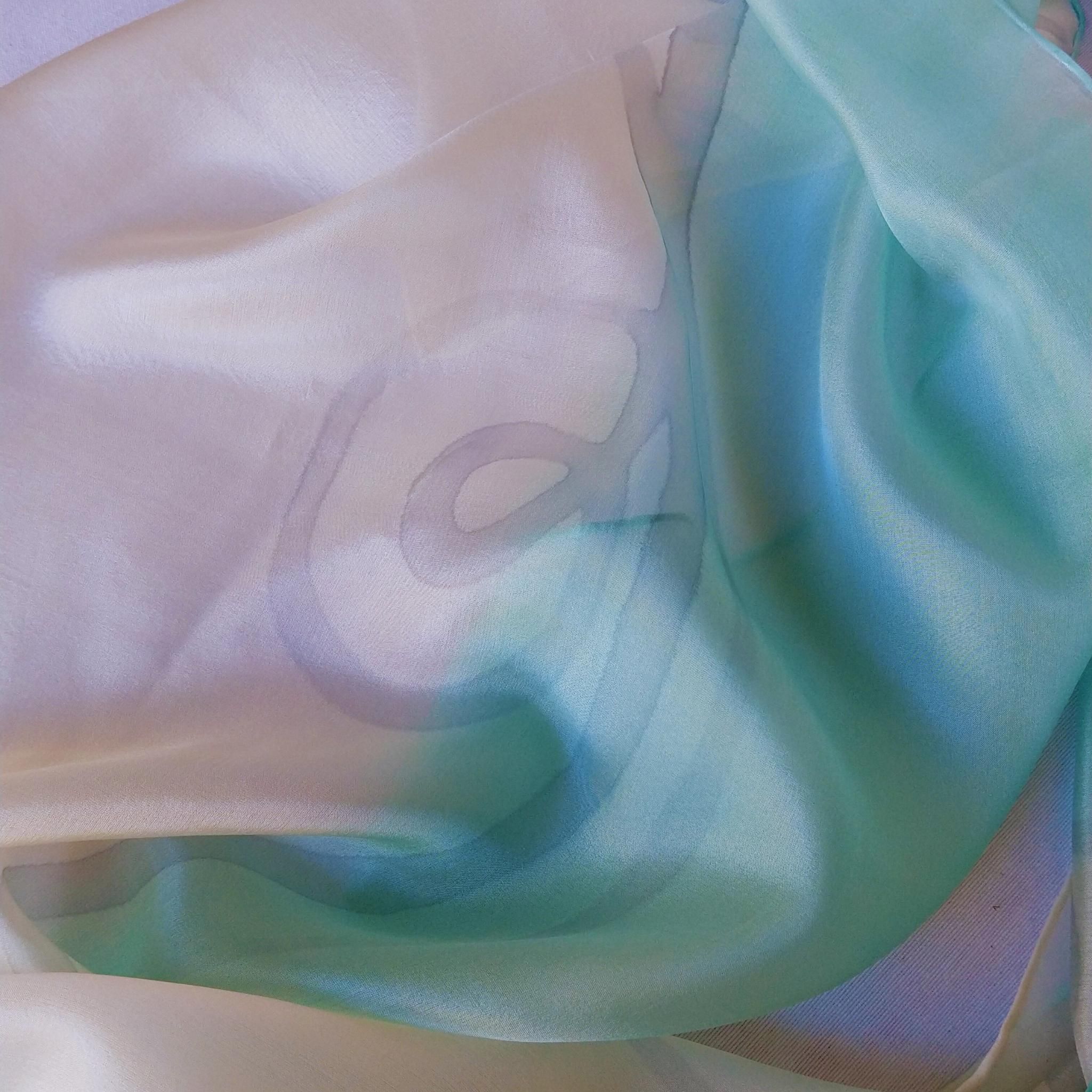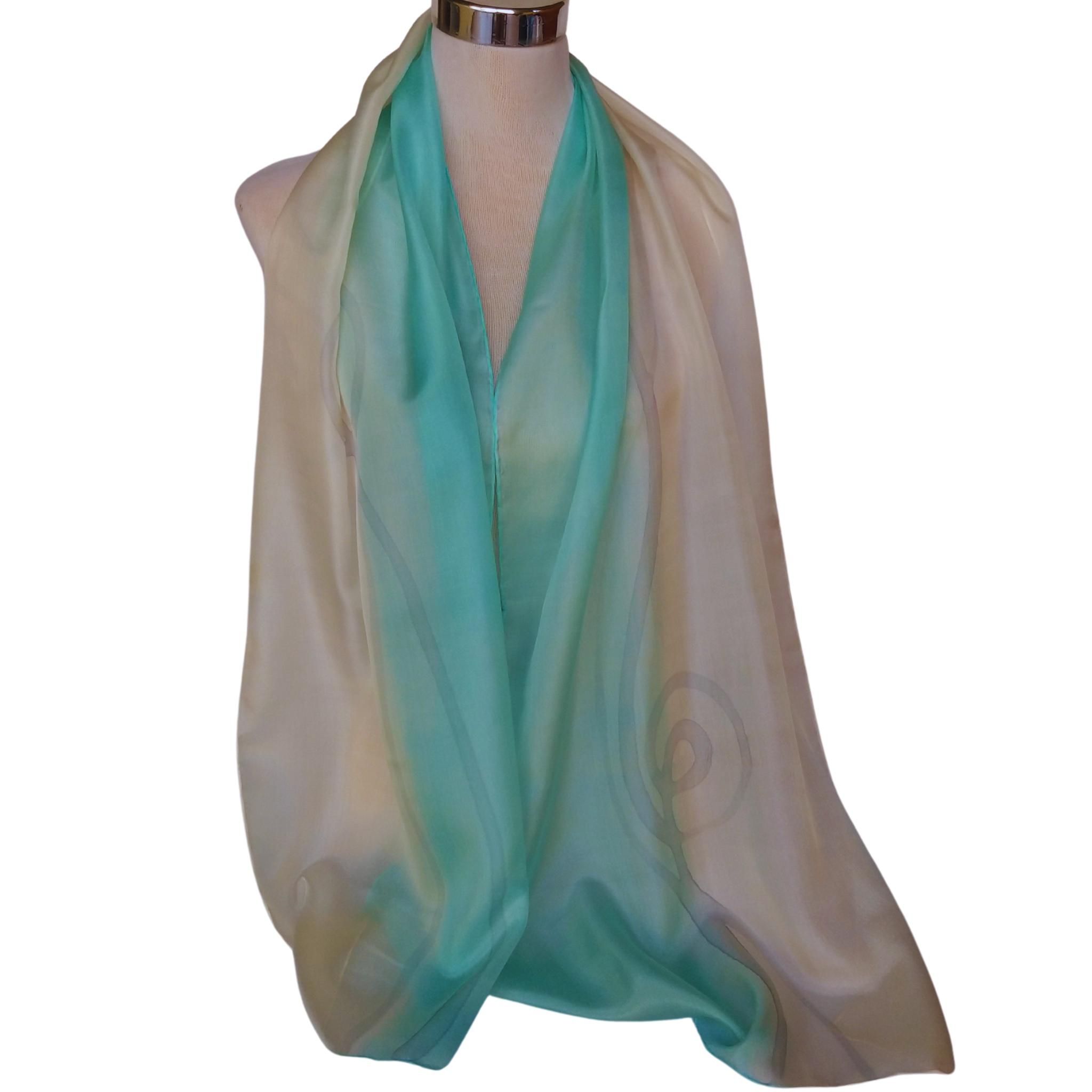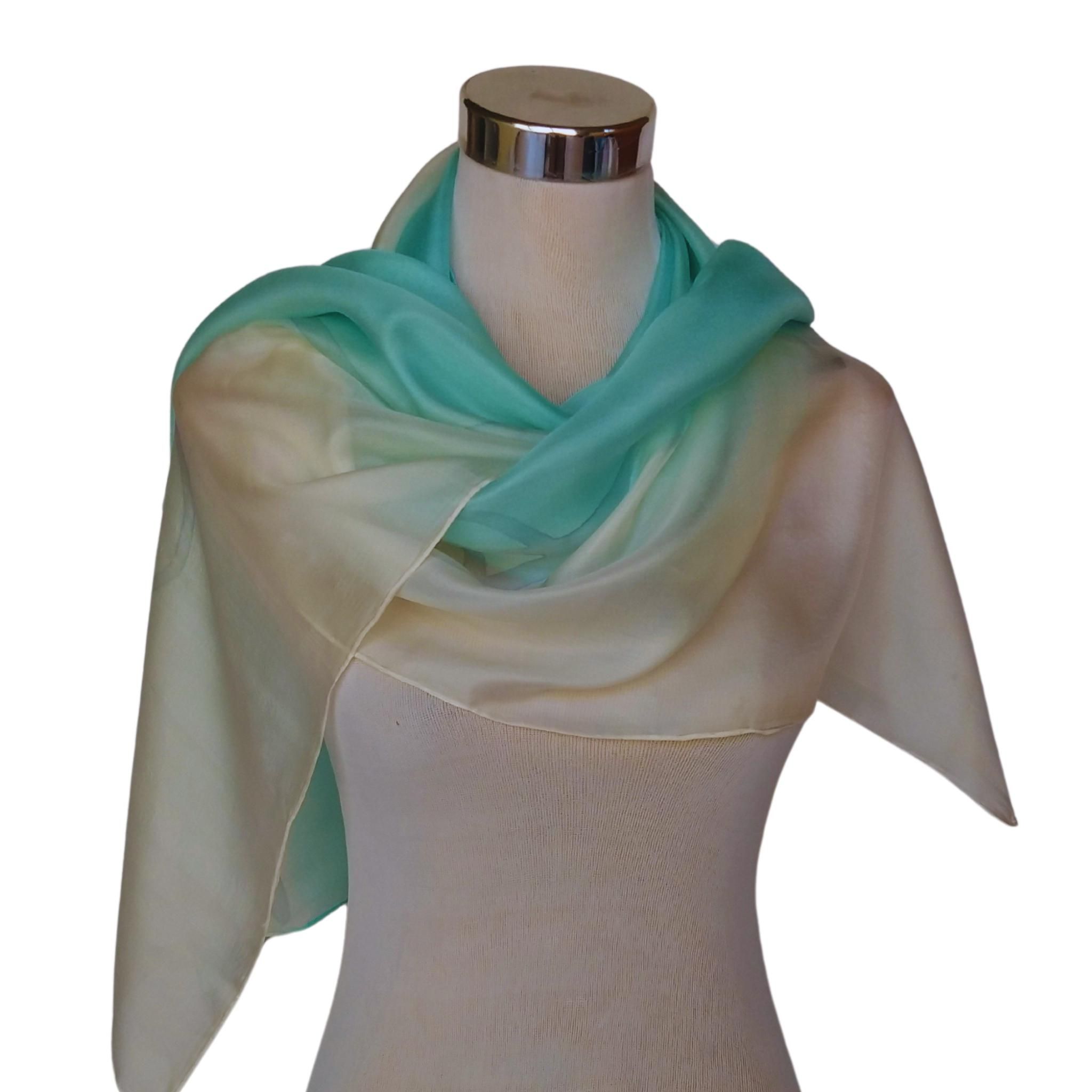Pañuelo de seda turquesa pintado a mano: elegante chal habotai