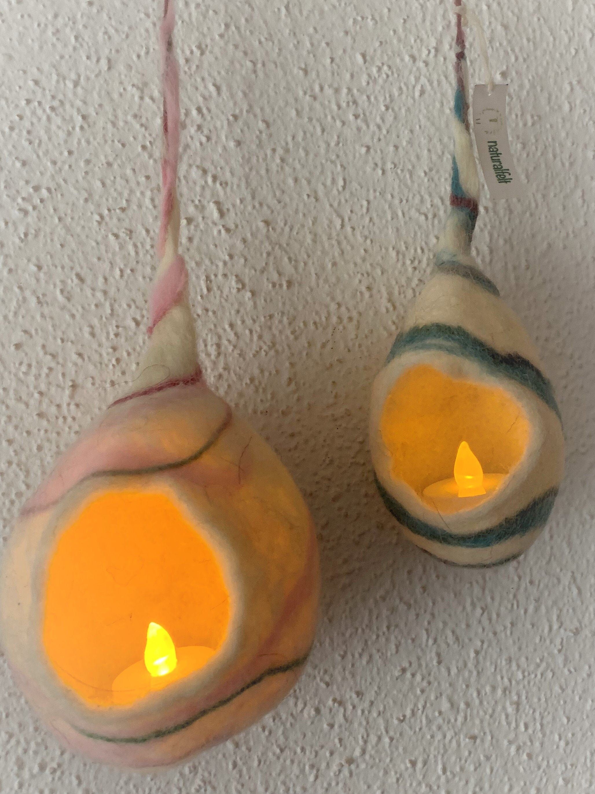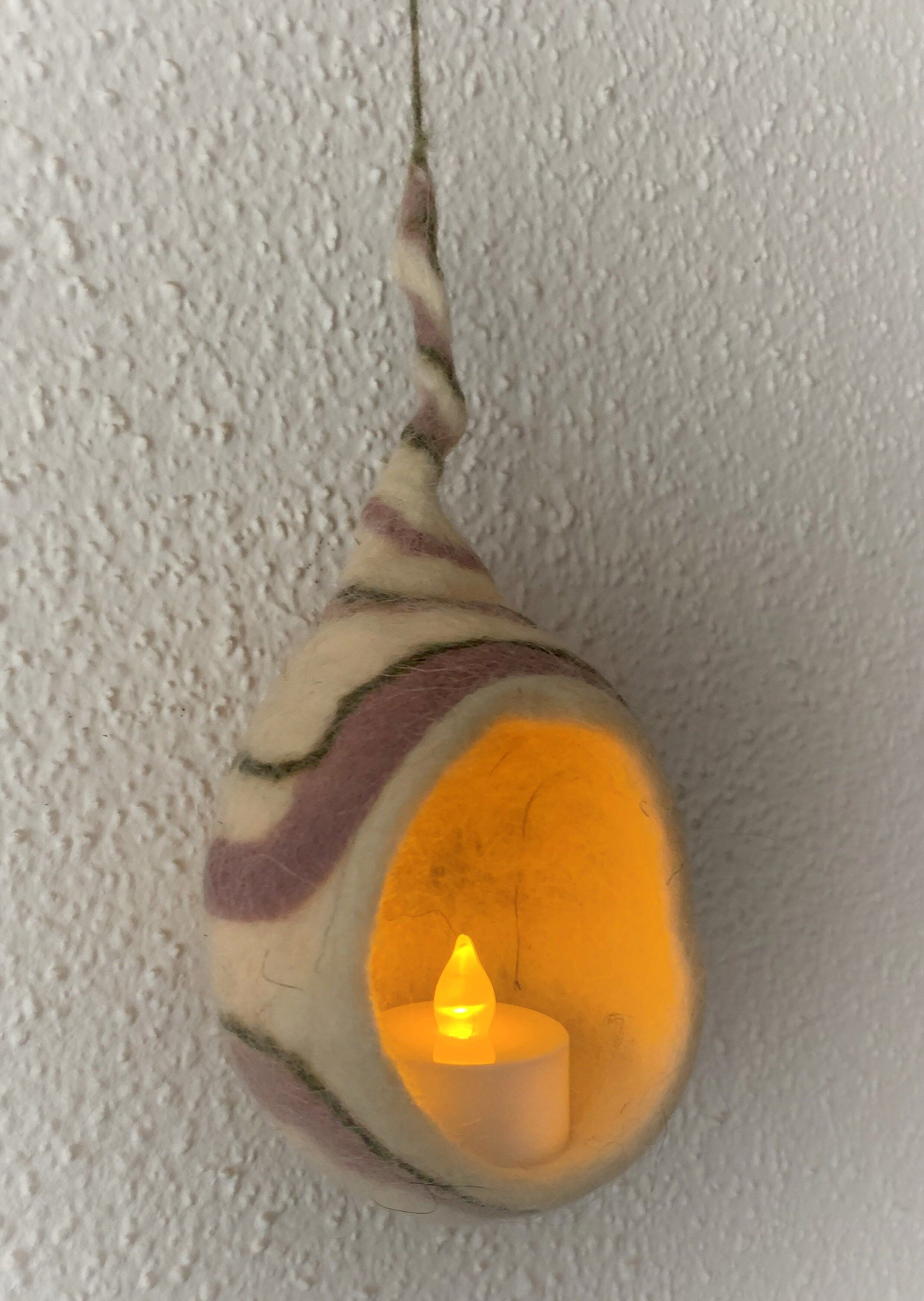 Nido de luz hecho en fieltro con lana de las Islas Baleares. Medidas aproximadas 17cm x 8cm x 8cm. Cada pieza es única y está hecha a mano usando los tradicionales métodos de afieltrado de lana. (incluye vela led)