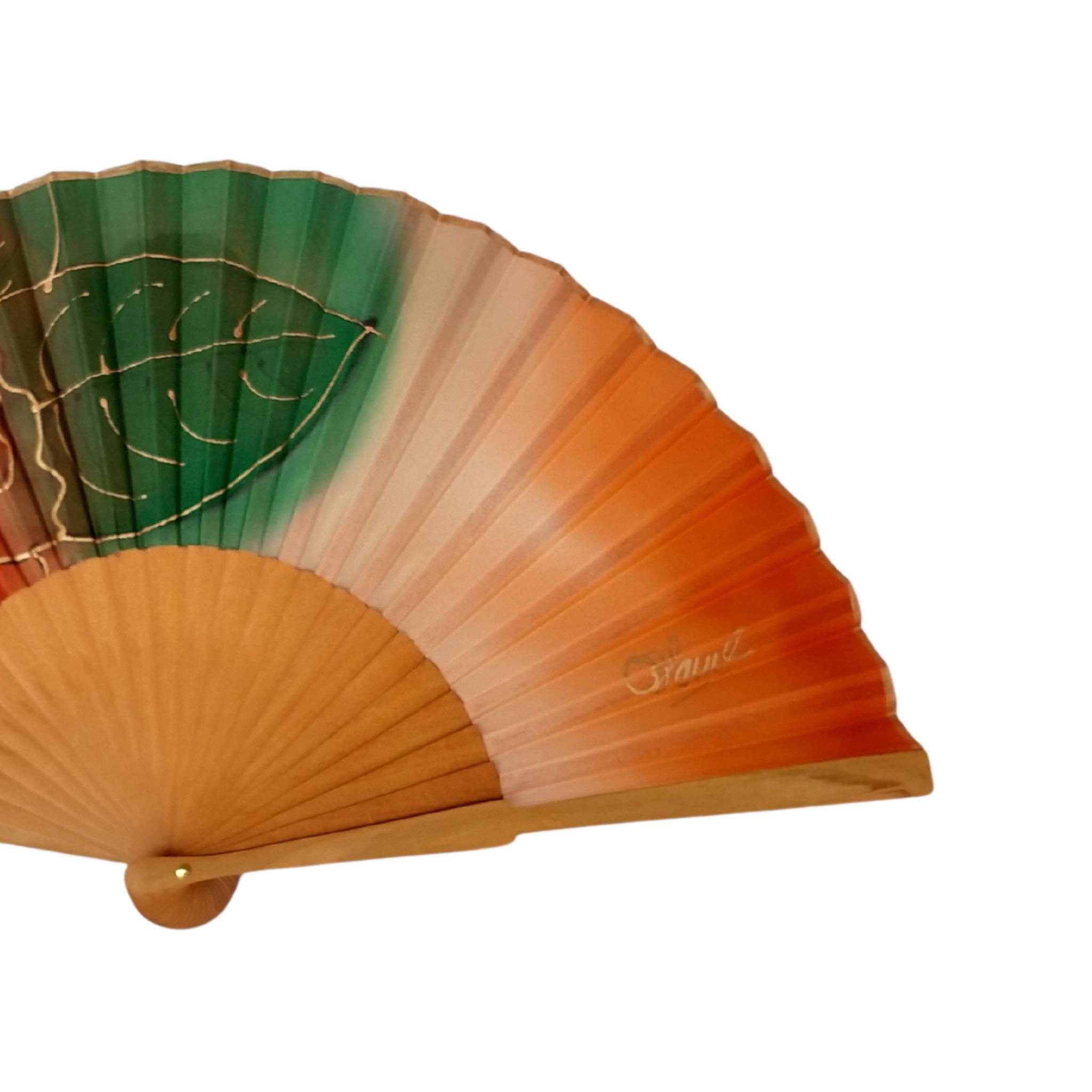Éventail en soie peint à la main – Éventail pliant espagnol dans les tons terre cuite et vert dégradé avec boîte cadeau