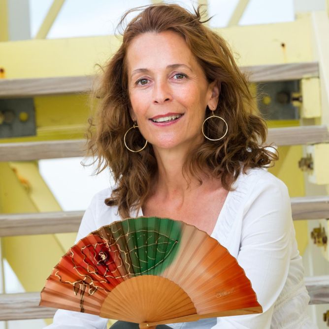 Conçu pour les femmes sophistiquées qui apprécient les accessoires exclusifs peints à la main, cet éventail est fonctionnel et élégant : idéal pour les mariages, les sorties estivales ou comme objet de collection élégant.