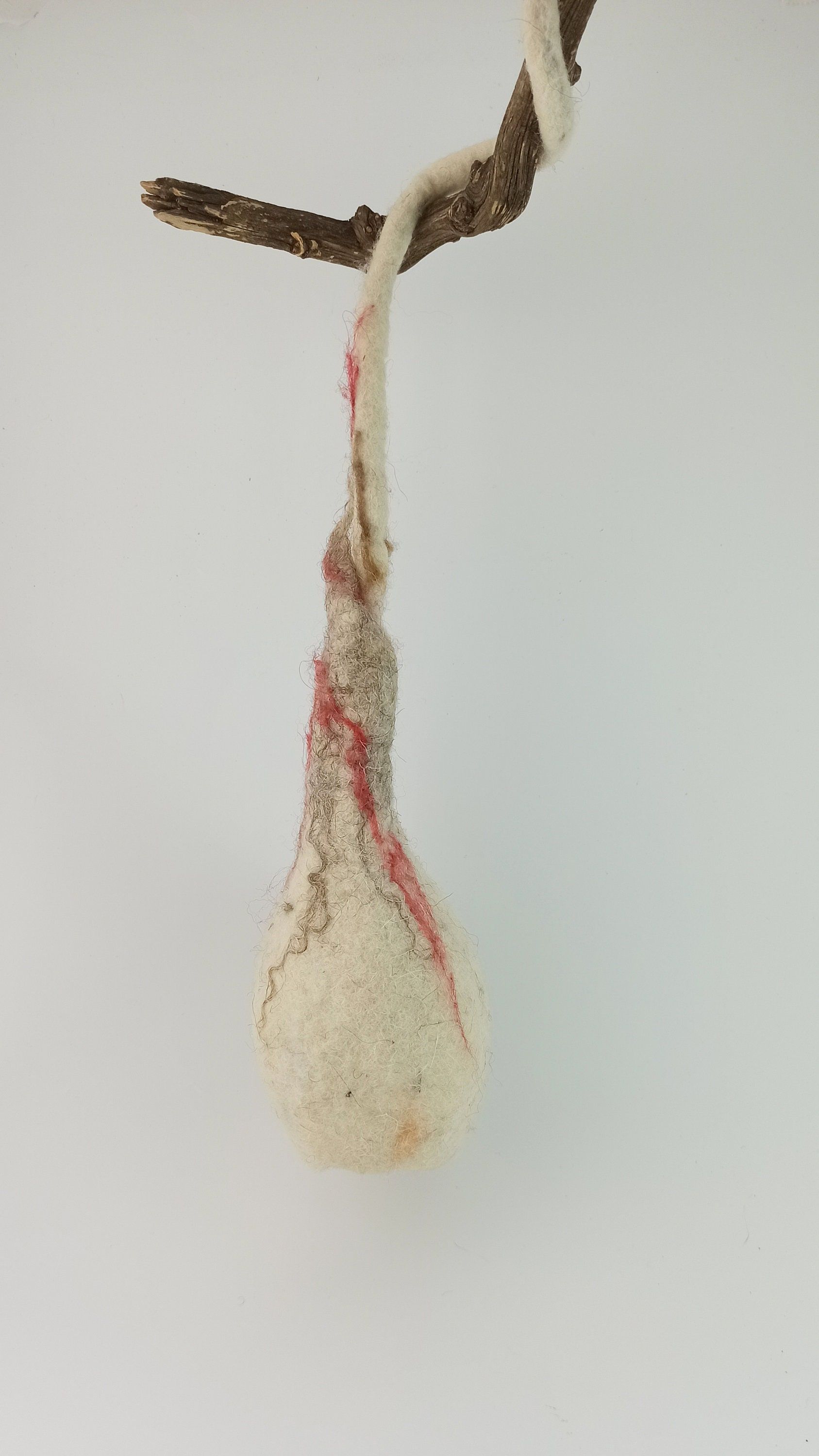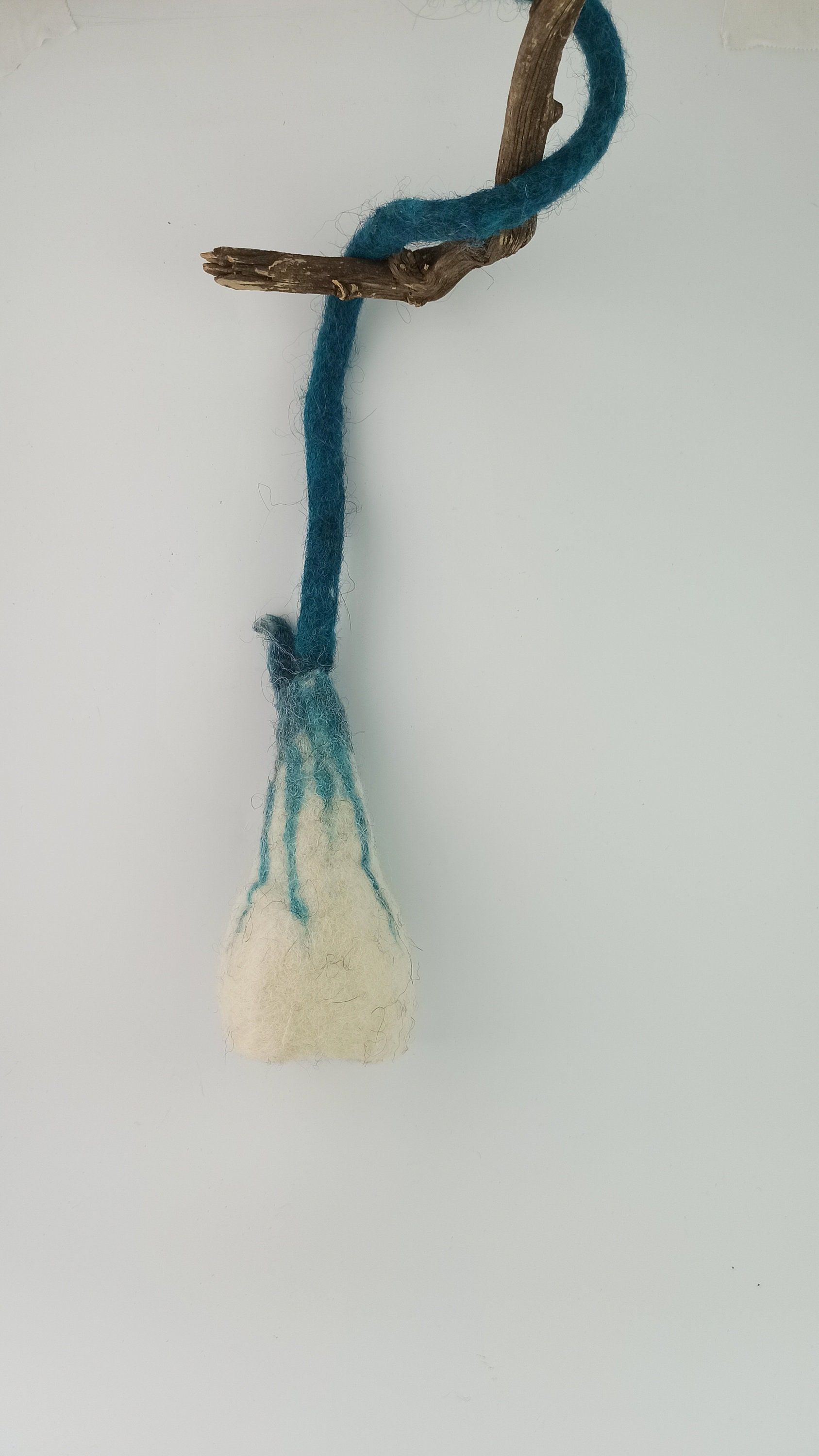 . El cable está forrado con lana verde afieltrada.