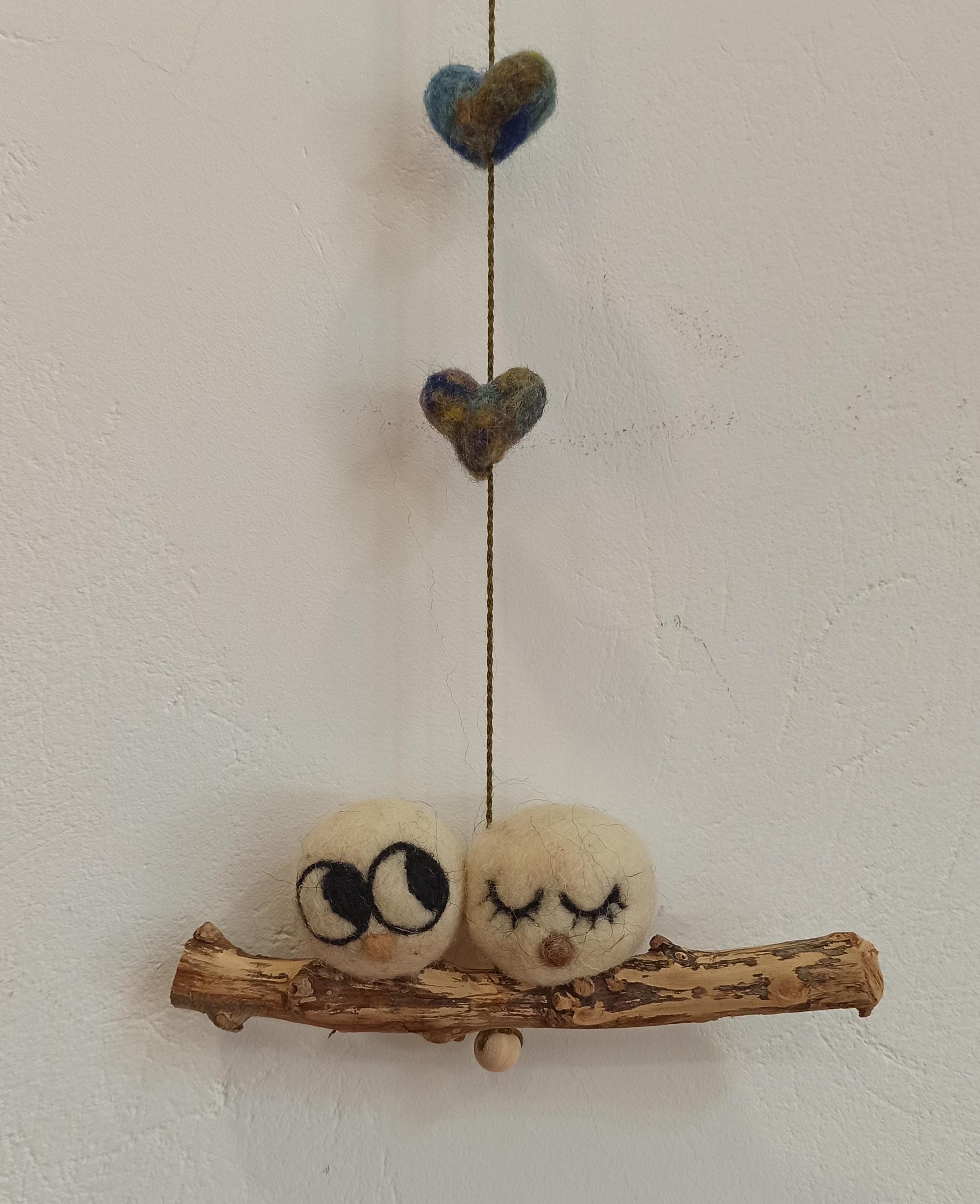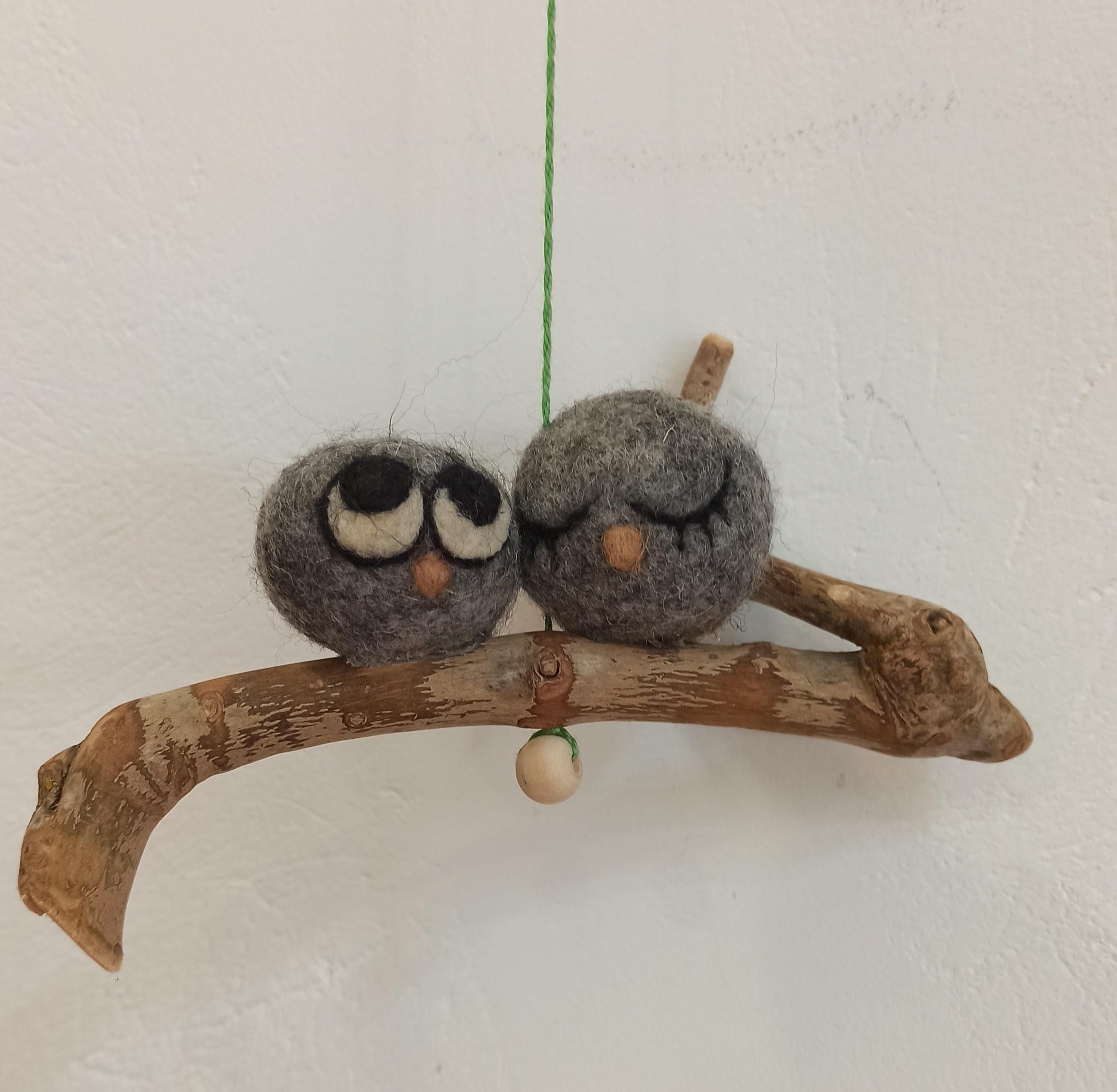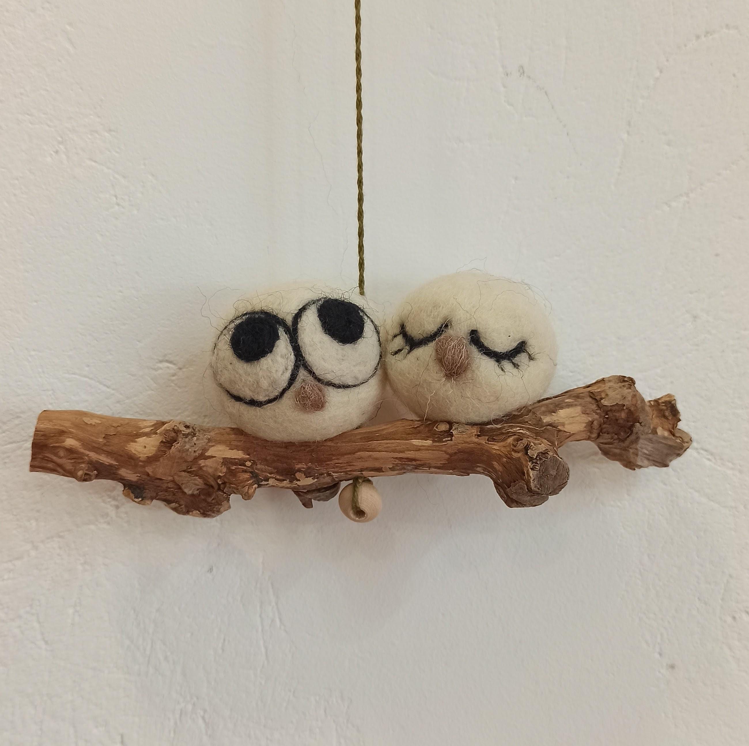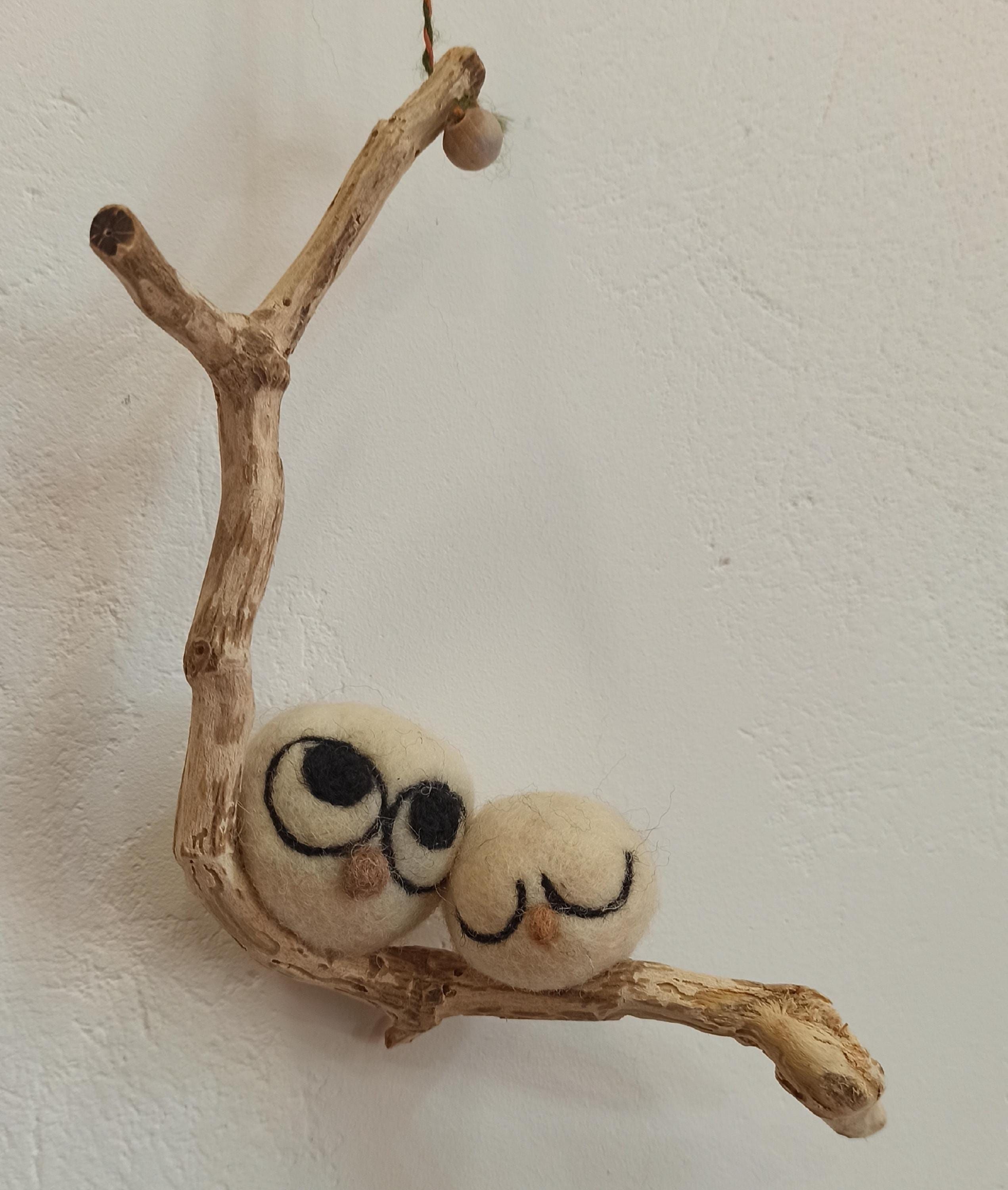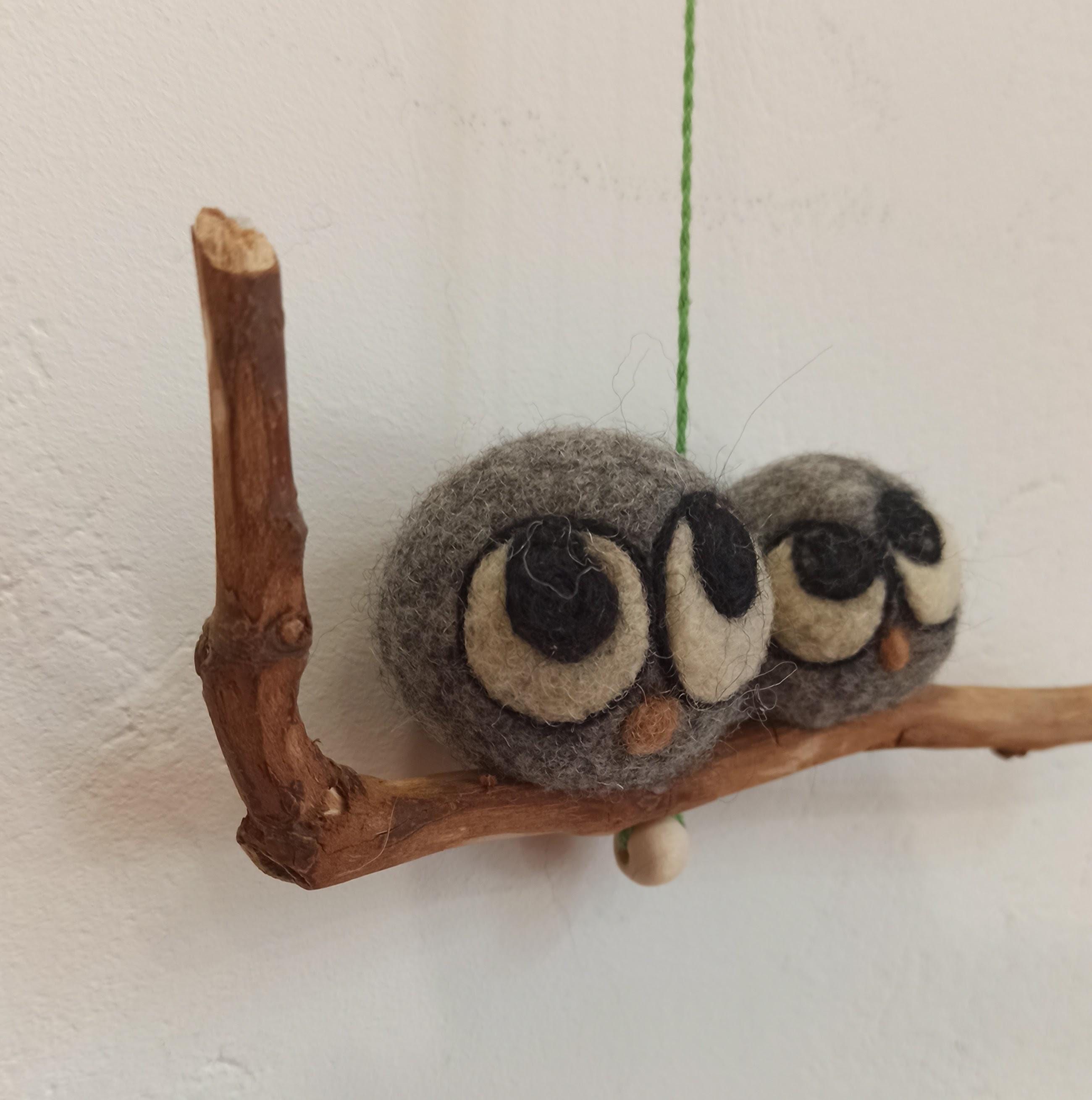 Pareja de búhos de la suerte Adorno de fieltro Decoración con lana hecho a mano