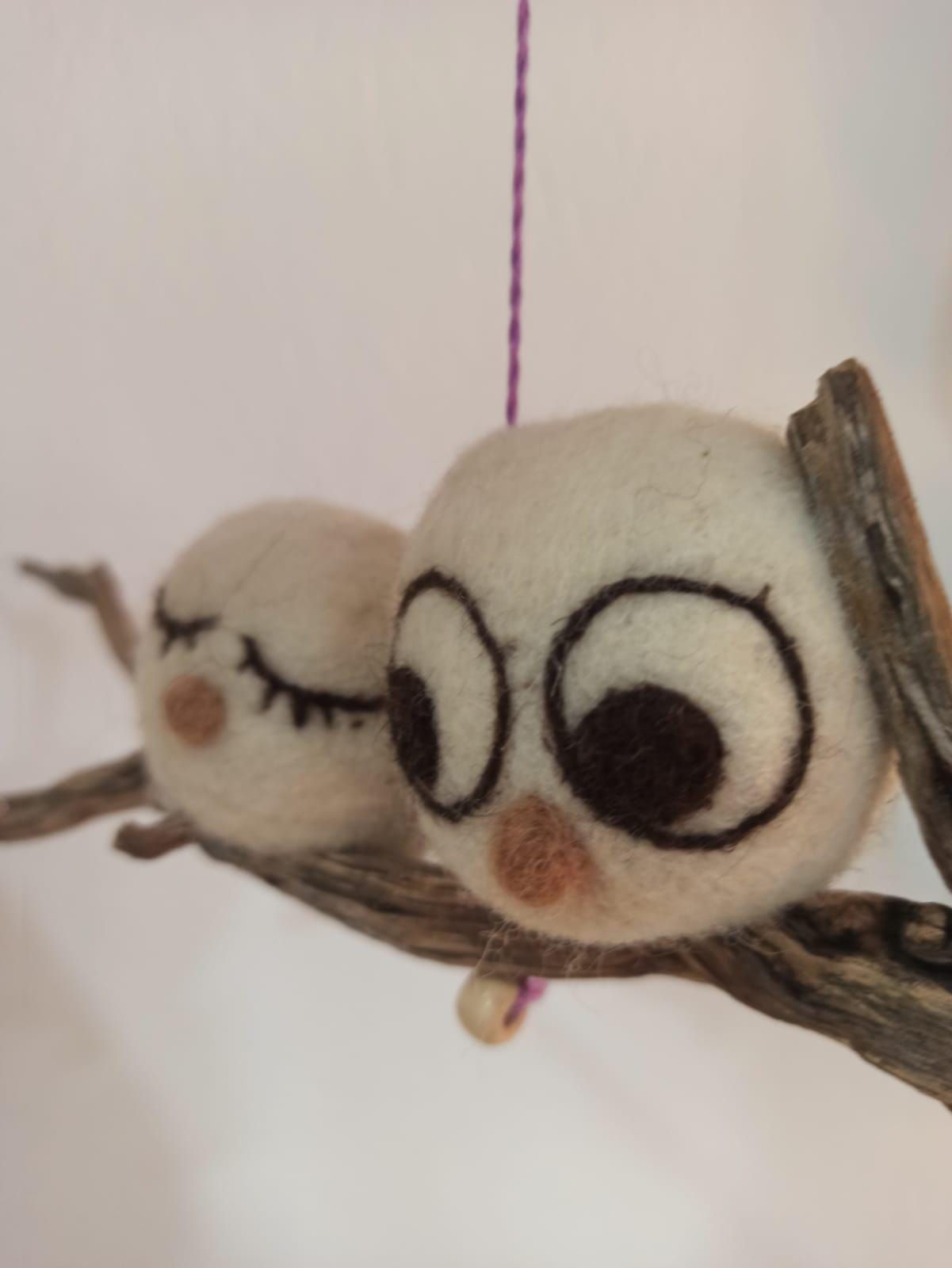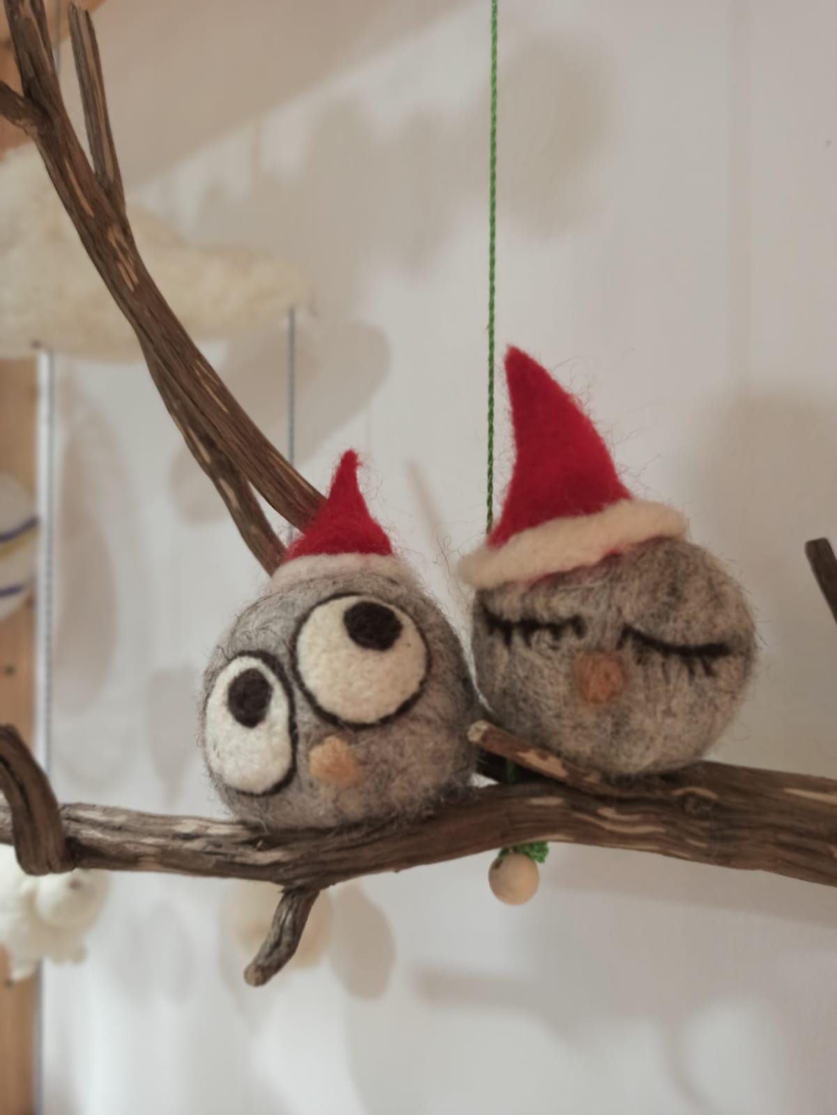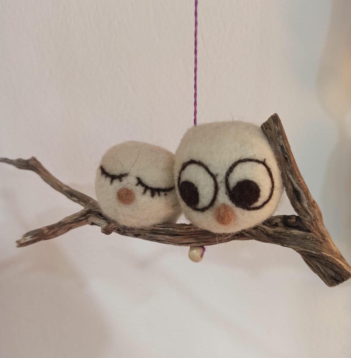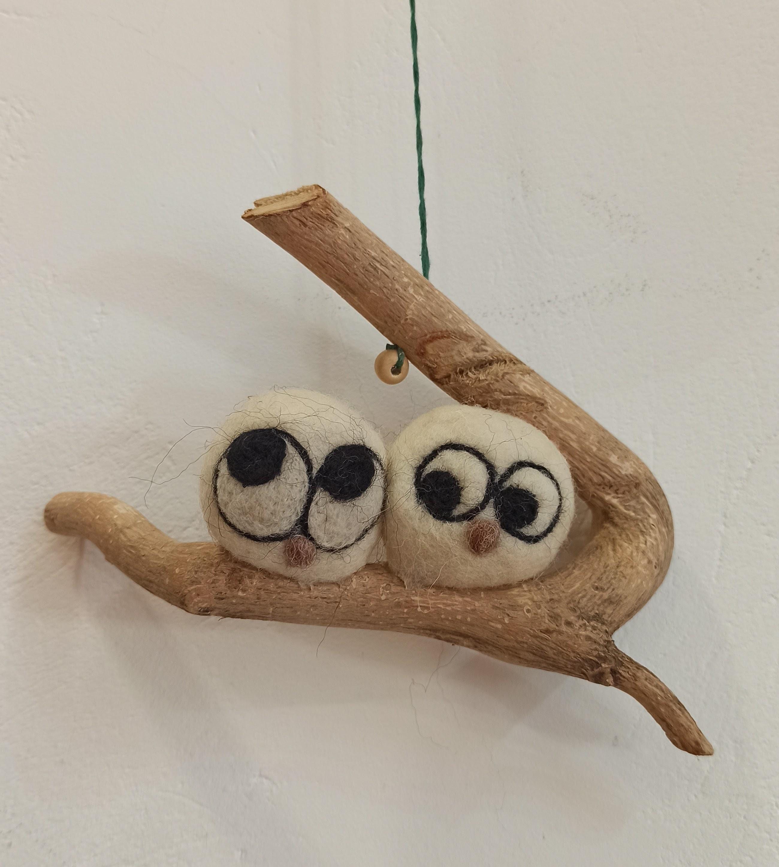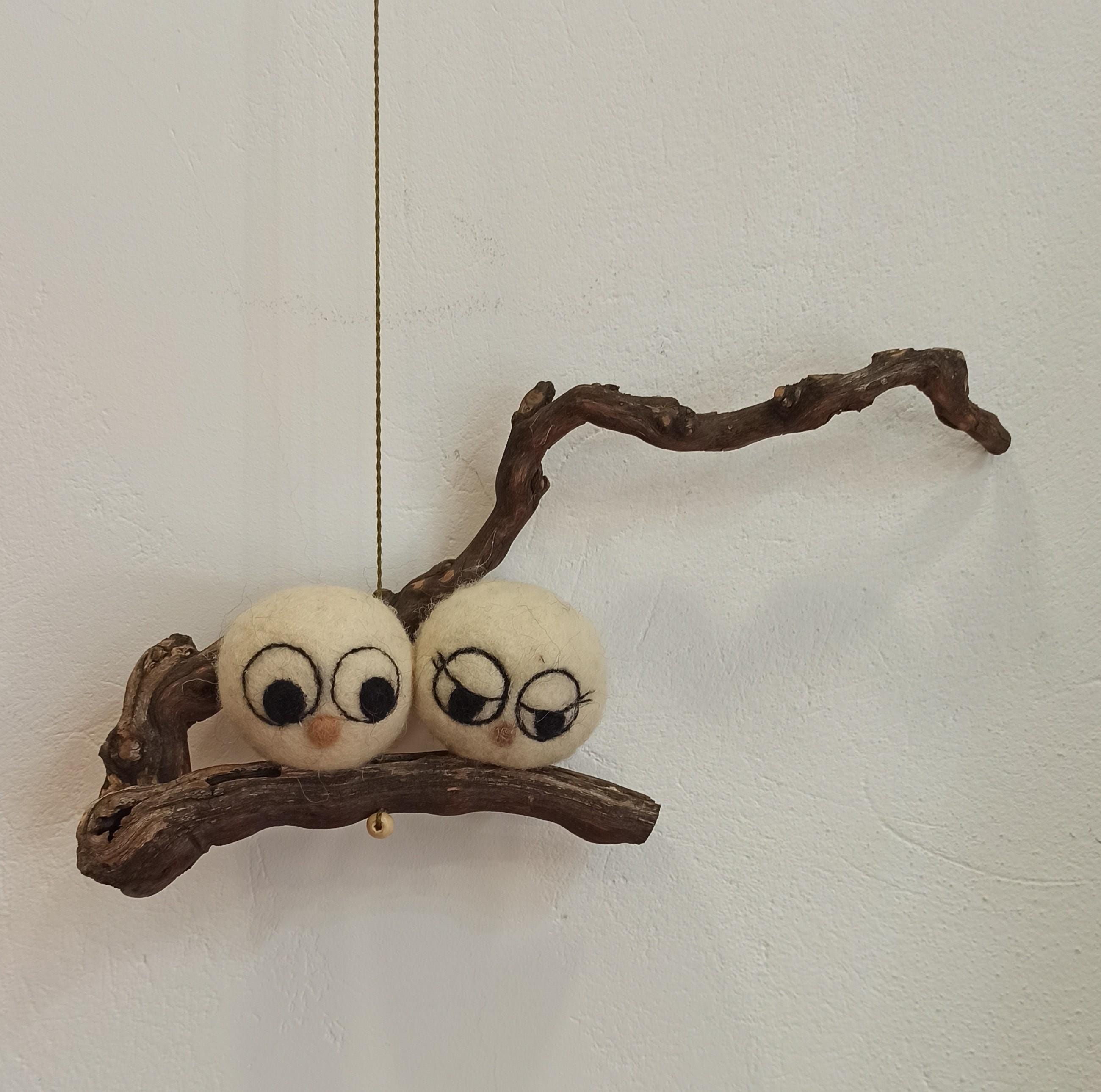 Pareja de búhos de la suerte Adorno de fieltro Decoración con lana hecho a mano