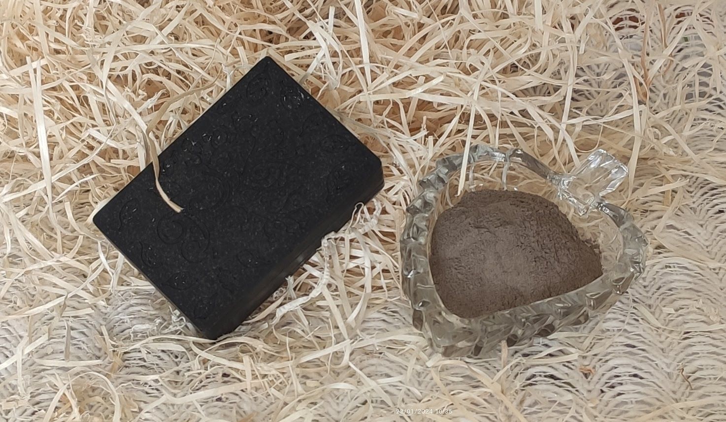 | Matériels | INGRÉDIENTS : Base de savon à la glycérine opaque (Ingrédients : Aqua (Eau), Glycérine, Propylène Glycol, Sodium Laureth Sulfate, Sodium Stearate, Sorbitol, Sodium Laurate, Sodium Chloride, Sodium Thiosulfate, Etidronic Acid, CI 77891) et/ou base de savon à la glycérine translucide (Ingrédients : Glycérine, Aqua, Sorbitol, Stearic (acide dipropylène glycol, sulfate de coco de sodium, acide laurique, thiosulfate de sodium, glucoside de coco, chlorure de sodium, acide étidronique), argile noire, charbon actif, huile de jojoba et huile essentielle d'arbre à thé. |