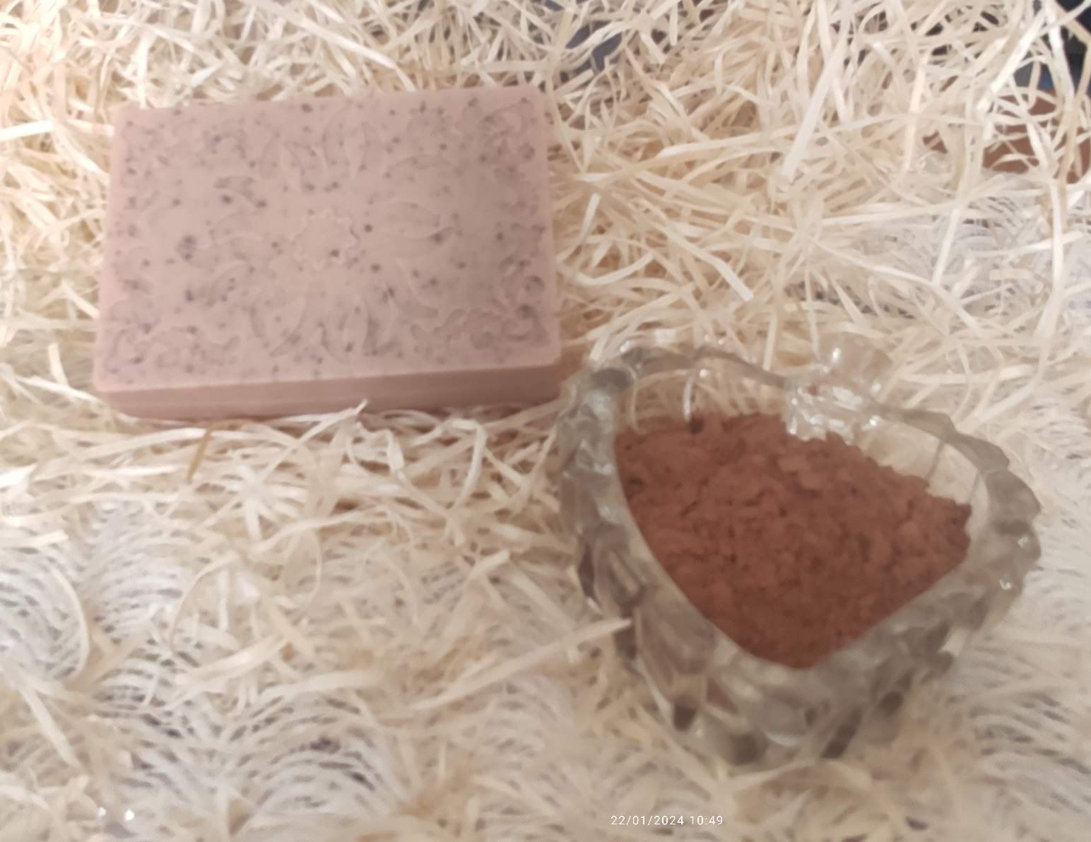 | Matériels | INGRÉDIENTS : Base de savon à la glycérine opaque (Ingrédients : Aqua (Eau), Glycérine, Propylène Glycol, Sodium Laureth Sulfate, Sodium Stearate, Sorbitol, Sodium Laurate, Sodium Chloride, Sodium Thiosulfate, Acide Etidronic, CI 77891) et/ou base de savon à la glycérine translucide (Ingrédients : Glycérine, Aqua, Sorbitol, Acide Stéarique, Dipropylène Glycol, Sodium Coco Sulfate, Acide Laurique, Sodium Thiosulfate, Coco Glucoside, Chlorure de Sodium, Acide Etidronic), argile rouge, poudre de fleur de lavande, huile d'amande et huile essentielle de lavande. |