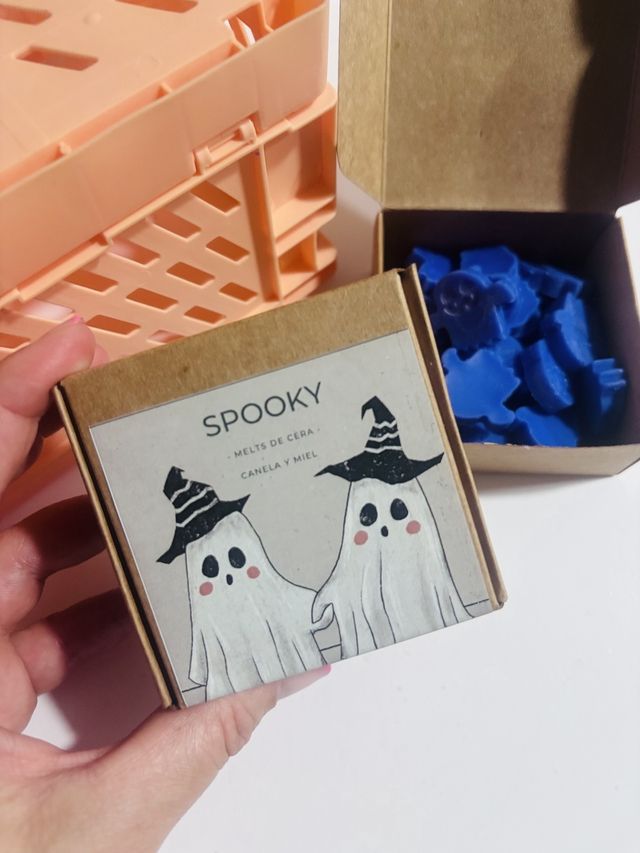 Escalofriantes melts de mini fantasmas con aroma a "dulces de canela y miel" ideal para crear un ambiente acogedor y relajante.