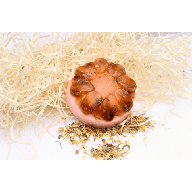 El Jabón de Glicerina con Caléndula es ideal para calmar y suavizar la piel.
