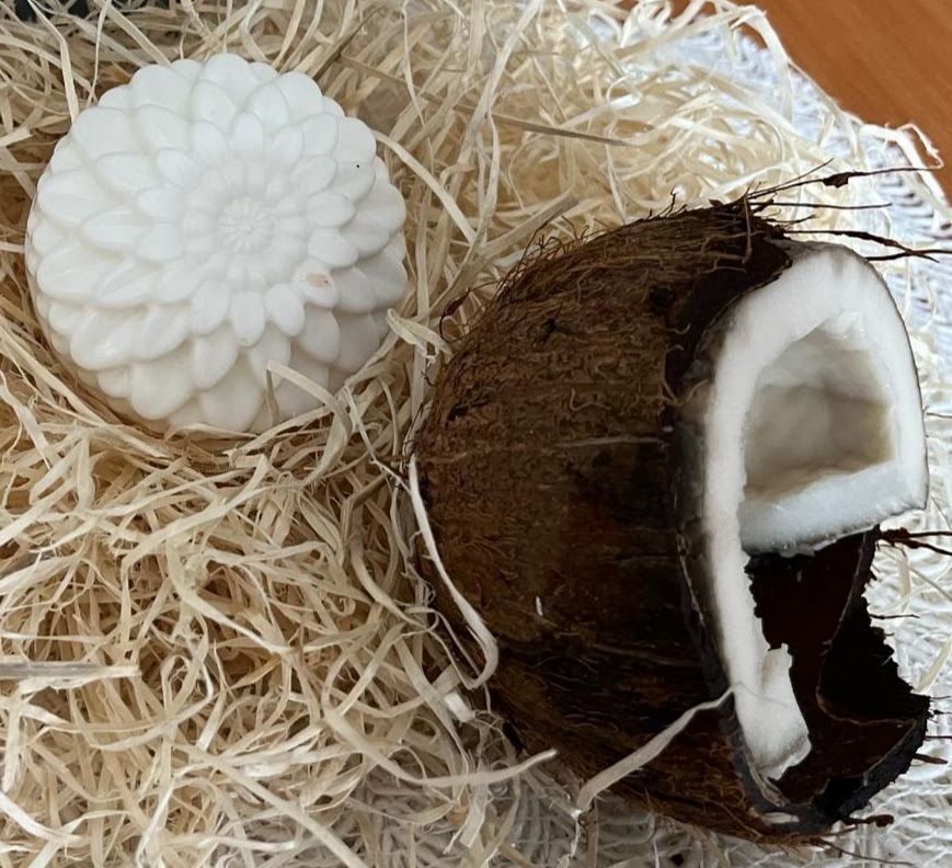 El aroma de coco es el complemento perfecto para este jabón.