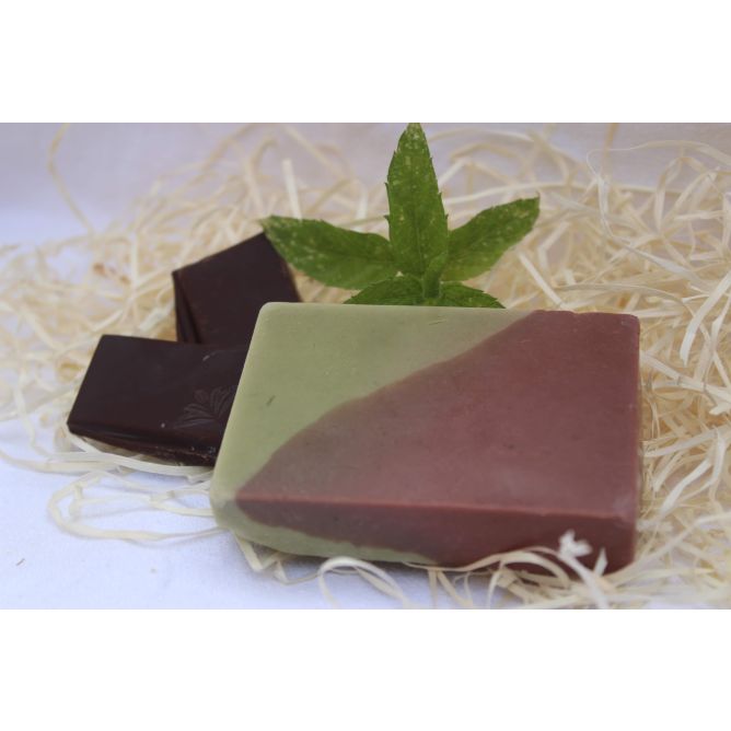 El Jabón de Glicerina con Menta y Cacao refresca e hidrata en profundidad.