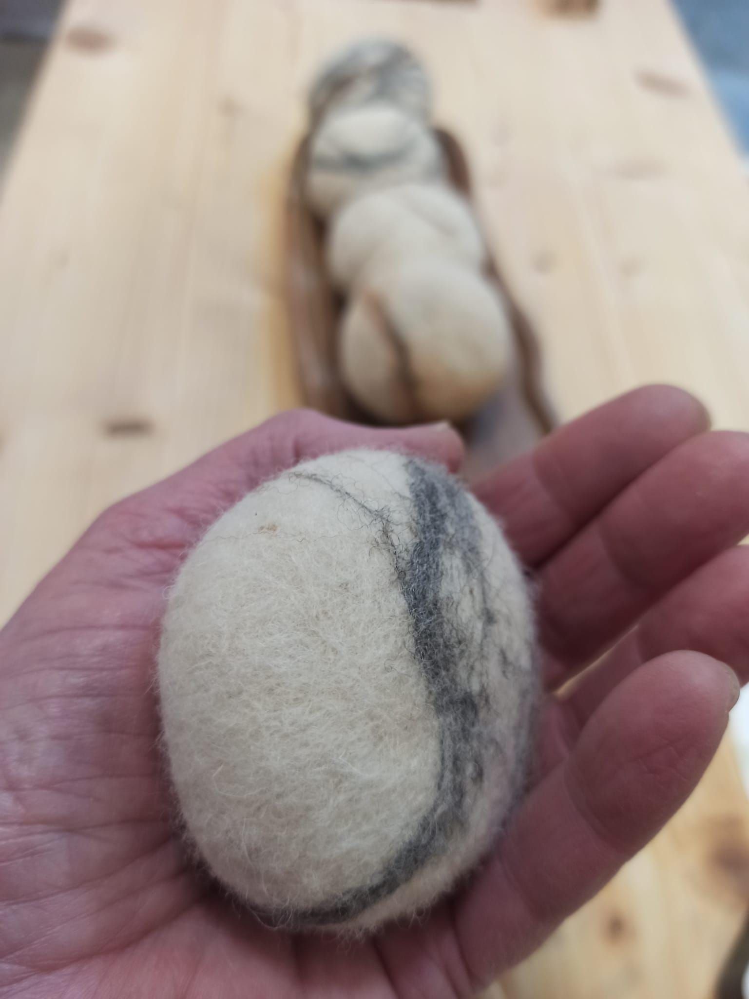 Cada jabón está recubierto en lana virgen merino de España. Esta técnica de afieltrado no es solo decorativa: protegido el jabón, exfolia suavemente la piel y actúa como un guante natural de limpieza.