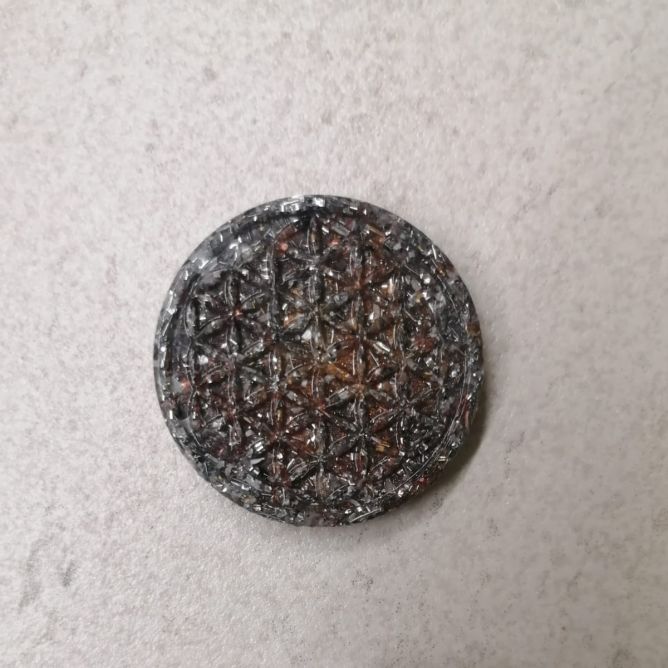 Orgonita con geometria sagrada para llevar siempre encima.