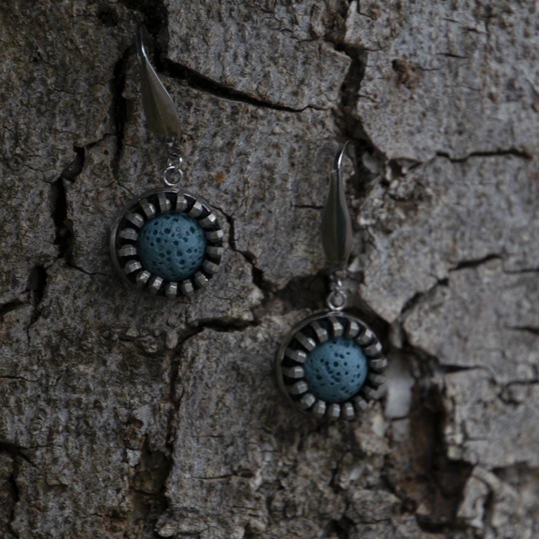Pendientes largos de cremallera con lava volcanica