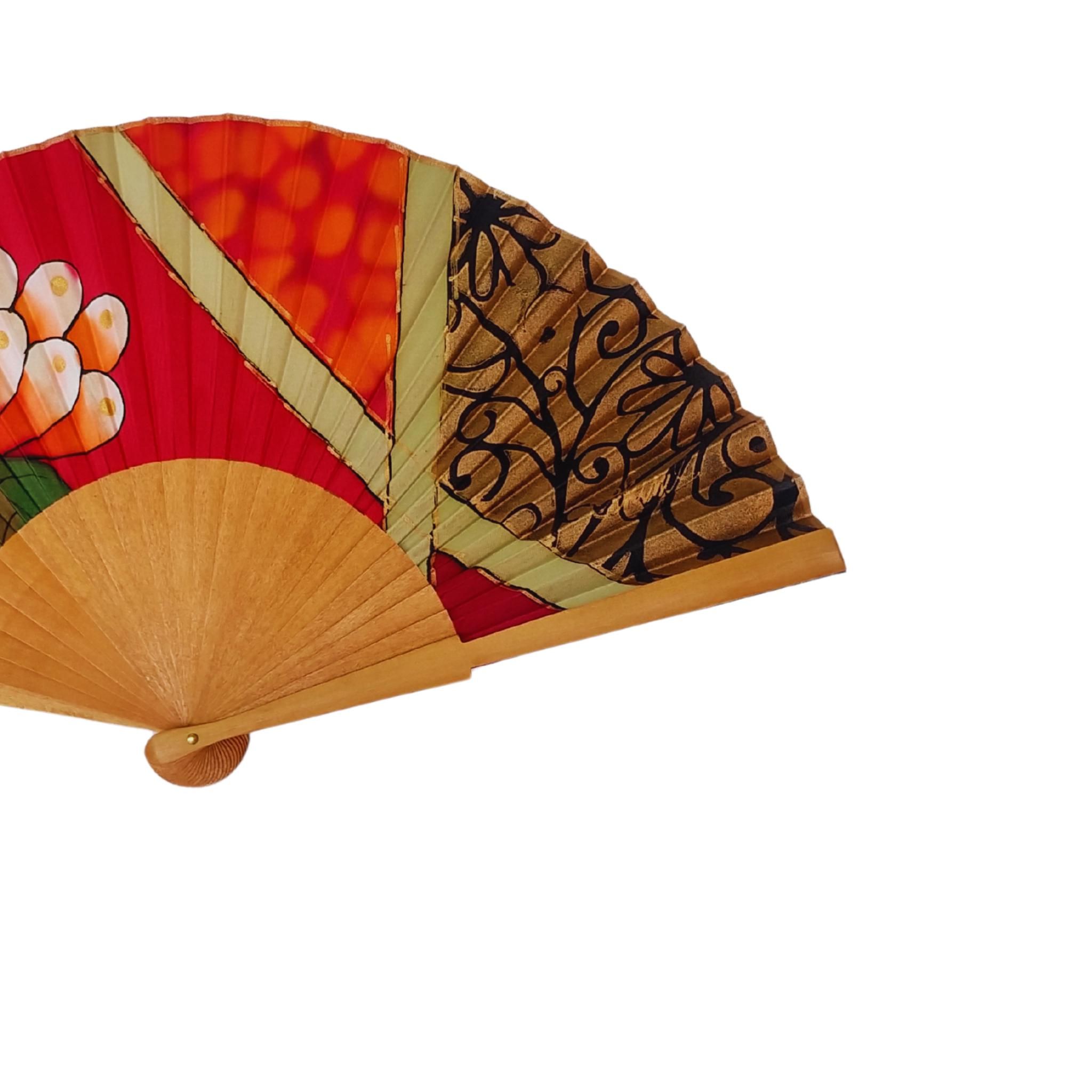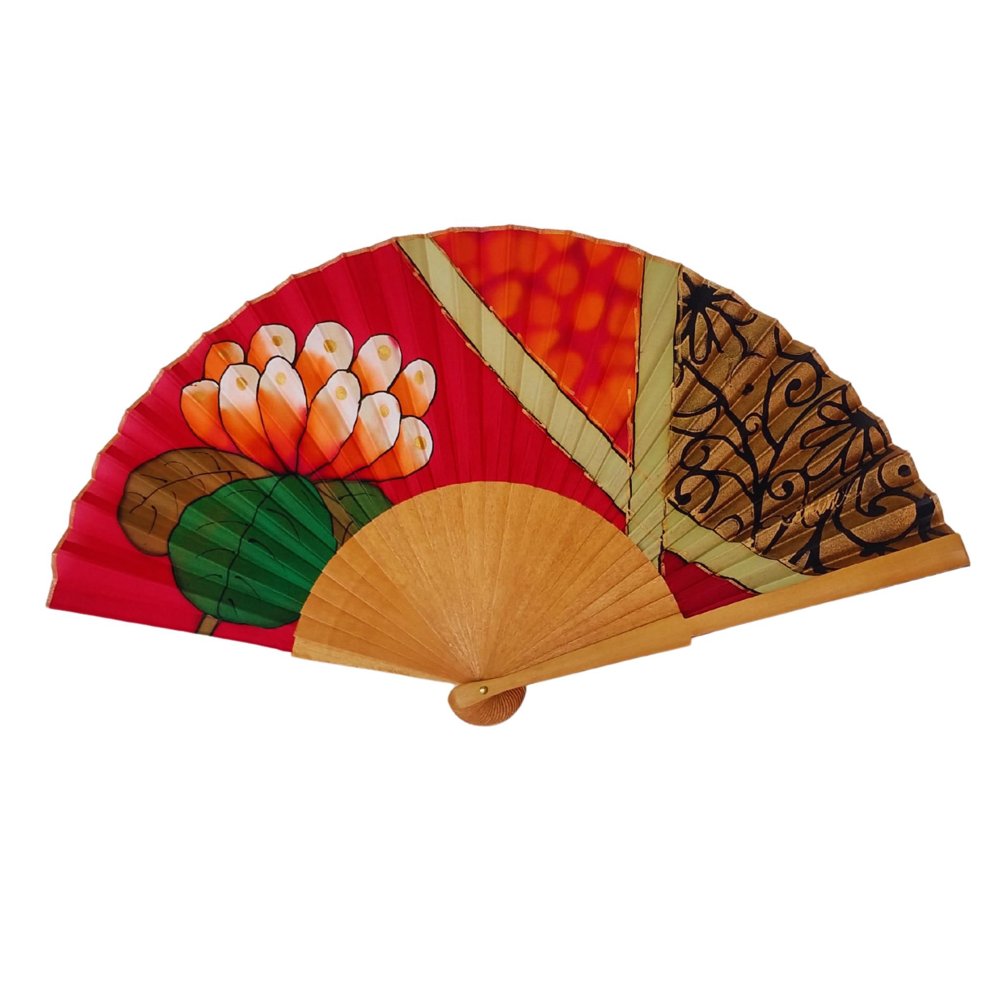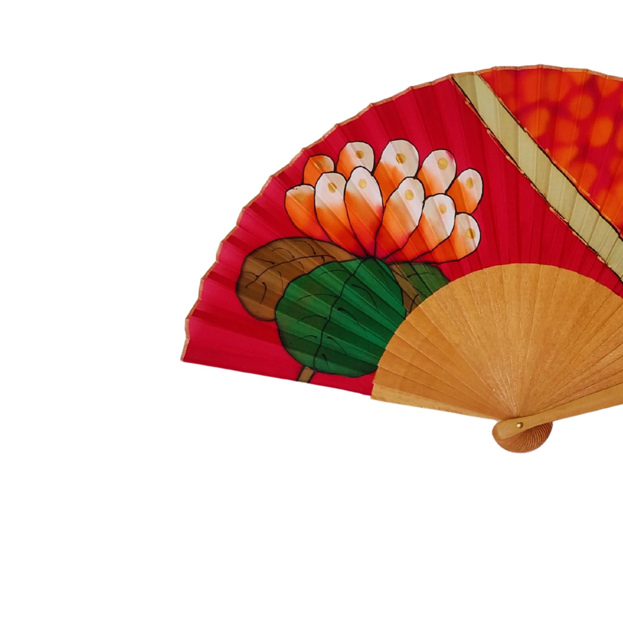 Abanico de seda con loto rojo pintado a mano: elegante abanico plegable floral, regalo artístico para mujer.