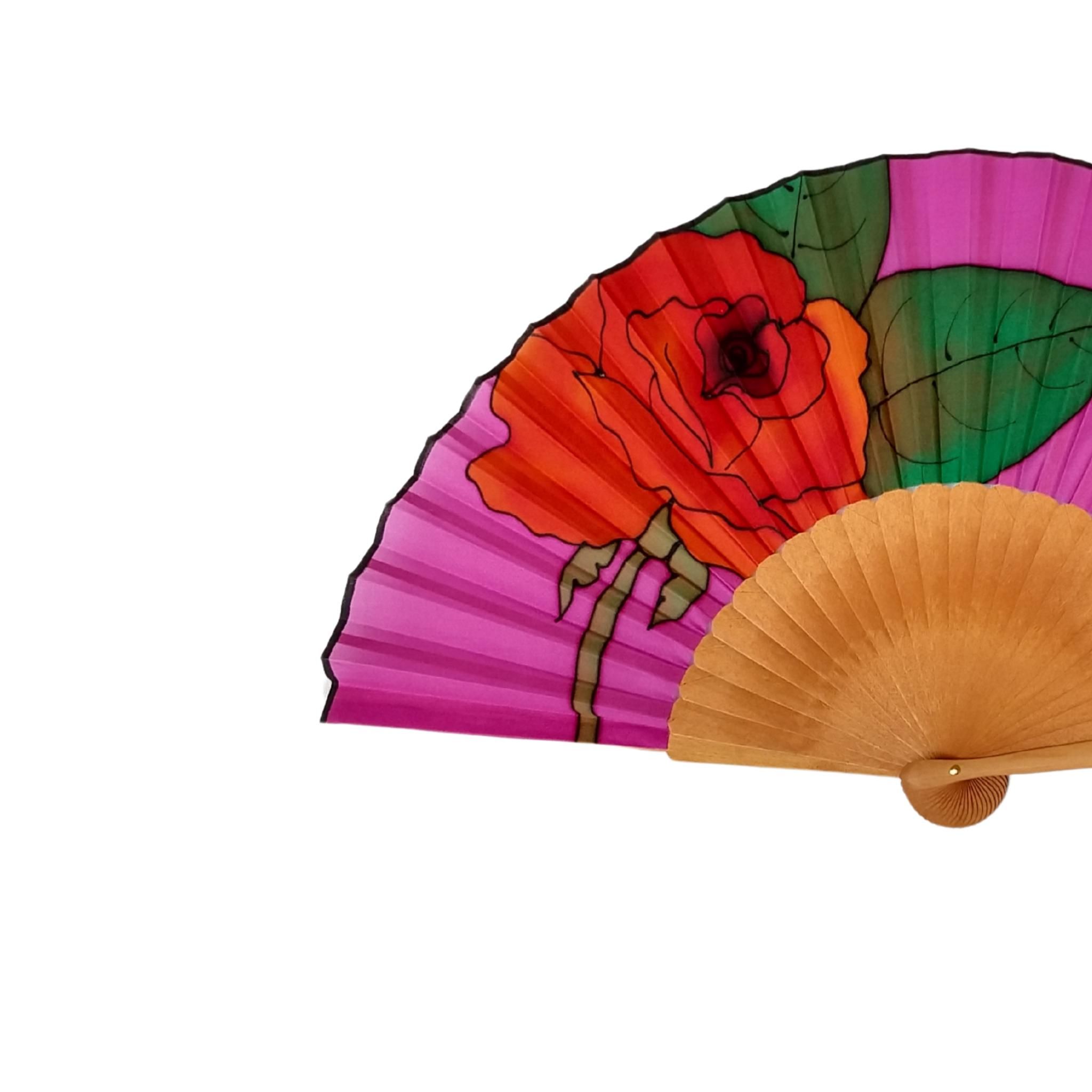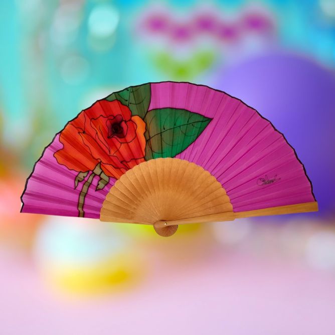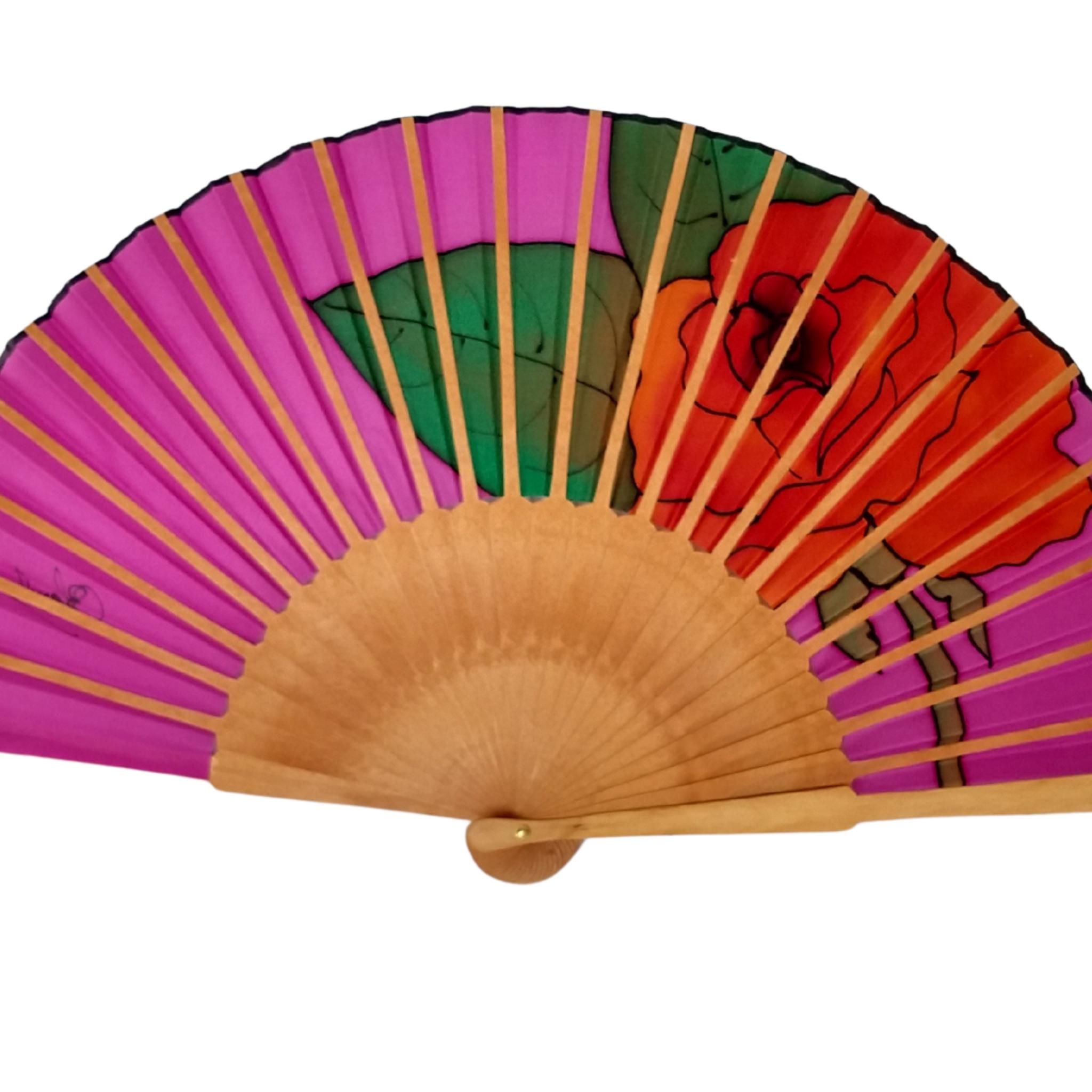 Abanico de seda fucsia pintado a mano: elegante abanico español rosa roja
