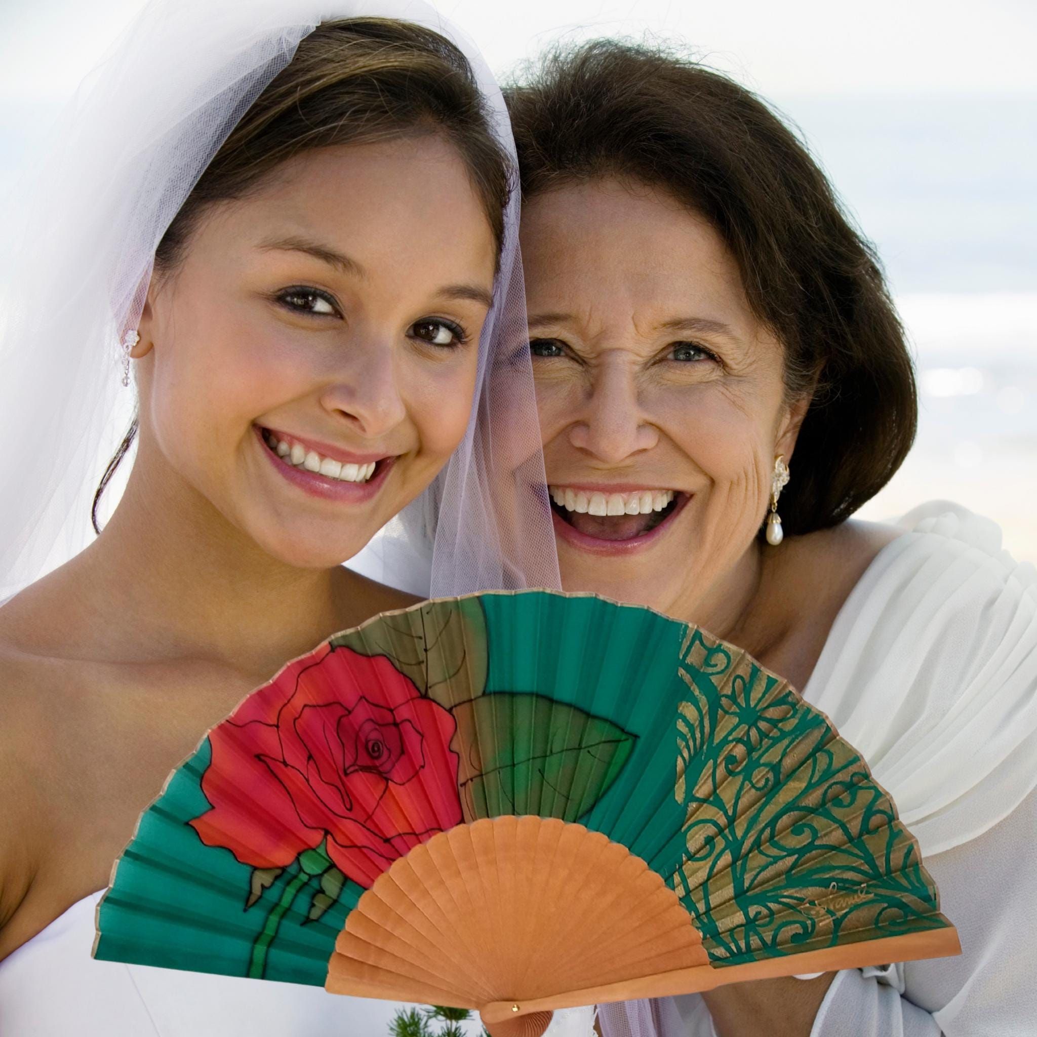 | Materiais | Un toque de lujo: abanico de seda verde esmeralda con filigrana dorada y rosa rojaDiseñado para quienes aprecian los accesorios artesanales únicos |
