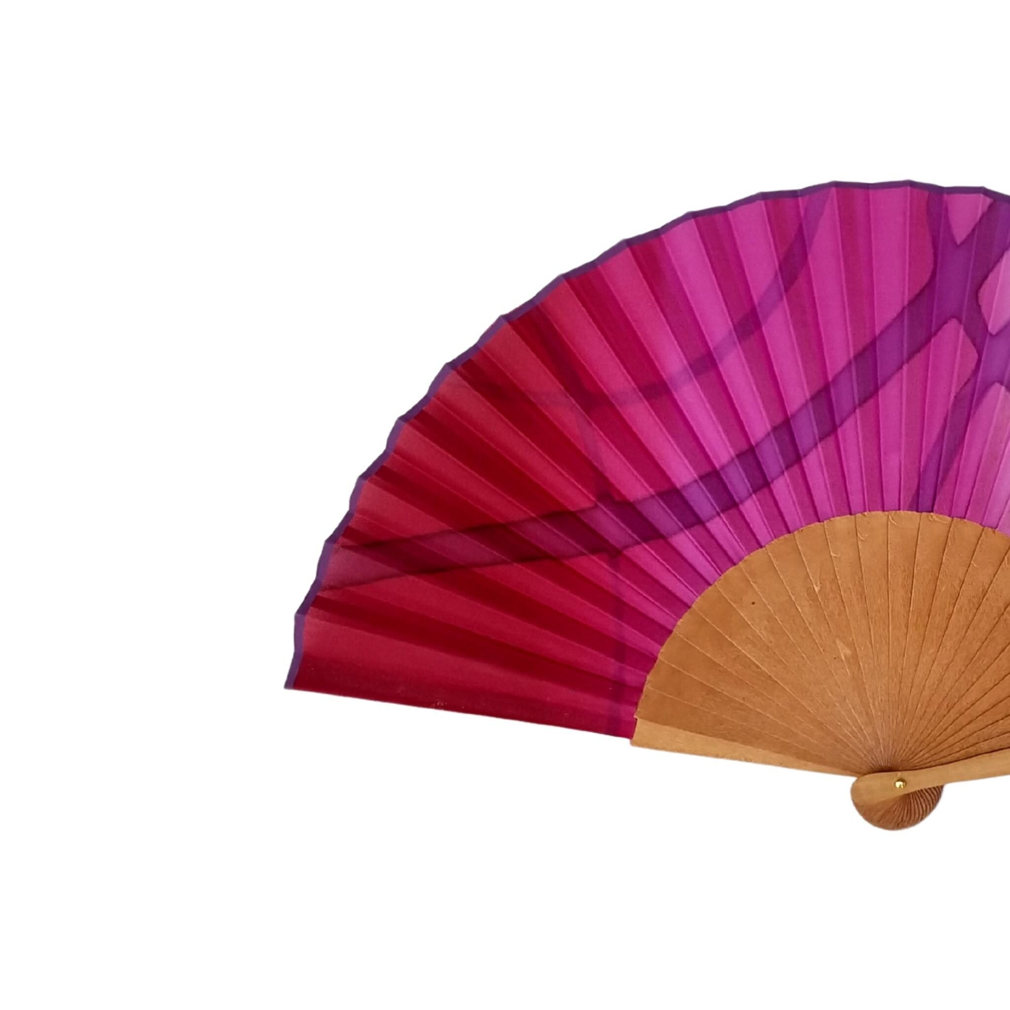 Este abanico de seda pintado a mano es una auténtica obra de arte, diseñado para mujeres que aprecian la elegancia, la exclusividad y la alta artesanía. Con un romántico degradado de tonos rosa suave, fucsia intenso y violeta, combinado con delicados patrones lineales, este abanico añade un toque de sofisticación y encanto a cualquier atuendo.