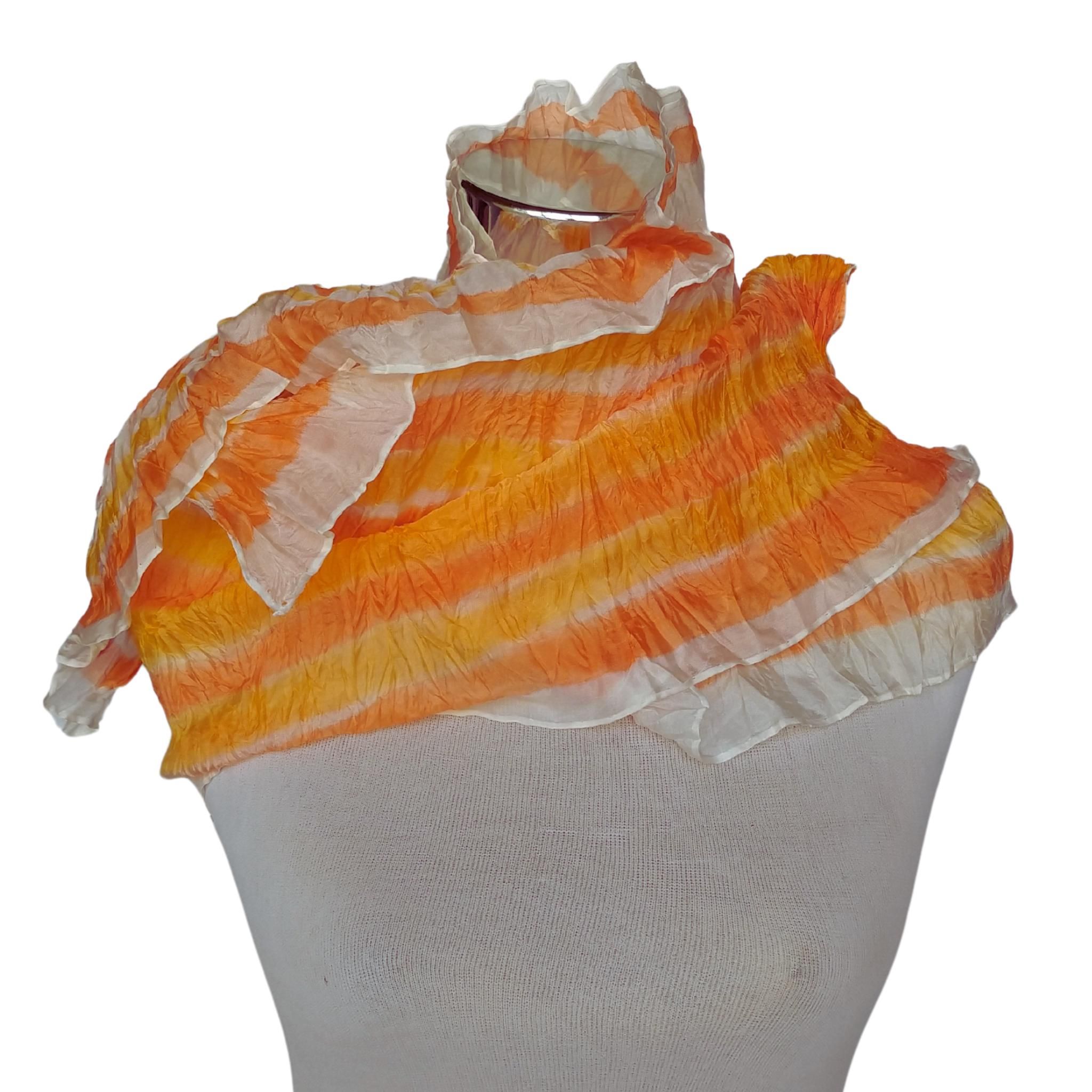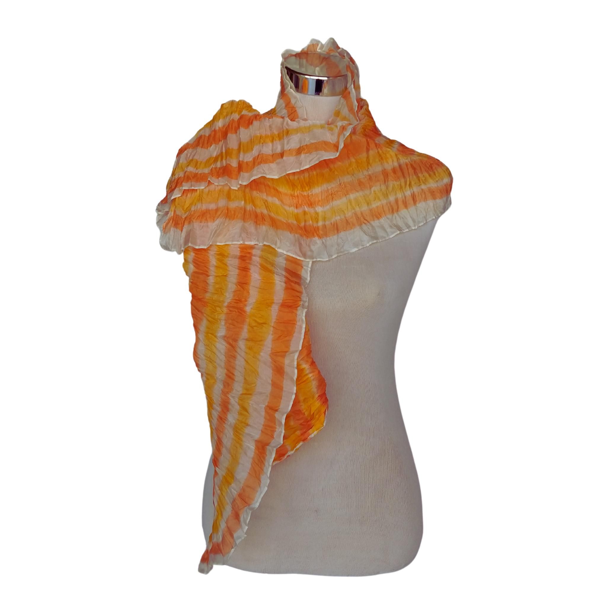 Bufanda de rayas Sunset – Chal de seda arrugada de 180 x 45 cm (71 x 18 pulgadas) – Chal ligero naranja pintado a mano
