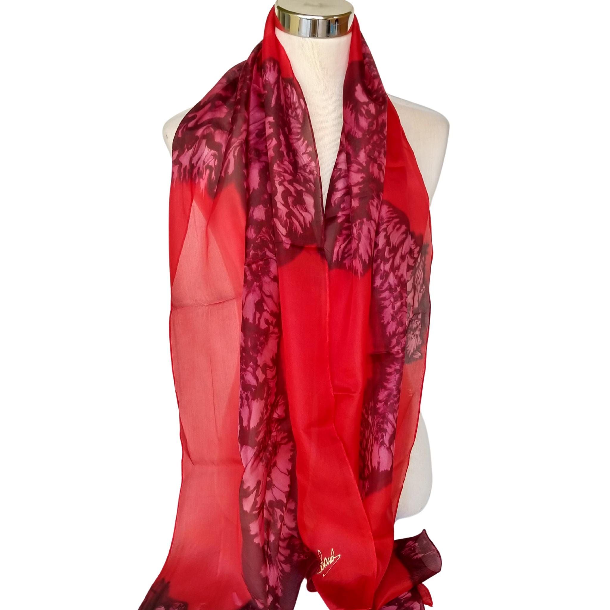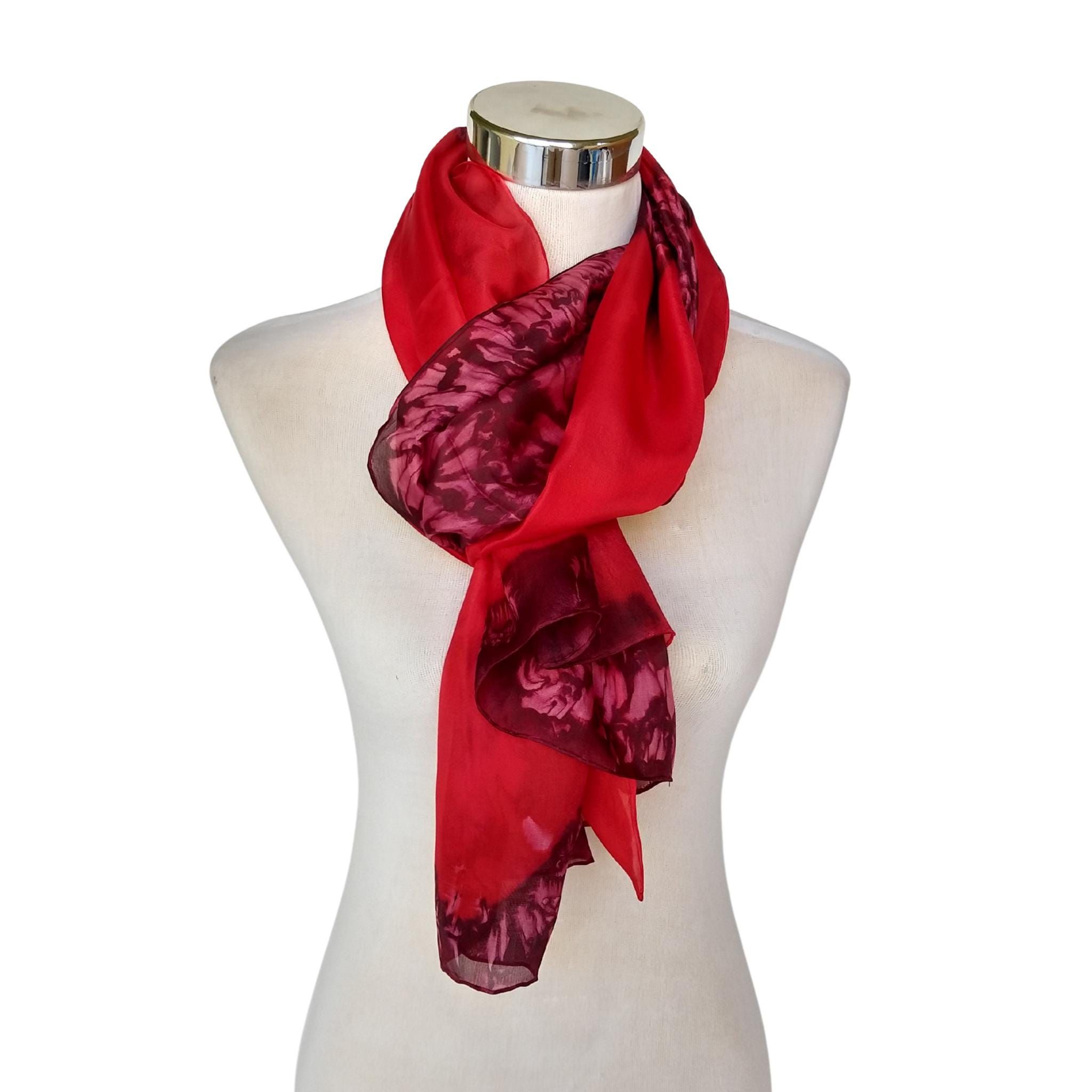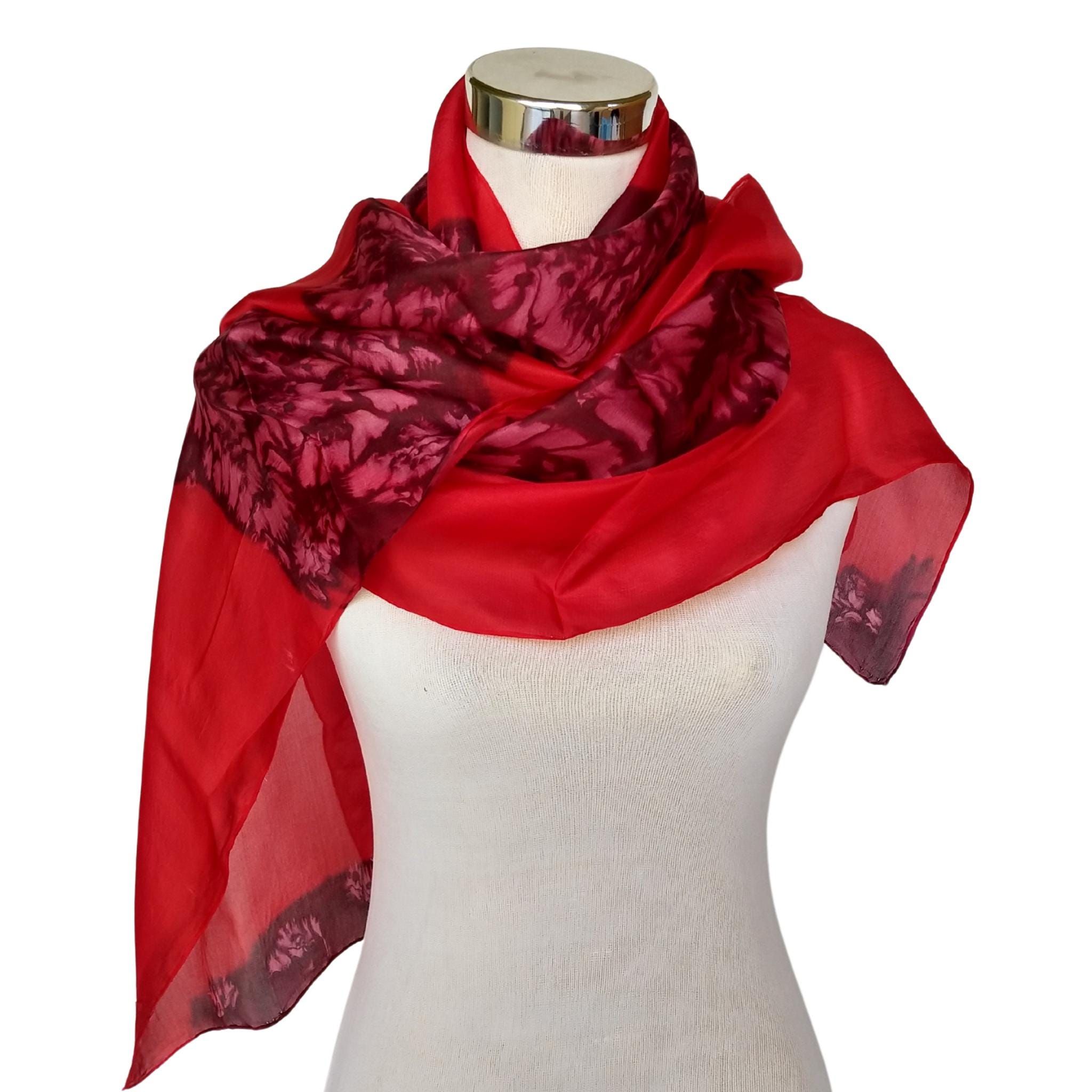 ¿Buscas un accesorio llamativo que llame la atención y sea una sensación increíble? Este pañuelo de seda rojo intenso es la combinación perfecta de dramatismo y sofisticación. Pintado a mano sobre seda pongee suave y transpirable, presenta atrevidos estampados florales abstractos en tonos carmesí y magenta: una obra de arte que le da un toque de estilo instantáneo a tu look.