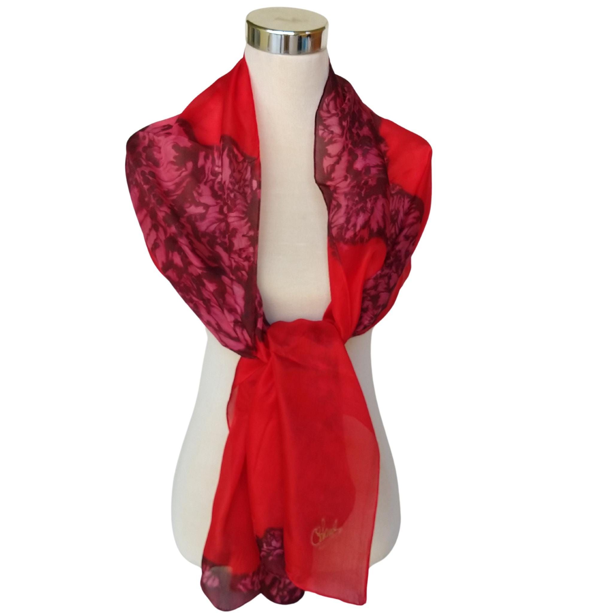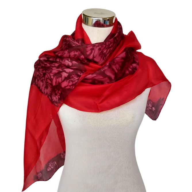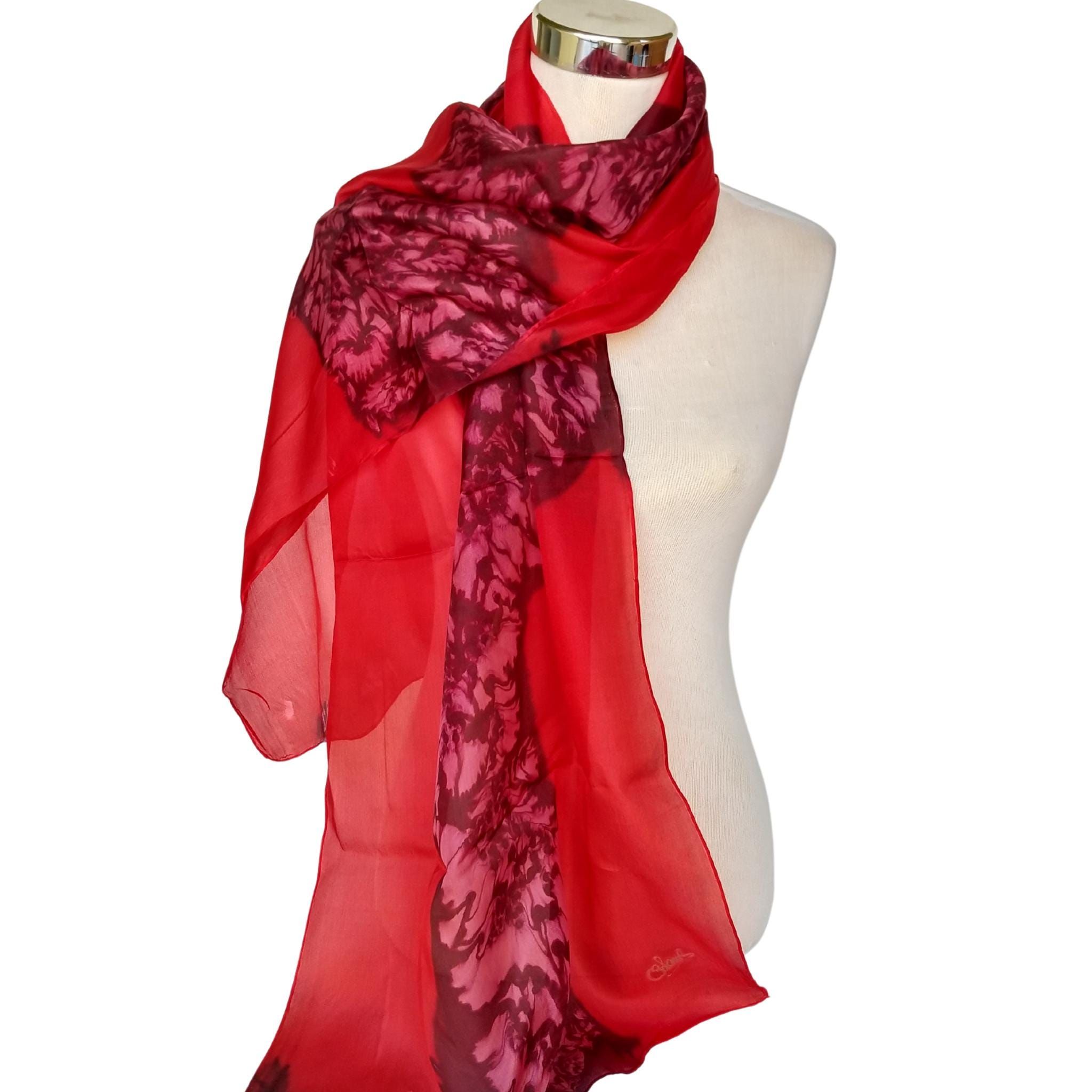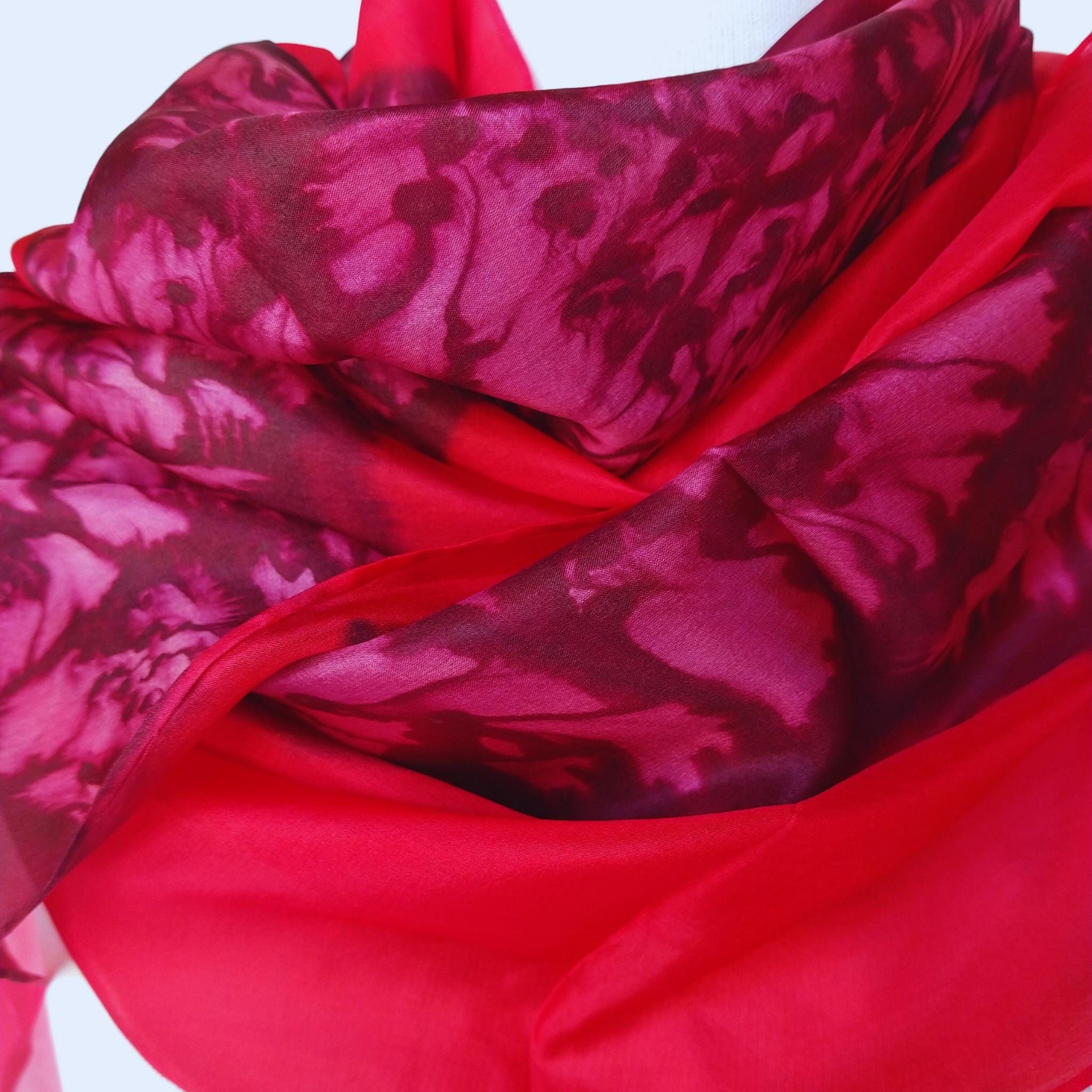 Pañuelo de seda pintado a mano: Pongee floral abstracto rojo intenso