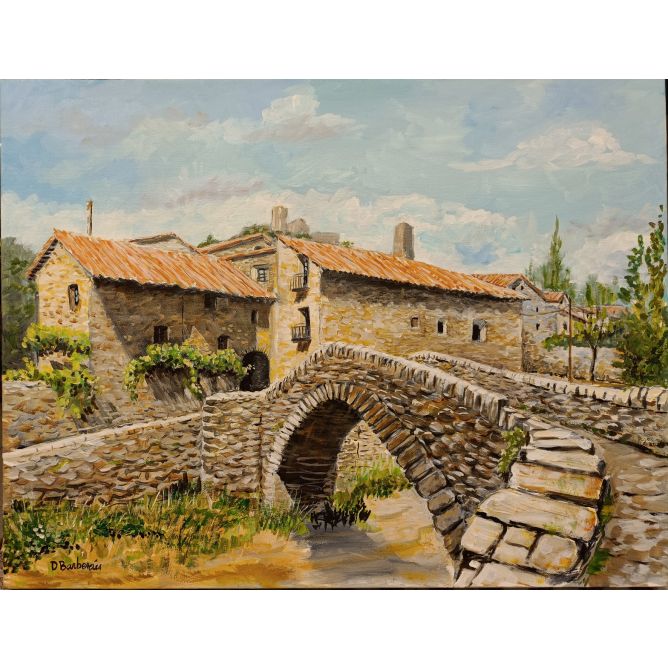 El puente medieval que lleva a la población de Puente de Montañana en Huesca, junto al Congost de Montrebei. Me pareció fascinante este puente tan antiguo, el pueblo tiene un encanto especial, no pude evitar pintarlo no una sino dos veces.