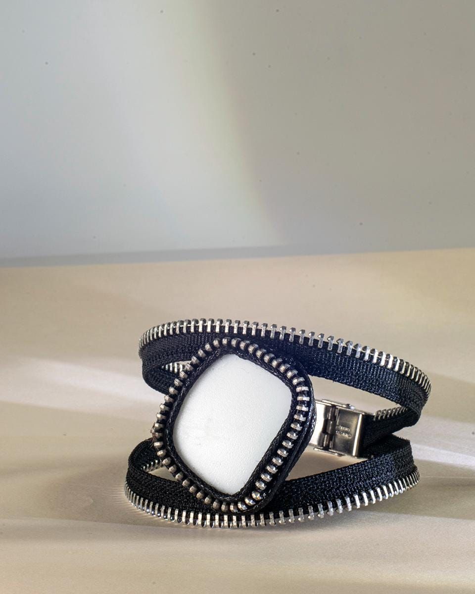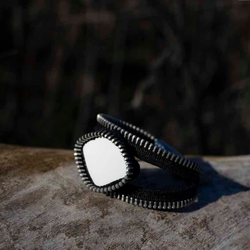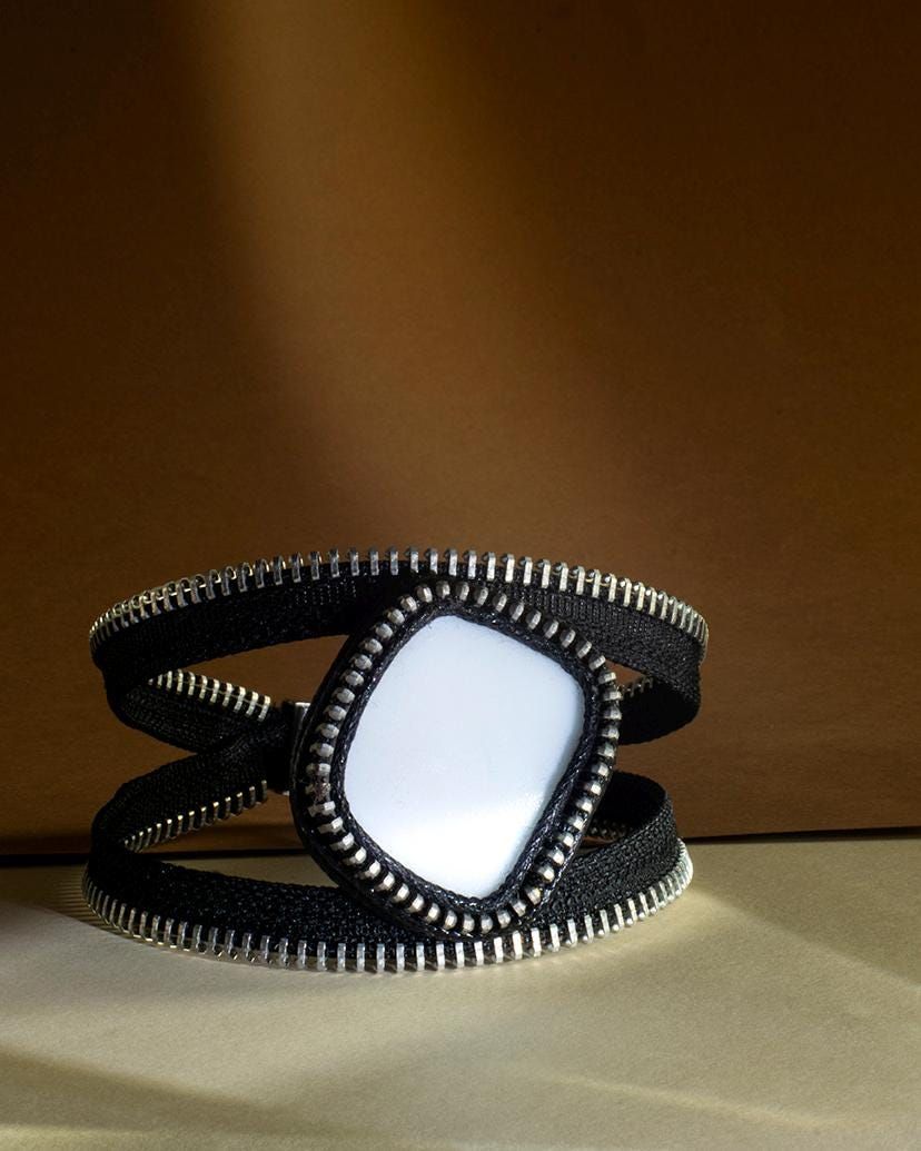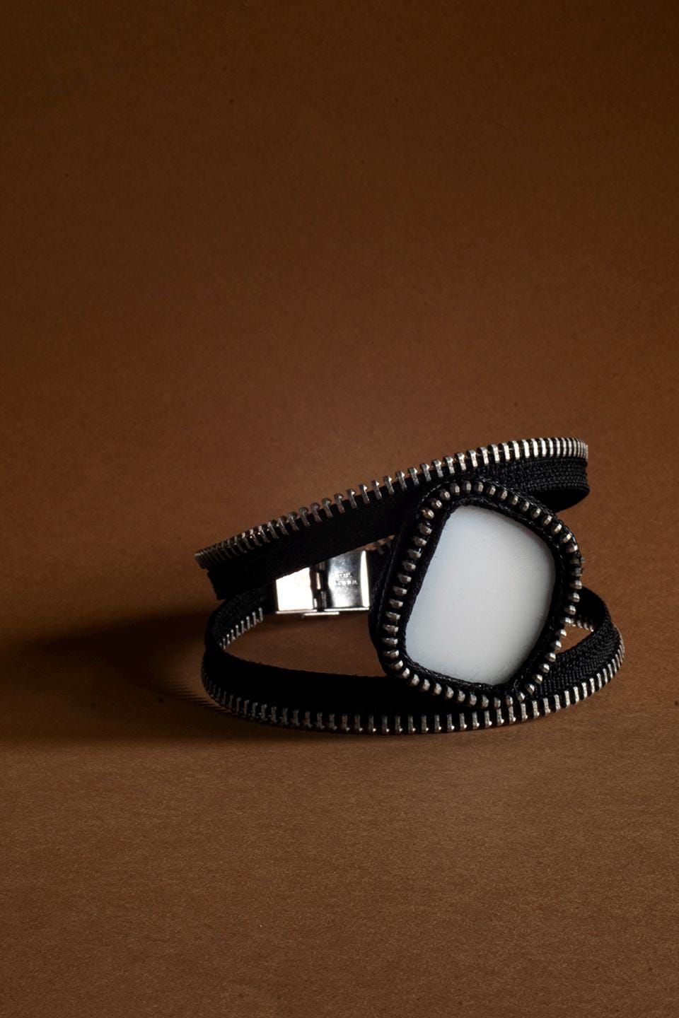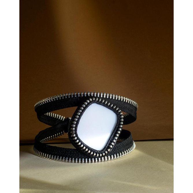 >Materiales: cremalleras,ceramica reciclada y cuero